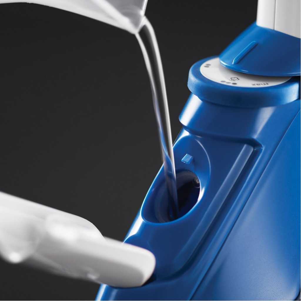 Key Features: Russell Hobbs Steam Iron 2400W Max Power, Portable Clothing Iron, Quick Heat-up with Non-Stick Ceramic Soleplate, Auto-off Function, Continuous & Vertical Steam, 1 Year Warranty Blue 26483GCC. With auto-steam technology, you can iron away with a reliable 30g/min of continuous steam, so you can smooth away the creases without the need for constant button fiddling For more control you can directly tackle more difficult areas with the water spray feature, or deliver a shot of steam when needed at a rate of 90g/min. Eye-catching and efficient, the ceramic infused soleplate in Sapphire will help to raise a smile while you glide through the creases with little effort. No catching or sticking to your fabric. The water tank holds 240ml, and the fill jug we’ve included means that you can leave the iron on the board while you fetch water for your next refill Don’t waste time fighting the wrinkles on larger pieces such as curtains. The vertical steam feature means you can smooth them away in situ.