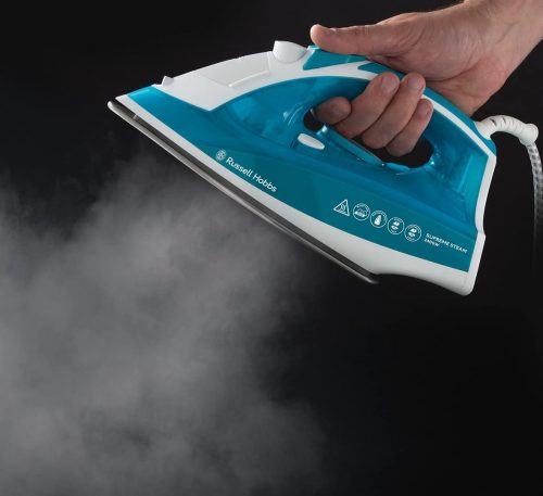 Ironing; whether you love it or hate it, speed up the process with the Supreme Steam Iron from Russell Hobbs. With a combination of features, this iron has been designed to help whiz through large or small ironing piles with ease, helping you get the job done faster. Box Contains 1 x Supreme Steam Traditional Iron – Blue; 1 x Information Booklet Key Features: 42 g continuous steam and 110 g shot of steam Powerful vertical steam Self-cleaning function Easy fill 300 ml tank Soft touch handle and dial