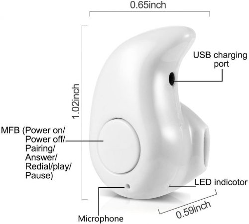 Key Features: NEW GENERATION:Bluetooth V4.1 and 4.0 smart chip, efficient and stable data transmission ,Compact and ultra Light Design Stereo Bluetooth Single Earpiece.Hands free for you to do everything with the earpiece. LONG-LASTING:50 MAh rechargeable polymer battery provide up to 2 hours talking time(music time:2 hours;standby time:120 hours). AWESOME COMPATIBILITY:Compatible with Any Bluetooth-Enabled Devices. BUILT-IN MICROPHONE: Invisible, smallest and one-button design.Digital noise-cancelling provides high quality clear and natural voice.You DO NOT even feel its existence ,but it does. COMPATIBILITY – Can be used with all Bluetooth enabled mobile phones