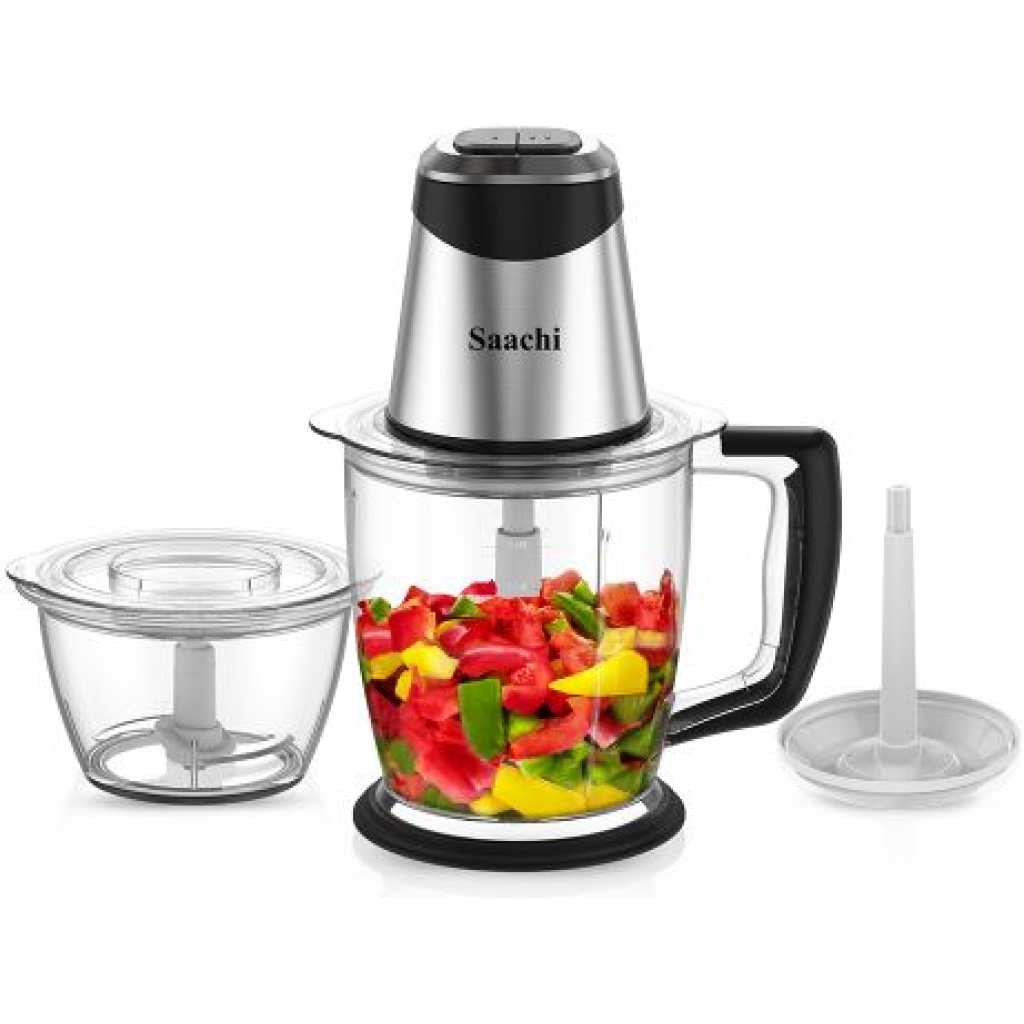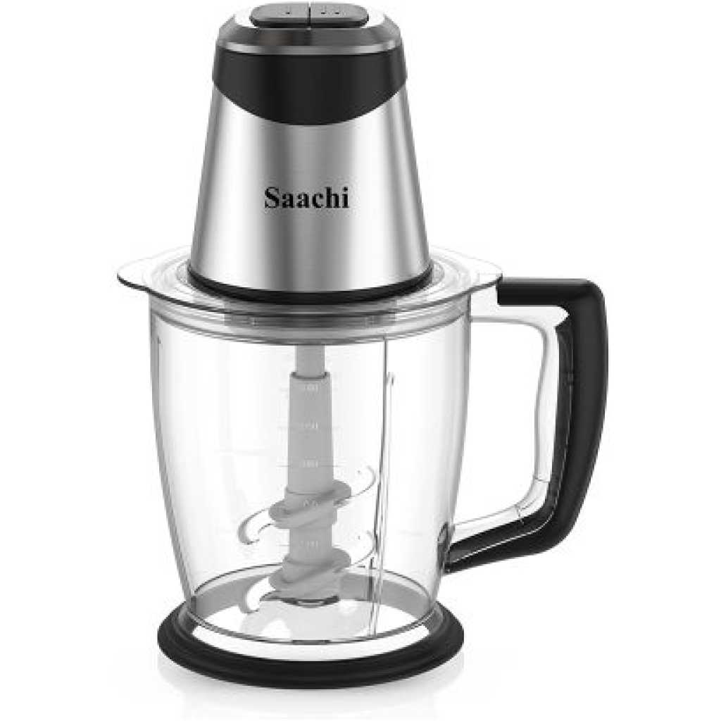 Saachi 1.5L Electric Chopper Egg Beater Bowl Meat Mincer Grinder -Clear Saachi Electric Chopper / Egg Beater With 1.5L Chopper Bowl NL-CH-565EBDescription 2-speed operation1.5-liter chopper bowl with handle1-liter mini chopping bowlNon-slip rubber feet stainless steel triple bladesOverheat protection.Non-slip rubber feet power: 300WVoltage: AC 220-240VFrequency: 50/60Hz This electric cooking machine can pound yams, chop vegetables, mince meat, blend fruits, and process a whole lot of food in minutes. Environmentally friendly wheat straw material opens a healthy living multifunctional food material processorFour-leaf stainless steel blade is sharp and durable/does not just does not contain any heavy metals in the soil will degrade itself environmentally healthy Whole body wash cleaning, simpler, split-type accessories, clean no dead ends. Features – 2-speed operation – 1.5 litre chopper bowl with handle – 1 litre mini chopping bowl – Stainless steel triple blades – Overheat protection – Non-slip rubber feet Key Features: Saachi 1.5L Electric Chopper Egg Beater Bowl Meat Mincer Grinder -Clear Environmentally clean and easy to use. Touch switch. Four-leaf stainless steel blade. Has a powerful driving force. Quiet mince. Environmental PVC non-slip mat.