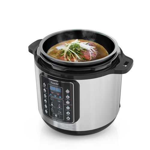 Key Features: Saachi 14 In 1 Multi Function 6L Electric Pressure Cooker – Silver, Black. 14 cooking programs 10 Automatic preset cooking programs: Rice, Multigrain, Porridge, Egg, Steam, Slow cook , Sauté, Meat/Stew, Soup/Broth. Automatic keep-warm function up to 24 hours Adjustable temperature control from 140 to 160°C Accessories: Plastic spoon, Measuring cup Manual Pressure cooker settings: Low, Middle and High Overheat protection