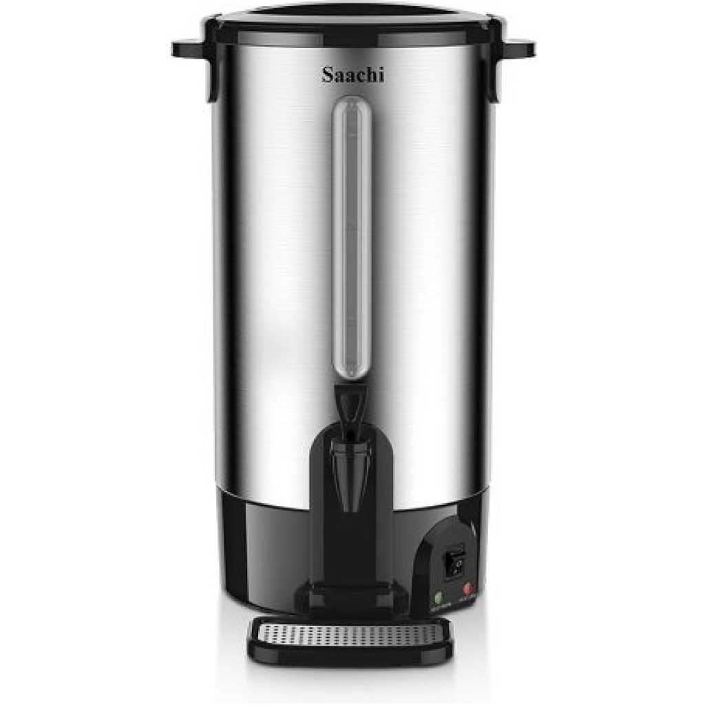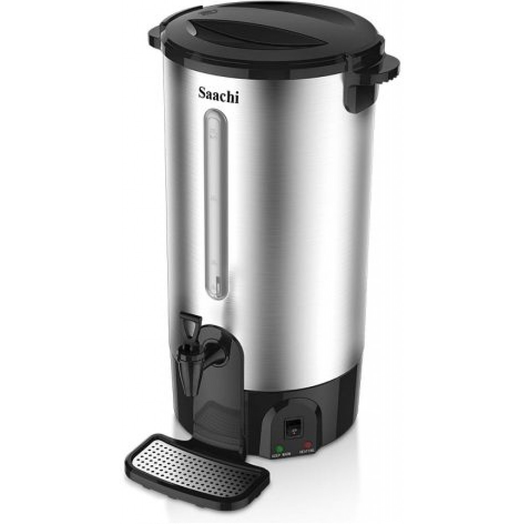 15 Litre Saachi Water Boiler – Black,Silver This Cordless Portable kettle boils water, fast, saving you precious time.It automatically shuts off, once water reaches its boiling point.Made from rust free,Food-Grade Stainless Steel.The ergonomically designed spout,allows you to pour out contents with ease without creating drips. Key Features: 15 Liters capacity Stainless steel body Variable temperature control with a maximum temperature of 110oC Automatic switch off Built-in dry boil protection External water gauge Non-drip dispensing tap Pilot light indicator Overheat protection
