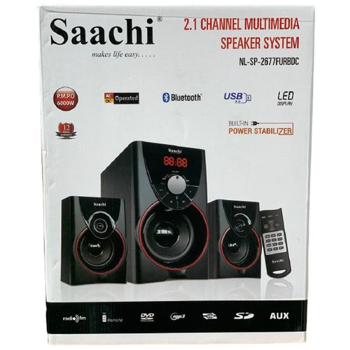 Key Features: 2.1 speaker remote control AC/DC Color: Black Bluetooth 2677