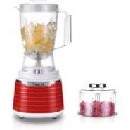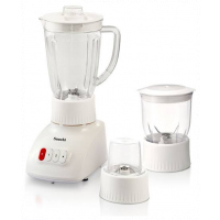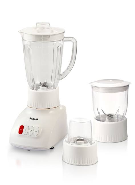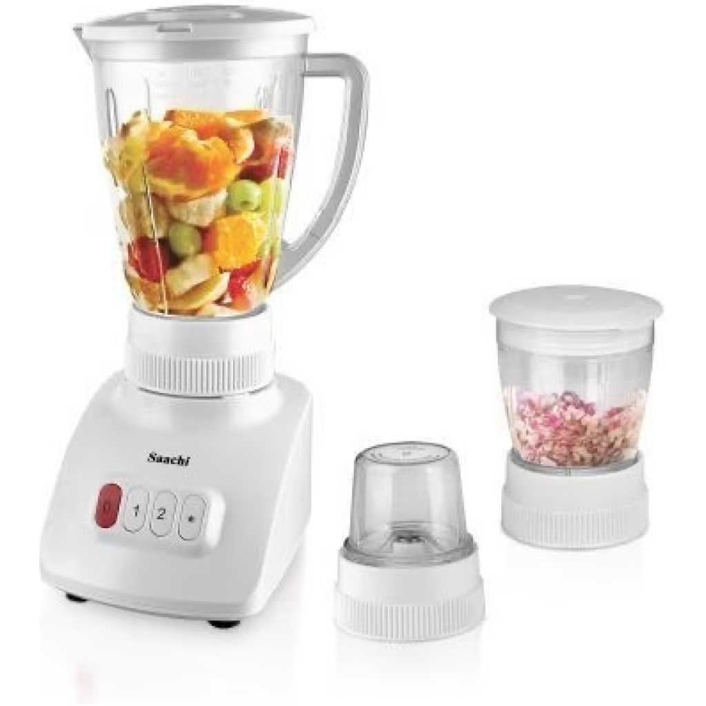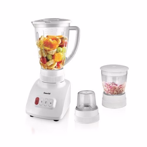 Bring variety in your foods by preparing a great number of recipes with the Saachi NL BL 4379 3 in 1 with Unbreakable Jar Countertop Blender. This white appliance includes three jars that blend, grind, and chop foods with precision. They achieve this with stainless steel, serrated blades that provide quick and even results. You can regulate the operation speed according to the consistency you need with its two speed control and pulse function. The appliance features a 37.5 x 17.5 x 27.8cm body that weighs 2.45kgs, making it compact and light. This enables you to easily hold and keep it anywhere in the kitchen. Cleaning the countertop blender is also not a problem as it is equipped with auto clean function. Covers Every Blending Need This Saachi blender includes three attachments: a blender, mincer, and mill. Use the 1.6L blender to create delicious smoothies, soups, and juices in an instant and in large quantities in on go. The mill comes in handy when you need to grind hard ingredients such as spices, coffee beans, herbs into a smooth paste. Unlike traditional millers, it can grind dry as well as wet ingredients. Its mincer lets you cut up vegetables in thin or thick slices. Fast and Efficient This Saachi 3 in 1 blender gives a superb performance with its 400W motor and stainless steel blades. The motor gives it incredible speed to quicken up the meal preparation process. The blades are ultra sharp that makes them capable of reducing even the most hardened foods into fine slices or powder. Stainless steel makes sure the blades work for long without rusting. The appliance comes with a 1.6L jar that is virtually unbreakable, and thus is reliable and convenient for use. Key Features: 3 attachments – plastic jar, mincer and mill 2-speed control with pulse function 1.6 litres jar capacity Unbreakable jar Plastic lined grinding mill Stainless steel blades Auto clean system