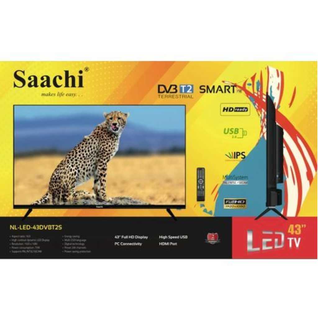 Saachi 42 Inch Smart TV Frameless Flat Screen Android TV With Inbuilt Free To Air Decoder – Black. Saachi Full HD TV features a 42-inch display. This Saachi Smart TV lets you browse and play movies, TV shows, and much more on the Internet. Get a personal home theater experience with the Saachi Series Frameless FHD Smart TV. Relax, let the virtual world take over your senses to fly with excitement, and intrigue brought on by its cinematic visuals and sounds. This Saachi TV flaunts a 42-inch screen Bezelless Design. View all your favorite content in brilliant clarity, sharpness, and vividity with its Full HD picture resolution. Installed with an intuitive OS, operating and navigating through the television is pure fun. This Saachi Full HD TV has smart features that enable you to access a host of apps, movies, and songs online in high definition with a few button presses. You can also view the content stored in external devices on this Saachi smart TV with a simple connection. ENGROSSING ENTERTAINMENT: 42 inch screen with wide viewing angles provides a large, clear, bright view from every seat in the room full HD resolution livens up the screen with crystal clear, deeply contrasted, optimally bright, and boldly hued images to built-in 7W speakers produce immersive, loud, and clear sounds Preloaded Android offers a user-friendly interface for easy operations and understanding of its features Quad Core processor makes the system highly responsive and smooth. le prices on our store at www.tilyexpress.ug Key Features: Saachi 42 Inch Smart TV Frameless Flat Screen Android TV With Inbuilt Free To Air Decoder – Black. Brand: Saachi Android Smart TV Display size: 42″ Design: Bezel-less Frame Model: NL-LED-42DVBT2S Resolution: 1920*1080 Power Consumption: 75W Supports PAL/NTSC/SECAM Energy Saving Multi OSD Language Digital Technology Preset 200 channels Aspect Ratio: 16.9