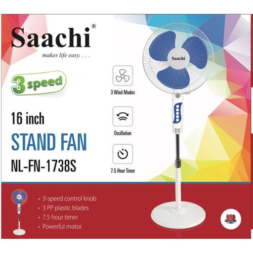 Key Features: Brand: Saachi 3 Speeds 3 wind Modes 3 Speed Settings 7.5 Hour Timer 5 Wing High Velocity Blade Material: Stainless