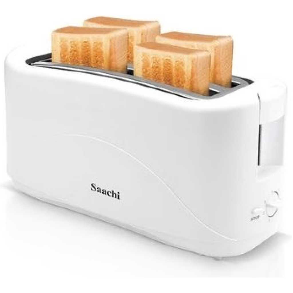This popular saachi bread toaster has 7 heat settings that you can adjust to get your desired toasted bread. it can only toast 4 slices of bread at a time, It is white in color, and works very efficiently with electricity. The toaster radiates heat that helps in the process of toasting. you will love tasting the toasted bread. Key Features: Affordable Has 7 heat settings It can toast 4 slices of bread at a time Works efficiently with electricity Hs a stop function Plastic body on the outside Good quality