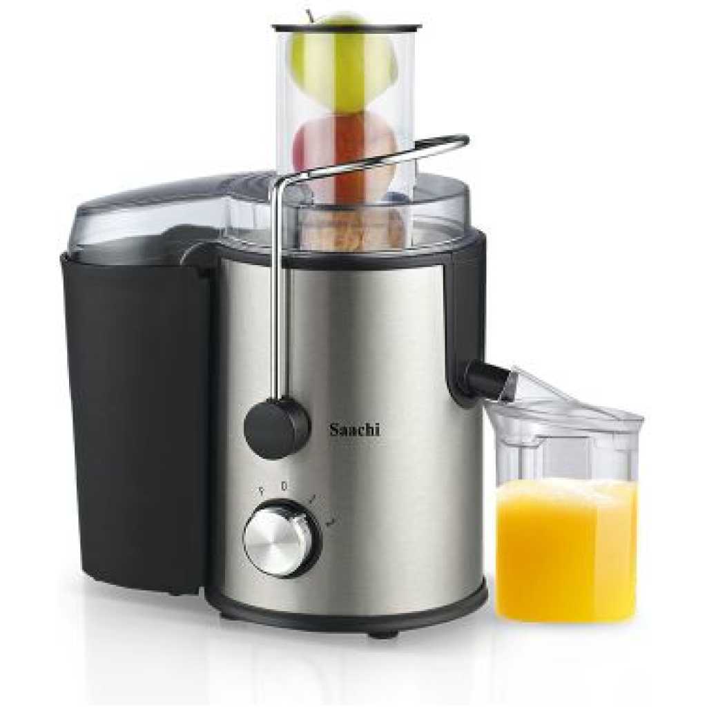 saachi JUICE EXTRACTOR GREAT POWER BUT QUIET WORK – Powerful 800W motor helps to quickly and efficiently turn fruits and vegetables into a delicious juice. Overheat protectors can prevent engine overheating and avoid breakdowns in the future. Despite the high speed, this cold press juicer will not interfere with your co-lives with its noise.Prepare healthy and refreshing juices with our blender & juice extractor. This Powerful motor helps to quickly and efficiently turn fruits and vegetables into a delicious juice. Overheat protectors can prevent engine overheating and avoid breakdowns in the future. Despite the high speed, this cold press juicer will not interfere with your co-lives with its noise. Speed regulator-For convenient use and processing of fruits and vegetables, this type of juicer machine has a built-in speed controller. The first speed is ideal for soft fruits and vegetables. It can be any berries, bananas, oranges, tomatoes, grapes, etc. When choosing the second-speed juice machine can easily cope with hard fruits and vegetables, such as carrots, apples, peaches, cucumbers. The extra large pulp container and juice cup- Pulp collector can contain 2L of processed residues of vegetables or fruits. There are two-speed settings available, use “I” low speed for softer fruits and vegetables, and “II” speed for harder ones. Helpful for gym and office people, just within a few seconds you can carry fresh juice. Easy to clean and with overheat protector – Equipped with Non-slip rubber feet at the bottom of the juicer, it allows you to use the juicer safer and more stable than other juicers. An overheat protector built onto the motor protects it from over-burning. All parts except the motor can be easily rinsed underwater.