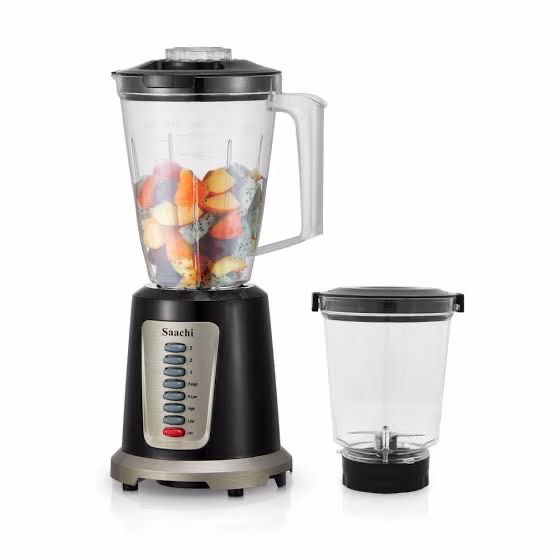 Saachi NL-BL-4394-BK 2-in-1 Blender/Grinder acts as a regular blender but also comes equipped with another attachment for a mill allowing you to carry out many different tasks with this one simple appliance. The pulse function gives you complete control as to how long you wish to run the blender on high-speed and also assists in the auto-clean function when used with a little warm water. It is constructed with extremely sharp stainless steel blades which makes cutting fast and precise. Low power input ensures minimum power consumption. Small but compact size takes minimal space while in storage. Features overheat protector on a powerful motor which prevents the machine from damage.