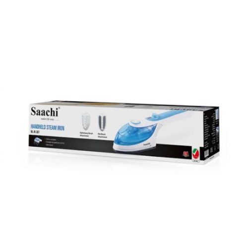 The Saachi Handheld Steam Iron NL-IR-387C is a compact and easy to use appliance. It has a temperature control dial and a powerful burst function to give you complete control over the intensity of the steam. It comes with 2 brush attachments including a flat brush for regular clothing and a upholstery brush for thicker surfaces such as curtains or even couches. The base stand that comes with the iron can be used to rest the iron without having the Teflon soleplate touching and damaging your table. Features Teflon soleplate Temperature control knob Base stand Water tank 2 Additional brushes Upholstery brush attachment Flat brush attachment Powerful burst function Accessories: Plastic measuring cup