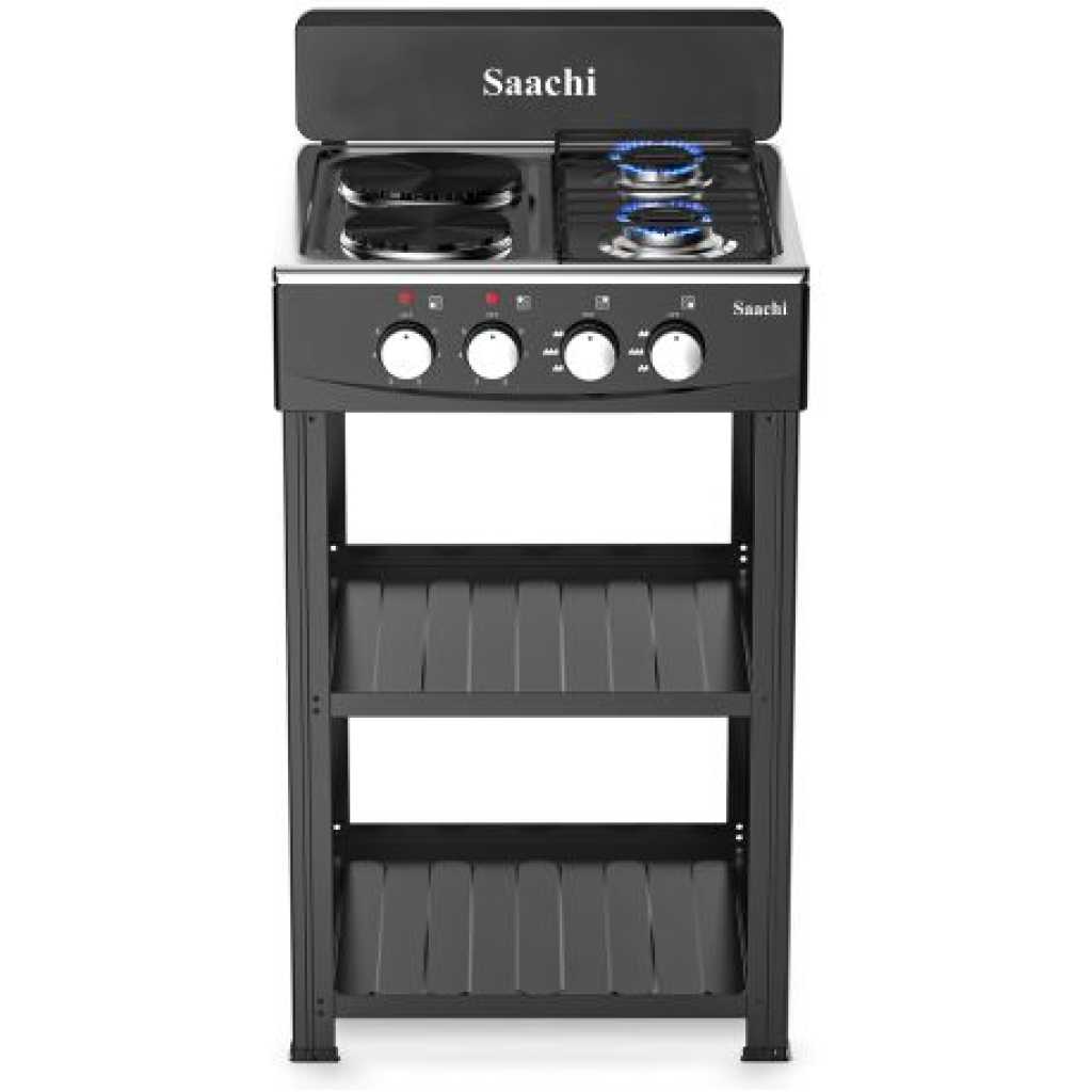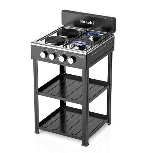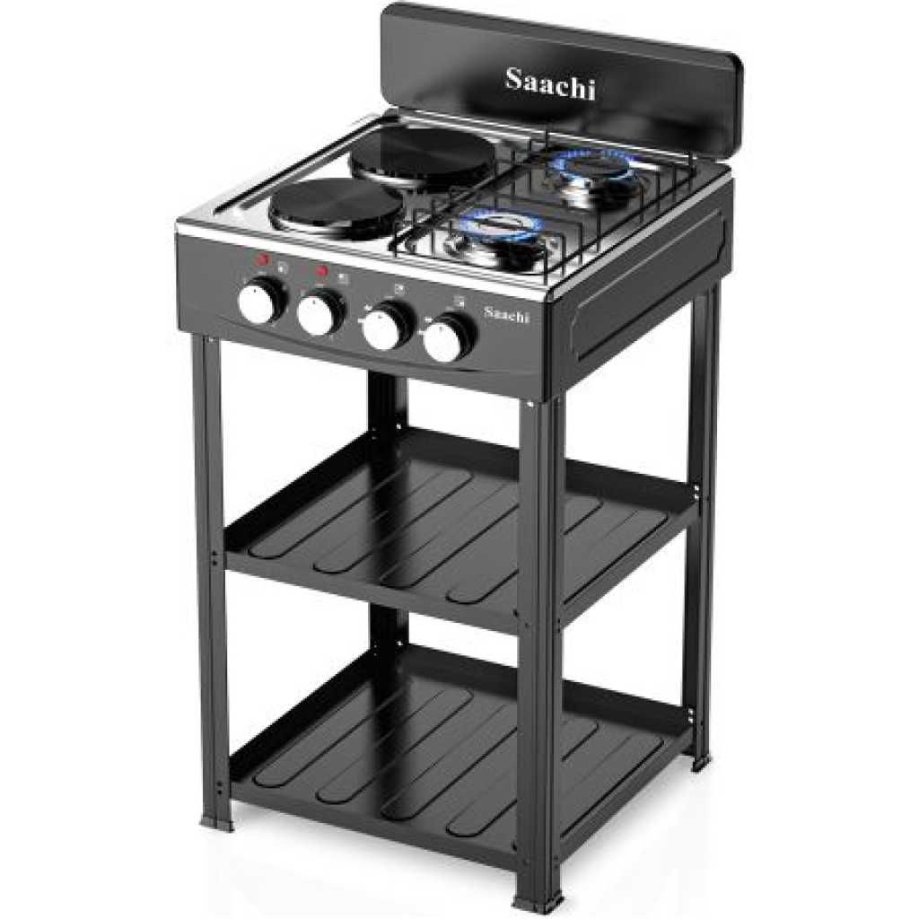Saachi Stainless Steel Gas Burner With 2 Gas Tops, 2 Hot plates & Shelves – Black. This model comes with a four burner high power cooker with whirlwind technology. Its trivets and trays are detachable which makes it easier to clean. Features – 4 burner gas top with hot plate for great flexibility – Cooking range with mix hob – Manual ignition – Multiple cooktops ( Gas + Electric) – Type of gas: Liquefied petroleum gas – Enamel coated, detachable trivets and trays – Low gas consumption – Gas pressure: 28-30Pa Key Features: Saachi Stainless Steel Gas Burner With 2 Gas Tops, 2 Hot plates & Shelves – Black. 4 burner gas top with hot plate for great flexibility Cooking range with mix hob Manual ignition Multiple cooktops ( Gas + Electric) Type of gas: Liquefied petroleum gas Enamel coated, detachable trivets and trays Low gas consumption Gas pressure: 28-30Pa