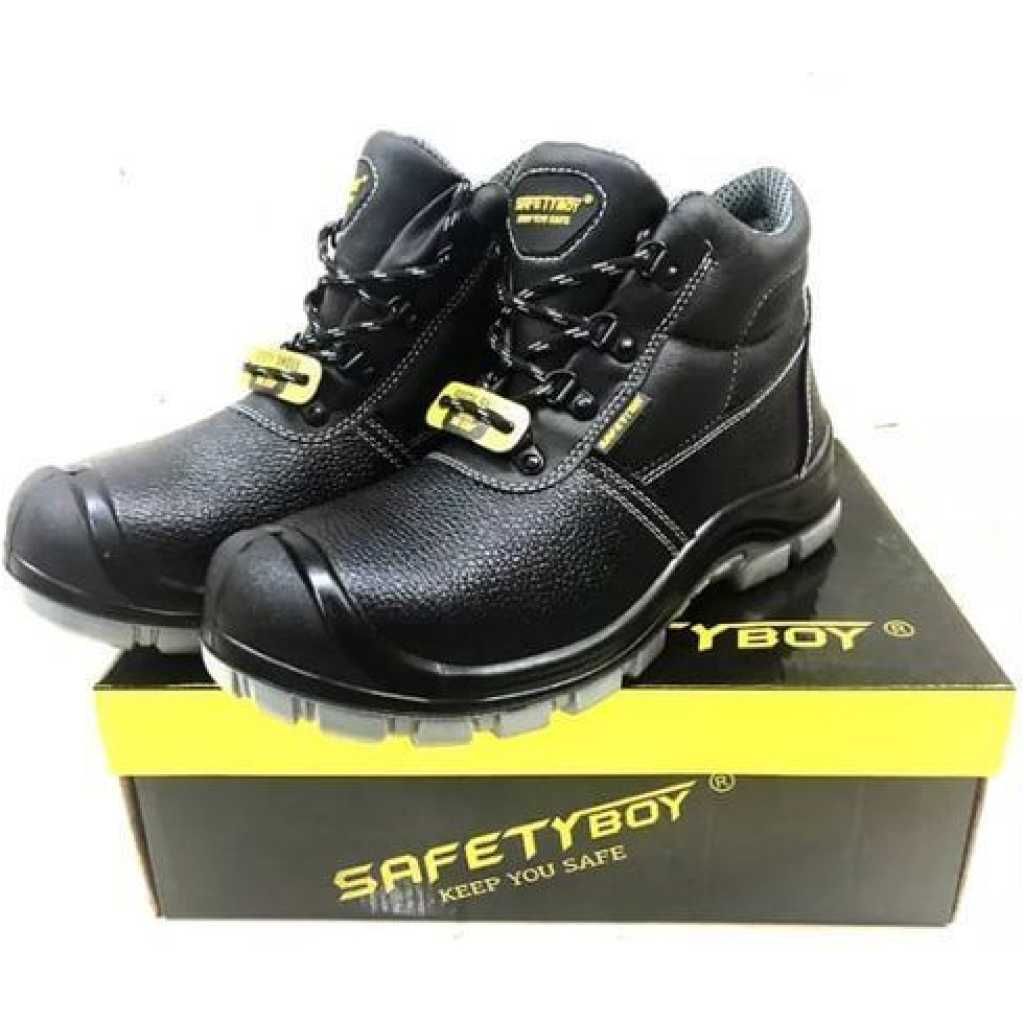 Construction & Manufacturing Faux Leather shoe, water repellent, black, nylon mesh lining static, puncture resistant steel sole. Shock proof, anti-slip, steel toe cap. Order these products from TilyExpress Uganda at the best price and have it delivered right at your doorstep. Faux Leather shoe Water repellent Color: black, nylon mesh lining static, Puncture resistant steel sole. Shock proof Anti-slip Steel toe cap