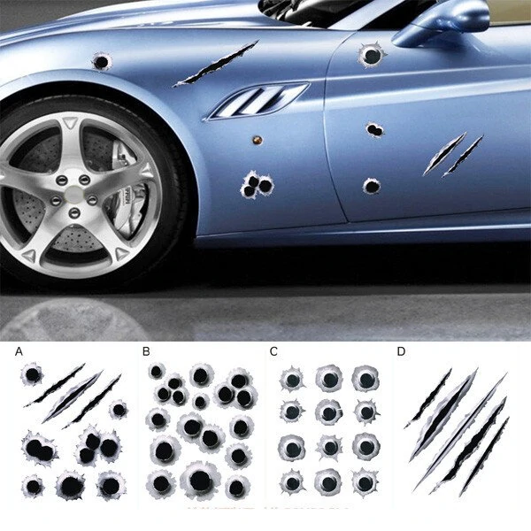 Samolepky se simulovanými střelnými otvory 3D na auto nálepka proti poškrábání voděodolné samolepky na motorku 23X29CM