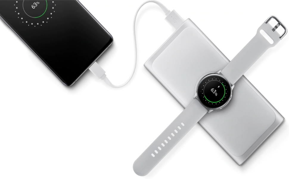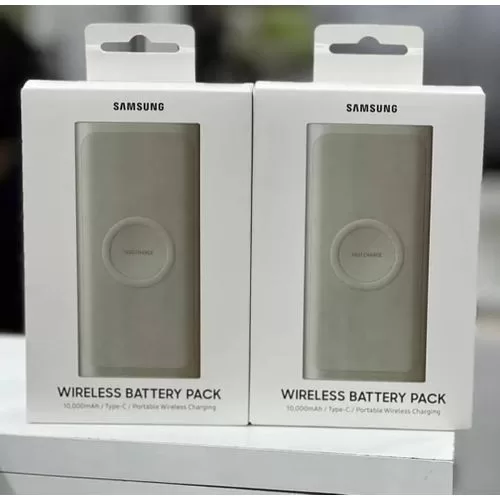 The truly wireless life Take the convenience of wireless charging on the road. The new Wireless Battery Pack allows you to wirelessly charge any Qi-compatible device, so you don’t have to worry even when there’s no outlet in sight. Back to full The new Wireless Battery Pack powers up your phone quickly with its Fast Wireless Charging capabilities, whether your phone is plugged in or charged wirelessly. And it can charge two phones at once, so you have always got space to give your buddy a boost. Compatible with Qi devices Bring along your other devices too, knowing you can recharge their battery, no problem. The new Wireless Battery Pack is built to be Qi-compatible, so as long as your phone is compatible too, you can place it down to power back up. Super Fast Charging. Power up your phone quickly with Super Fast Charging capabilities. Plugged in via the pocket USB-C cable, your Galaxy Note 10 and can charge at 25 Watt. Wirelessly you can fast charge your Qi compatible smartphone at 7. 5W. Share with a friend. Charge three devices at once, so even if you’re charging your Galaxy Buds and smartphone, you can still give your buddy a boost. Charge Galaxy Watch or Galaxy Buds. Get a quick boost for your Galaxy Buds or Samsung smartwatch by simply placing them on the wireless pad. 10, 000 mAh. The 10, 000 mAh battery can provide two full wired charges for your smartphone and multiple charges for your smartwatch or Galaxy Buds. On-the-go or on your end table. Your portable battery can replace your wireless charger pad at home. When the battery is plugged in and charging with a wall charger, simply place the back of your smartphone on the charging pad and wait for the charging notification to appear. When you’re traveling, just press the battery’s power button to begin charging. Model Number [EB-U3300] Compatible devices: iphone Compatible phone models: Samsung Galaxy S