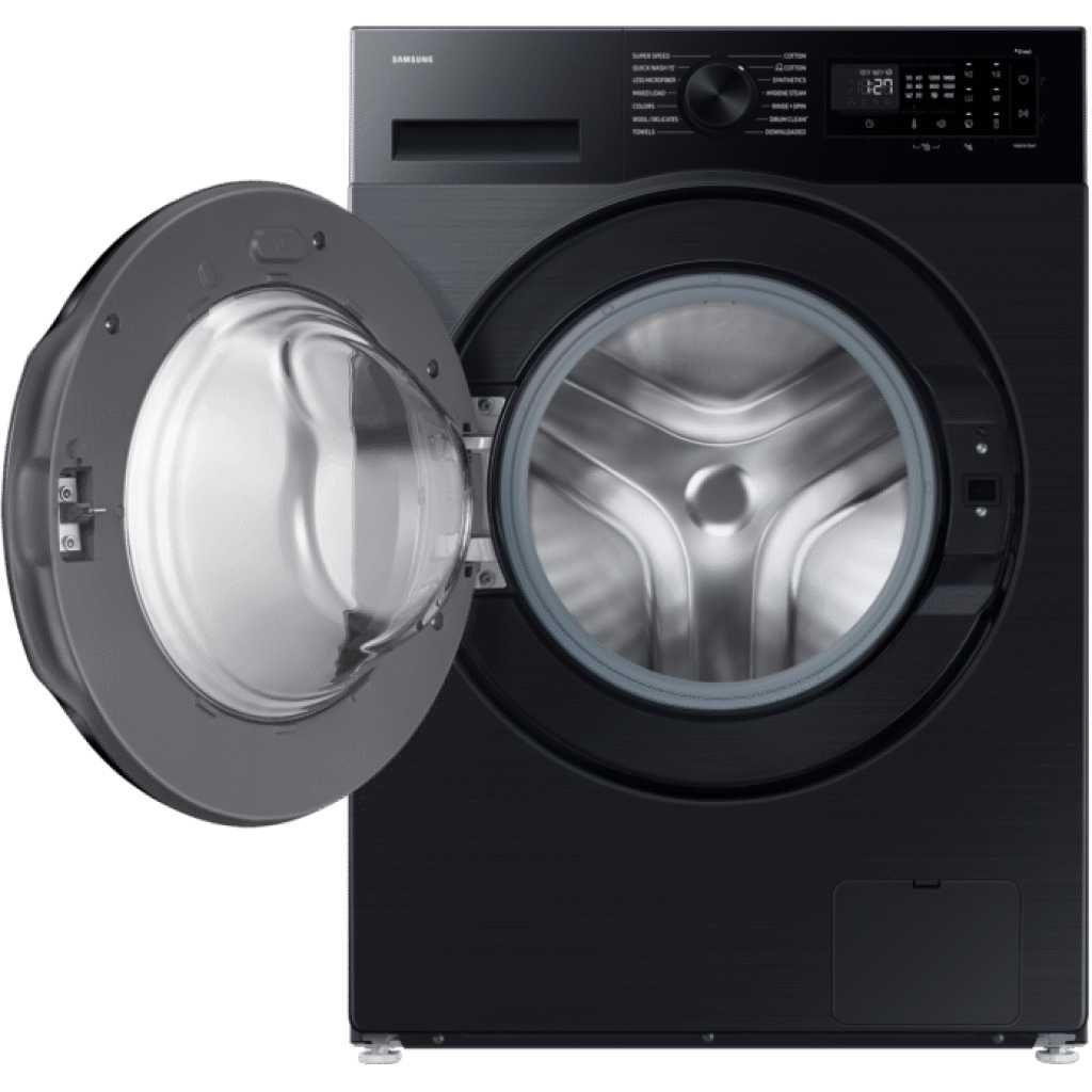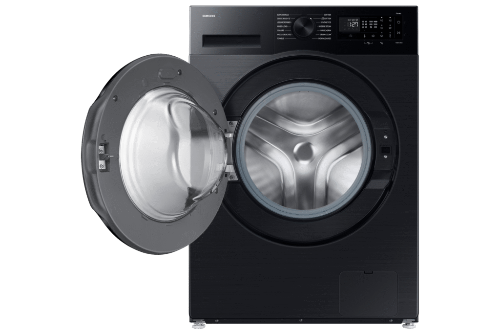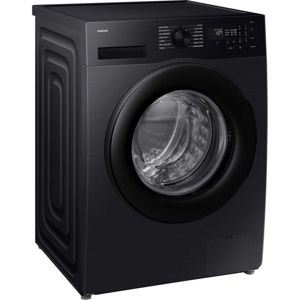 Samsung 10KG Front Load Washing Machine WW10DG5U34ABNQ Upgrade your laundry experience with this 10.5 kg front-load washing machine, designed for families who need efficiency, durability, and advanced care. With a powerful 1400 RPM spin speed, it ensures faster drying by removing excess water effectively. The AI EcoBubble™ wash technology delivers deep cleaning even in cold water, protecting fabrics while saving energy. Enjoy a modern touch with the intuitive LED display panel and dial knob, while the digital inverter motor guarantees quiet, reliable, and long-lasting performance. Its sleek black carved door complements contemporary spaces, and the compact 600 × 850 × 595 mm design fits seamlessly into your home. Stay connected with Wi-Fi and SmartThings compatibility, allowing you to manage laundry remotely. For hygiene and care, the Hygiene Steam cycle eliminates bacteria and allergens, making it ideal for sensitive skin. Additional features include a 15-minute Quick Wash, child lock for safety, and eco-conscious low energy consumption. Built with durable, anti-corrosion components and engineered for quiet operation, this washing machine is a smart, family-friendly choice for modern living. Key Features: Drum Size: 10.5 kg – Family-sized capacity Spin Speed: 1400 RPM – Efficient water removal Display Panel: Intuitive LED with dial knob Wash Technology: AI EcoBubble™ – Cold-water fabric care Motor: Digital Inverter – Quiet, efficient, durable Smart Features: Wi-Fi enabled, SmartThings compatible Steam Cleaning: Hygiene Steam removes bacteria & allergens Design: Sleek black carved door, compact size Dimensions: 600 mm × 850 mm × 595 mm Energy Use: Low-consumption, eco-conscious design Child Lock: Integrated safety lock for families Quick Wash: 15-minute rapid cleaning option Material: Durable build with anti-corrosion components Noise Level: Quiet operation for shared spaces