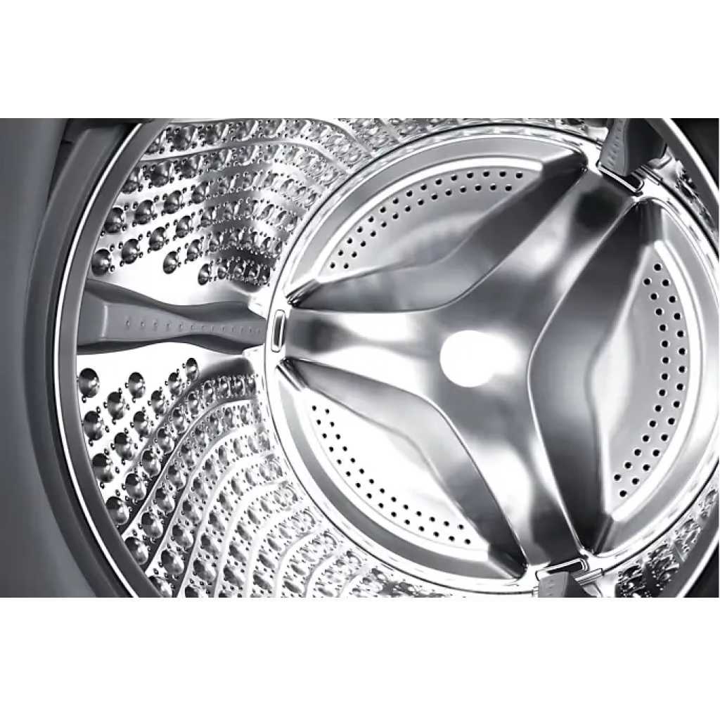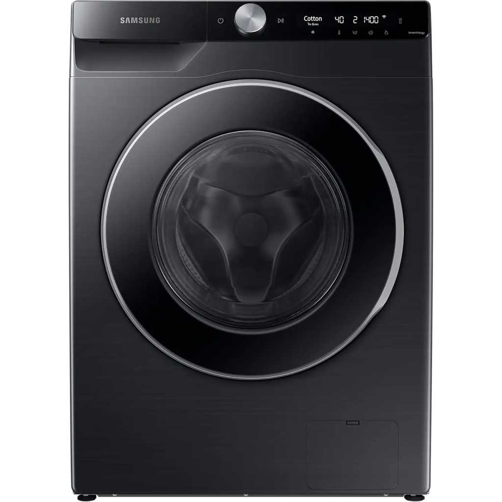 AI Ecobubble™ – It also detects the fabric type and optimizes the amount of bubbles, washing time, temperature and spin speed SpaceMax™ – SpaceMax™ technology also creates more space inside, so you can wash more, including big items like comforters. Intelligent washing – Improve washing using AI control as it remembers your habits, suggests cycles, and displays timely information. SmartThings AI Energy Mode – Monitor and control to help reduce your washer’s energy use. AI Energy mode* lets you easily check power consumption and estimates your electricity bill Wash in 39 minutes – Super Speed – Cut your daily laundry time and get clothes thoroughly clean. Use Super Speed to wash a load in just 39 minutes*. Hygiene Steam – Give clothes a deep, hygienic clean with steam. This removes ingrained grime, 99.9% of bacteria* and inactivate allergens derived from house dust mite in the laundry** Digital Inverter Technology – Enjoy superior efficiency, less noise, and long-lasting performance. Digital Inverter Technology utilizes strong magnets for a quieter* and powerful performance but uses less energy than Universal Motor. Drum Clean + – Keep the door and inside of your washer hygienically clean. Drum Clean + removes dirt and 99.9% of odor-causing bacteria* from the drum, without costly detergent. A powerful water jet and fast spinning also remove grime from around the door gasket. A Key Features: AI Ecobubble™ – It also detects the fabric type and optimizes the amount of bubbles, washing time, temperature and spin speed SpaceMax™ – SpaceMax™ technology also creates more space inside, so you can wash more, including big items like comforters. Intelligent washing – Improve washing using AI control as it remembers your habits, suggests cycles, and displays timely information. SmartThings AI Energy Mode – Monitor and control to help reduce your washer’s energy use. AI Energy mode* lets you easily check power consumption and estimates your electricity bill Wash in 39 minutes – Super Speed – Cut your daily laundry time and get clothes thoroughly clean. Use Super Speed to wash a load in just 39 minutes*. Hygiene Steam – Give clothes a deep, hygienic clean with steam. This removes ingrained grime, 99.9% of bacteria* and inactivate allergens derived from house dust mite in the laundry** Digital Inverter Technology – Enjoy superior efficiency, less noise, and long-lasting performance. Digital Inverter Technology utilizes strong magnets for a quieter* and powerful performance but uses less energy than Universal Motor. Drum Clean + – Keep the door and inside of your washer hygienically clean. Drum Clean + removes dirt and 99.9% of odor-causing bacteria* from the drum, without costly detergent. A powerful water jet and fast spinning also remove grime from around the door gasket. A