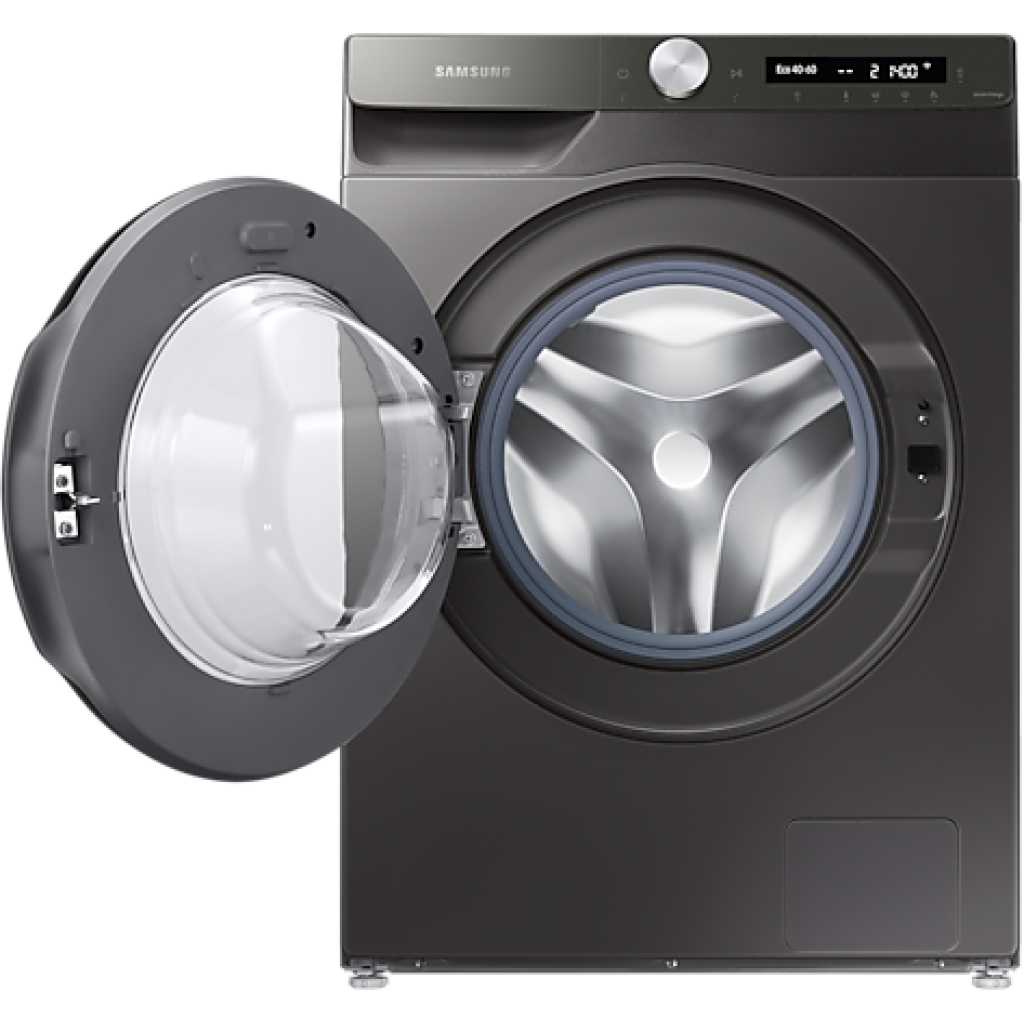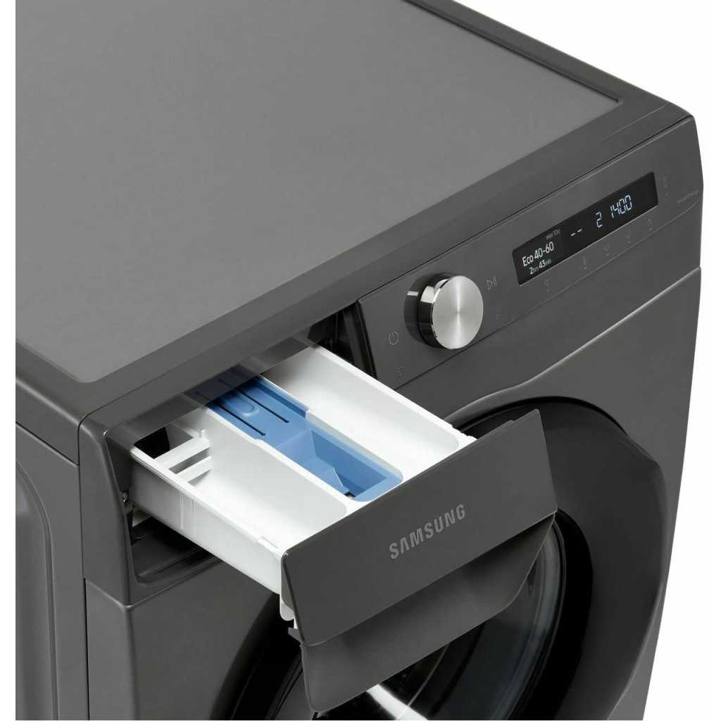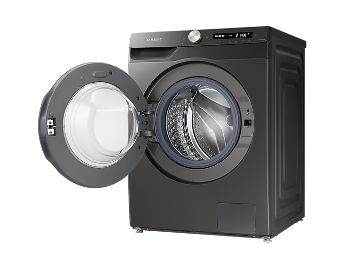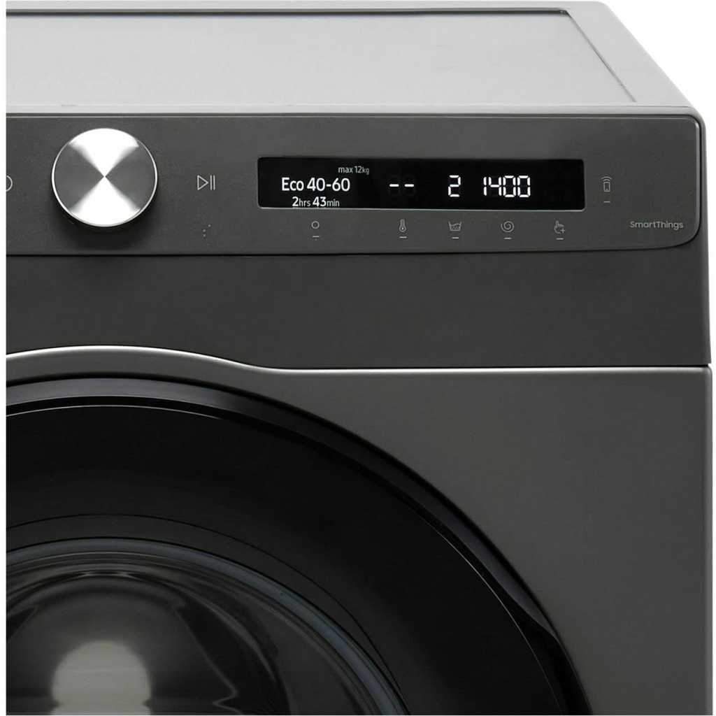 Samsung 12kg Washing Machine WW12T504DAN; Series 5 ecobubble™ with 1400 rpm – Graphite – A Rated. Lovely bubbly ecobubble™ ecobubble™ technology is one of our brilliantly useful features designed to make laundry less of a chore. Mixing air, water and detergent, it cleverly creates bubbles that wash your clothes at cooler temperatures, helping you to bring down your energy bills. Key Features: Samsung 12kg Washing Machine WW12T504DAN; Series 5 ecobubble™ with 1400 rpm – Graphite – A Rated. 1400 RPM Digital inverter motor with a 10yr warranty Smart WI-FI Smart things app support AI control Stay clean drawer Delay end Child lock Eco bubble technology Hygiene steam Synthetics dry option 15’ quick wash