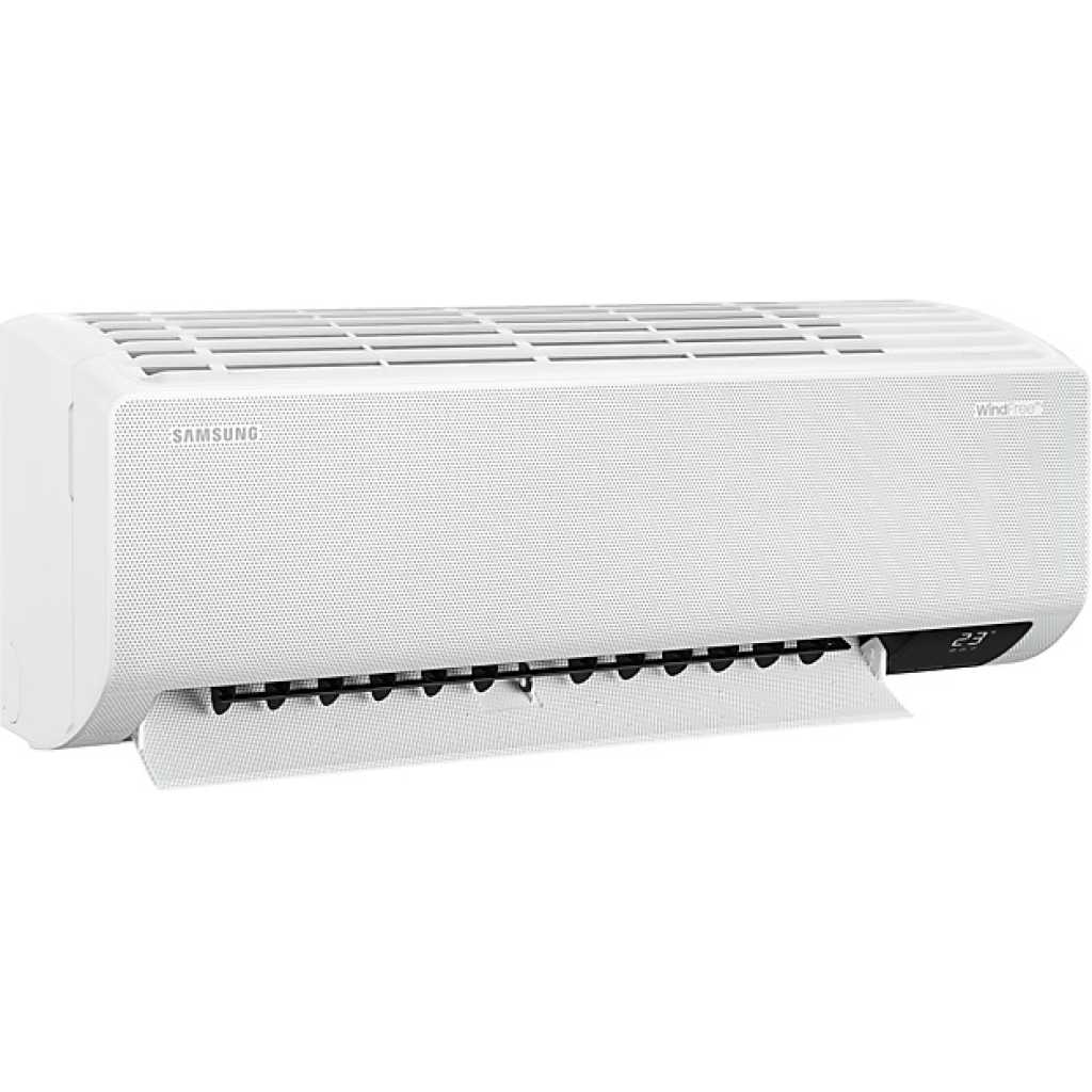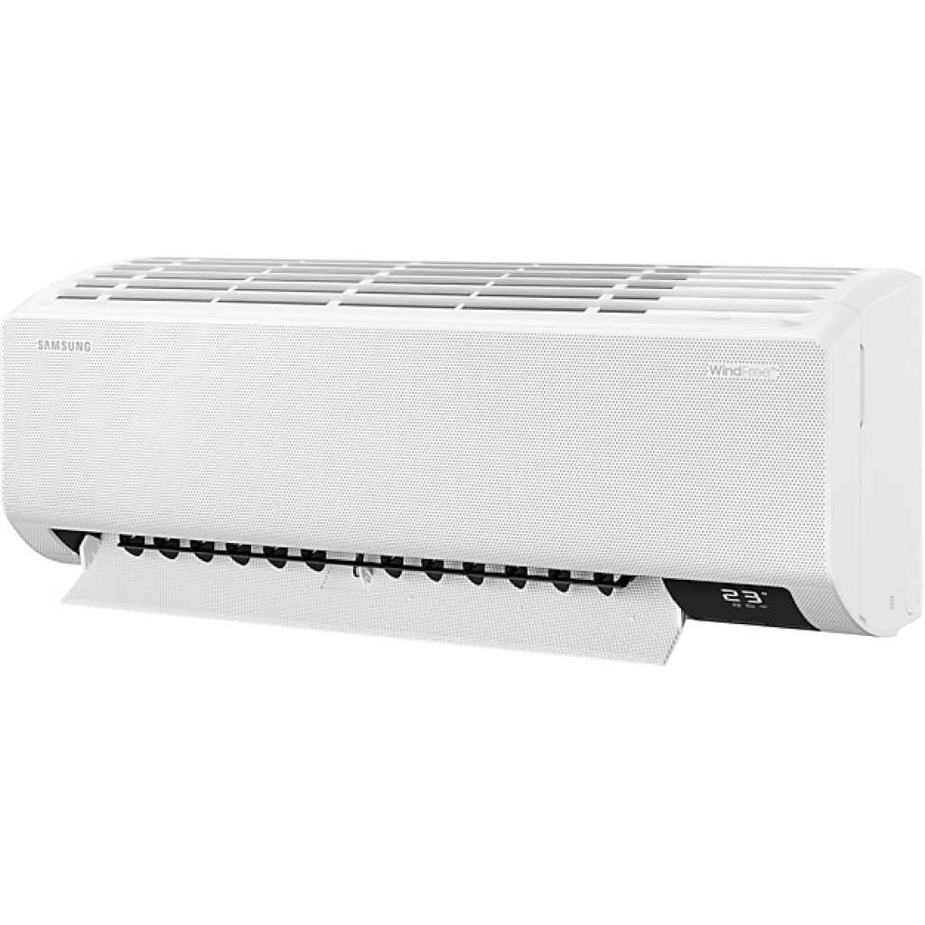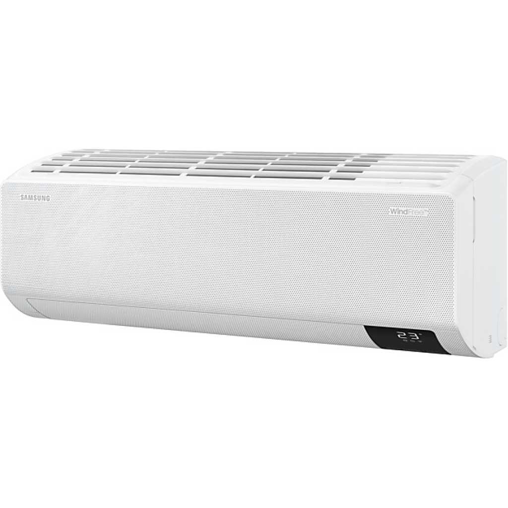 Samsung 18000 BTU WindFree High Wall Split Air Conditioner. Stay comfortably cool without feeling cold Reduces energy use by 77%* to save money Enjoy a more intelligent way of living Stay comfortably cool without feeling cold WindFree™ Cooling Stay comfortable cool with WindFree™ Cooling. It gently and quietly disperses air through 23,000 micro air holes, so there is no unpleasant feeling of cold wind on your skin. Its advanced airflow also cools a wider and larger area more evenly. And it uses 77% less energy than Fast Cooling***. Key Features: Samsung 18000 BTU WindFree High Wall Split Air Conditioner. Stay comfortably cool without feeling cold Reduces energy use by 77%* to save money Enjoy a more intelligent way of living
