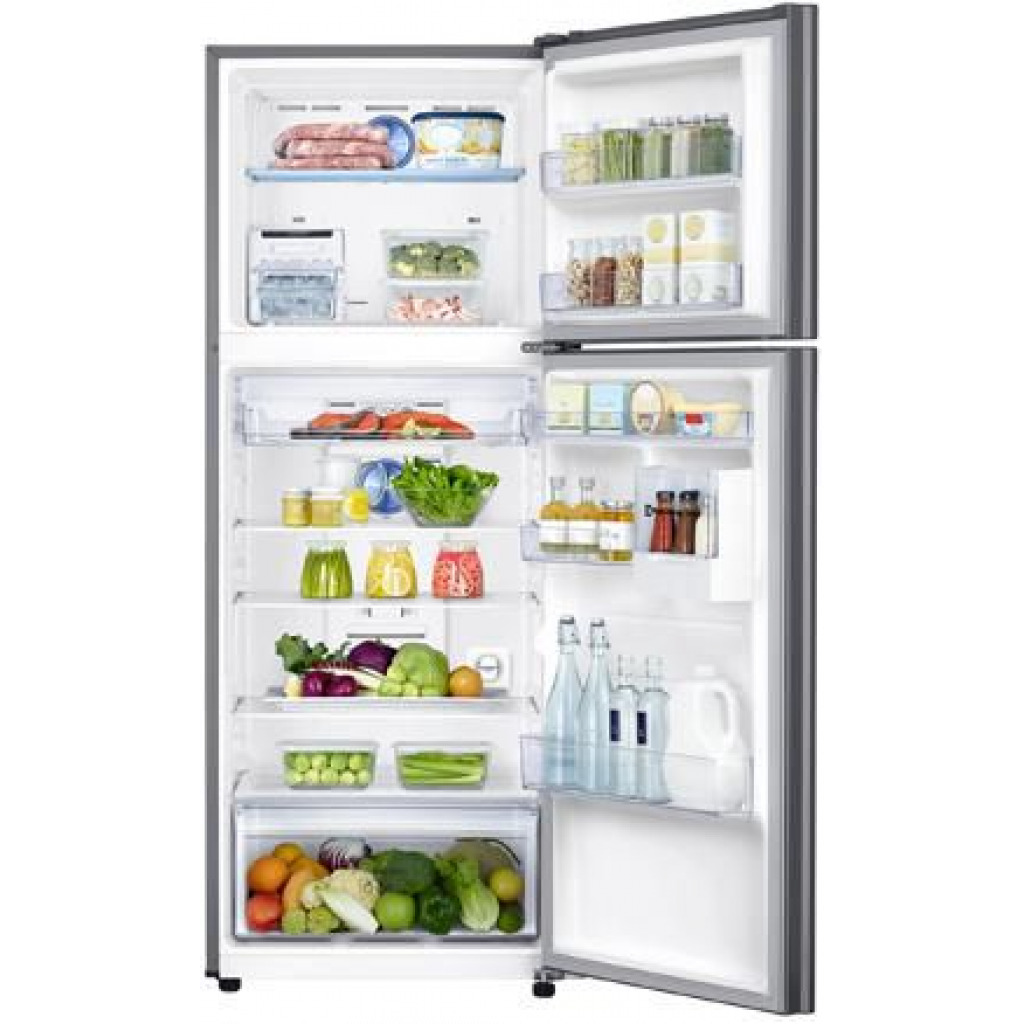 Key Features: Samsung 340 – Litres RT34K5552S8 Frost Free Top Mount Freezer Premium Refrigerator – Silver 340 litres capacity Digital Inverter Compressor with a 10 year warranty Multi-flow Air System LED Lighting Twin Cooling Plus Power Chill and Power Freeze Functions Easy Slide Shelf Tempered Glass Shelves No Frost Technology Deodorizer Big Door Guard Multi Storage Basket A+ Energy Efficiency Class