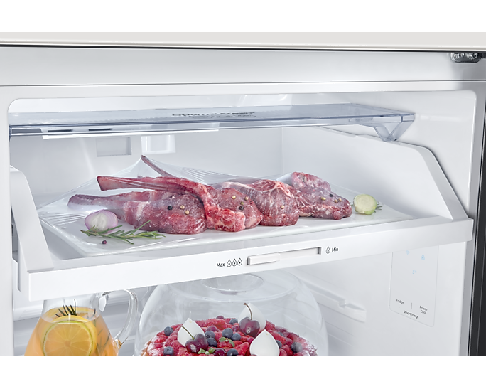 Samsung 415 Ltrs Refrigerator TMF, Space Max, Cool Pack, RT42CG6621B1/UT. 415 Litres Capacity WiFi Embedded Multi Flow Cooling Optimal Fresh Zone Deodorizer Tempered Glass Shelves x 3 Vegetable & Fruit Drawer Door Pockets x 4 Egg Container Twist Ice Maker Coolpack Internal Display Recessed Door Handle Digital Inverter Compressor with a 10-Year Warranty