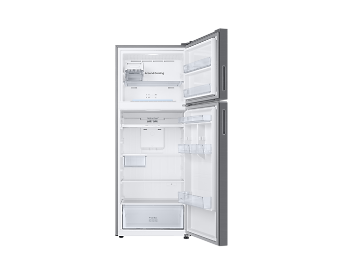 Samsung RT6300C 465 Litre Top Freezer Refrigerator with Optimal Fresh+, Wi-Fi Embedded, Silver (RT47CG6631S9UT). Save your energy intelligently SmartThings AI Energy Mode Monitor and proactively save energy. AI Energy Mode* analyzes your refrigerator usage patterns and estimates power consumption, based on AI technology. If the estimated electricity bill exceeds your preset target, it recommends you activate the Saving mode to reduce energy use by up to 7%**. Key Features: Samsung RT6300C 465 Litre Top Freezer Refrigerator with Optimal Fresh+, Wi-Fi Embedded, Silver (RT47CG6631S9UT). Mono Cooling WiFi Embedded Deodorizer Cool Pack Digital Inverter Compressor