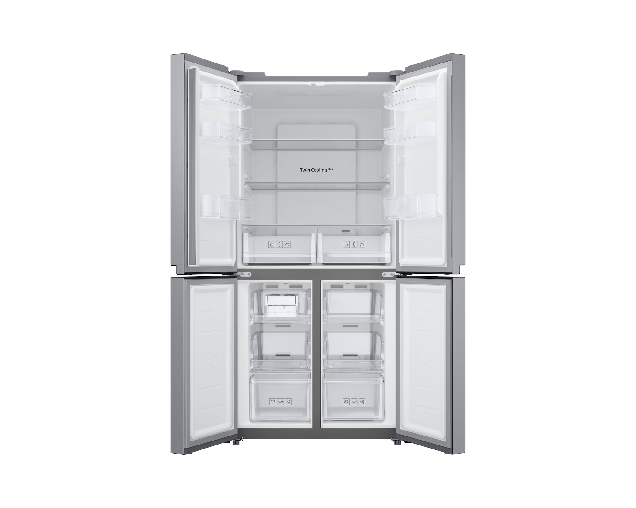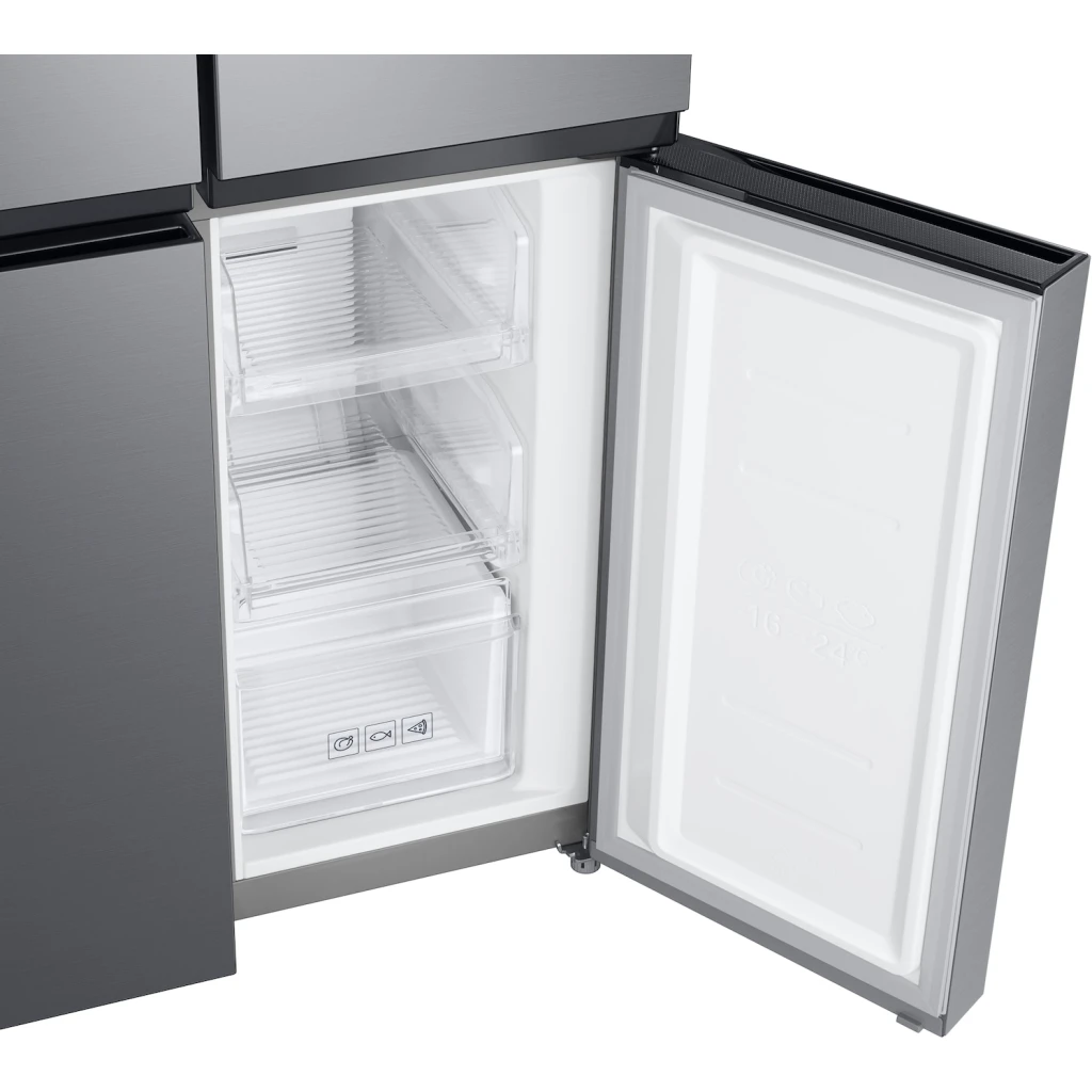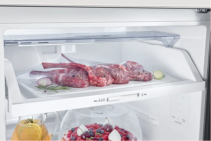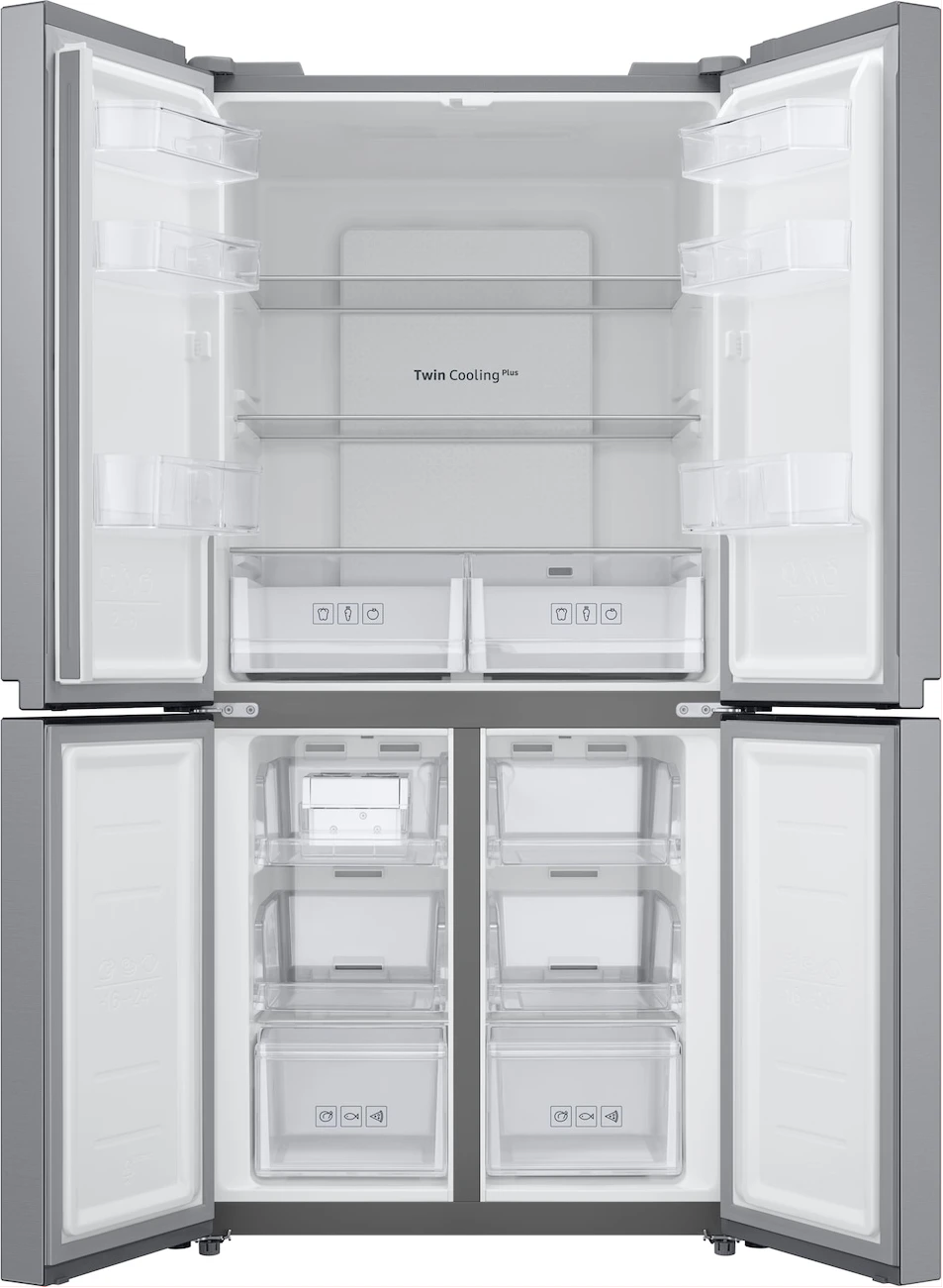 Features Key Features: Twin Cooling Plus: Optimize the temperature and humidity in the fridge and freezer using independent cooling Digital Inverter Technology: Less noise and greater energy efficiency Fresh Zone: Preserve the freshness and flavor of fruit and vegetables for longer Net for Freezer (Liter): 159 ℓ Net for Fridge (Liter): 329 ℓ Net Total (Liter): 488 ℓ No Frost: Yes Cooling Type: Twin Cooling Plus Colour: Gentle Silver Matt Display Type: External Door Handle: Recess