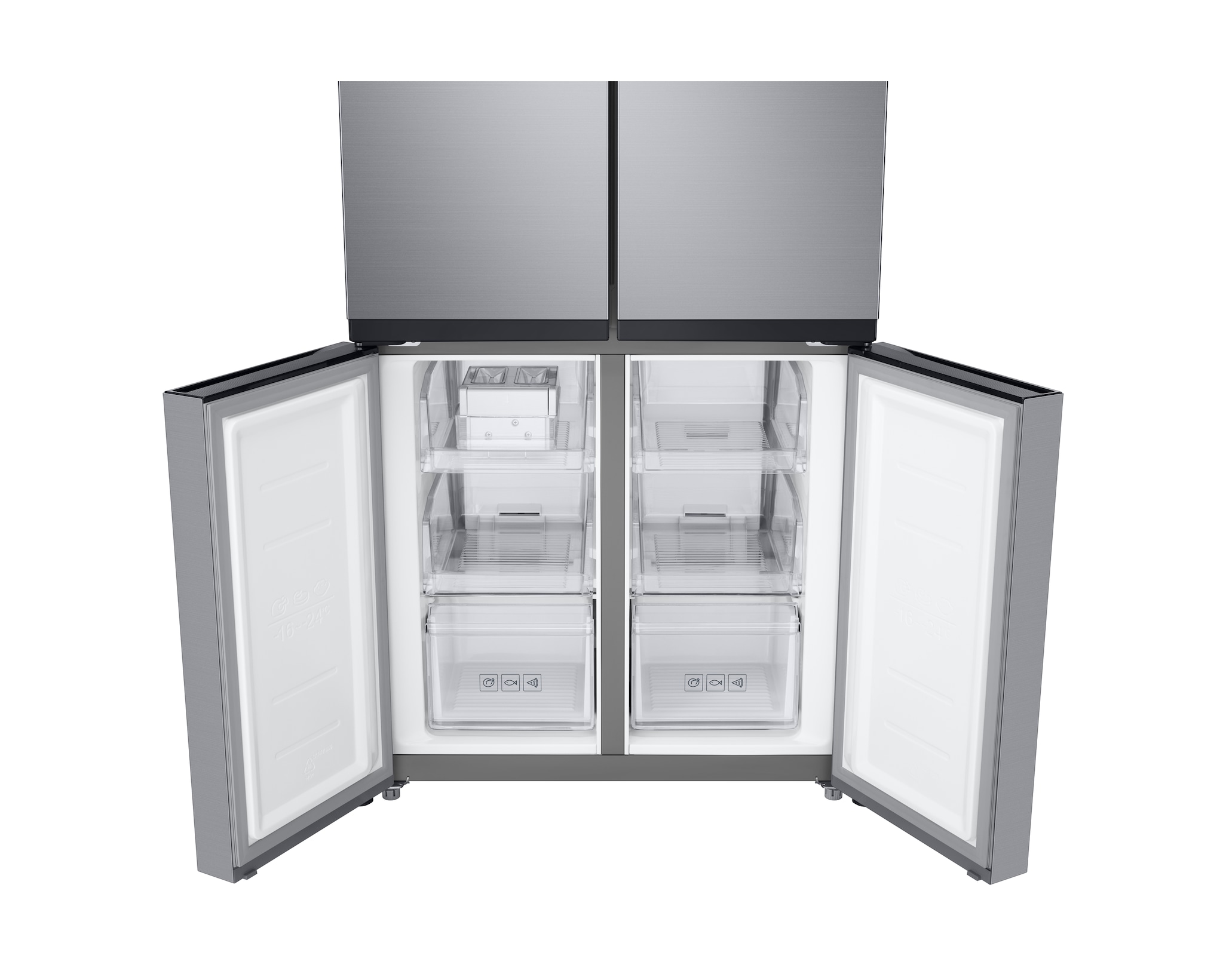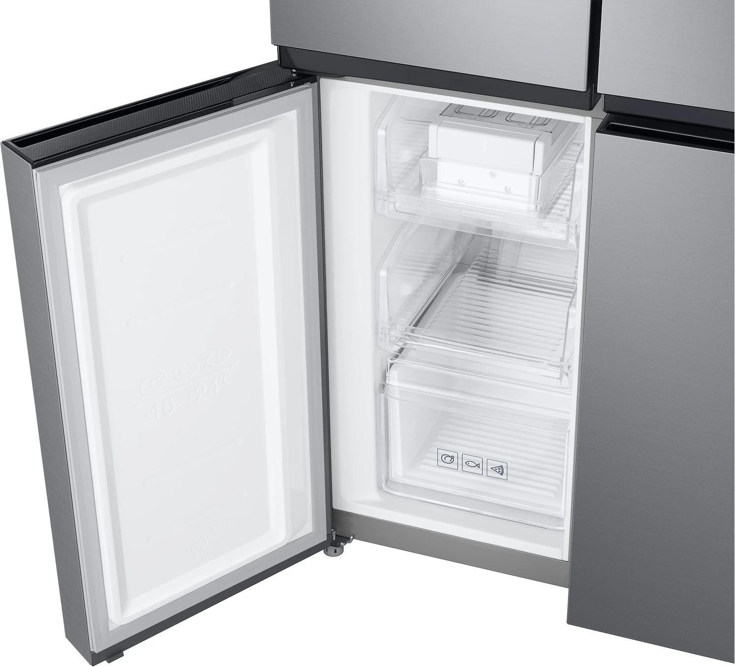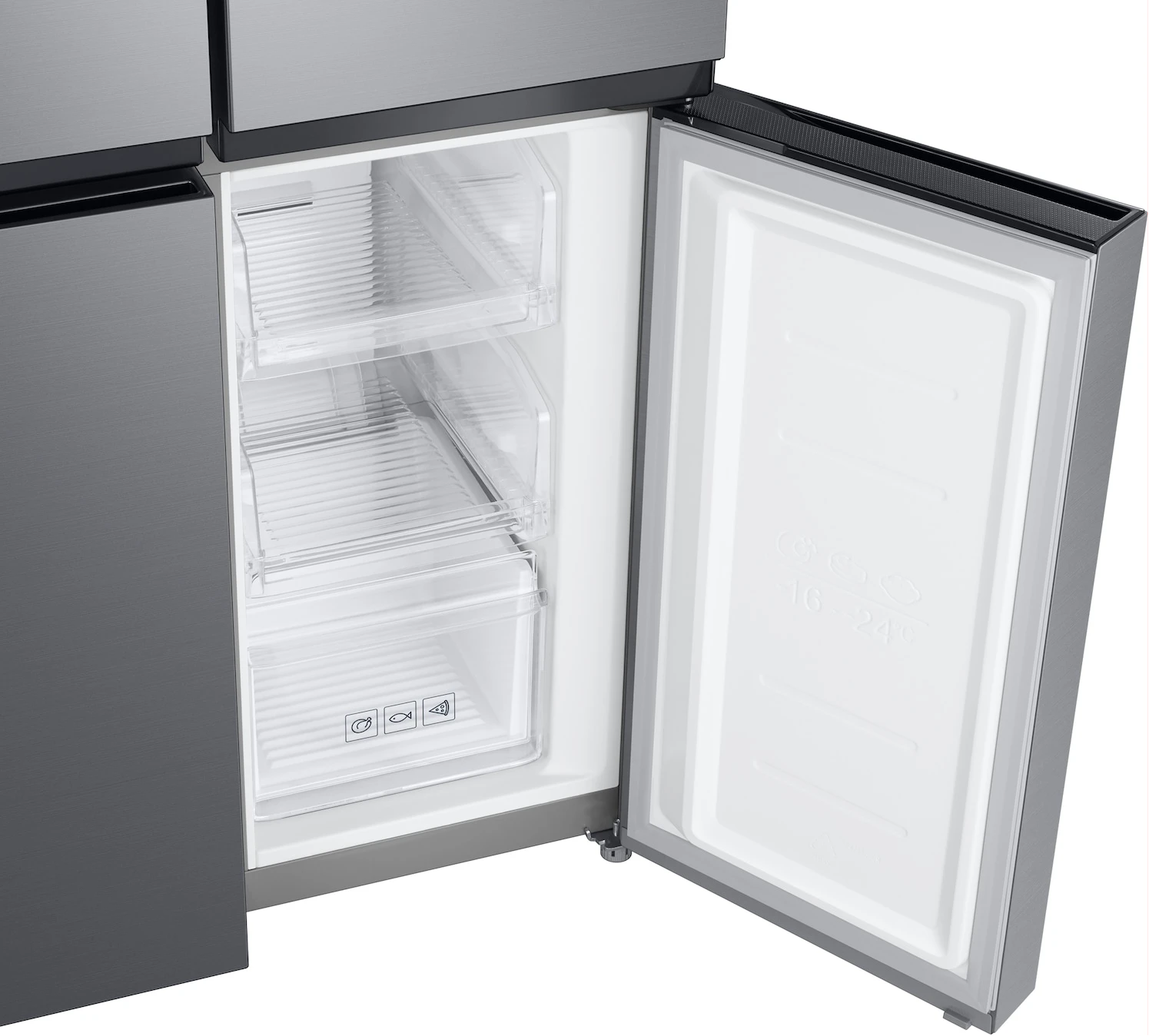 Features Key Features: Twin Cooling Plus: Optimize the temperature and humidity in the fridge and freezer using independent cooling Digital Inverter Technology: Less noise and greater energy efficiency Fresh Zone: Preserve the freshness and flavor of fruit and vegetables for longer Net for Freezer (Liter): 159 ℓ Net for Fridge (Liter): 329 ℓ Net Total (Liter): 488 ℓ No Frost: Yes Cooling Type: Twin Cooling Plus Colour: Gentle Silver Matt Display Type: External Door Handle: Recess