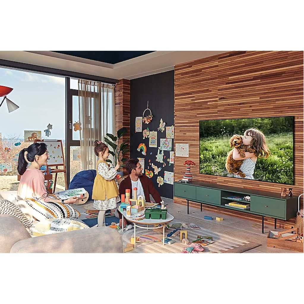 Samsung 55” QLED 4K Smart TV QA55Q60A, Dual LED, Quantum HDR, Lite Processor With Inbuilt Digital Receiver – Black. QLED TV. 55-inch TV. Dual LED TV. 100% Color Volume with Quantum Dot Built-in Free to air decoder. Optimized backlight color tone for enhanced contrast. Quantum HDR brings out the detail and contrast. Samsung’s powerful processor optimizes sound quality according to the viewing content. A virtual sound that tracks the action. Adaptive sound has audio scenic intelligence that optimizes sound based on real-time scene analysis by content type. Mind-blowing slim design that you’ve never seen before in this category, making your TV blend into the wall seamlessly. Adjustable TV Stands. Super ultrawide Game View & game bar. Ambient mode. Series 6. Resolution : 3,840 x 2,160. Supreme UHD Dimming. Dolby Digital plus Audio. 2ch speakers. Bluetooth. 3 HDMI ports. 2 USB Ports. Ethernet port. WifI Built-in. 1-year manufacturer warranty.