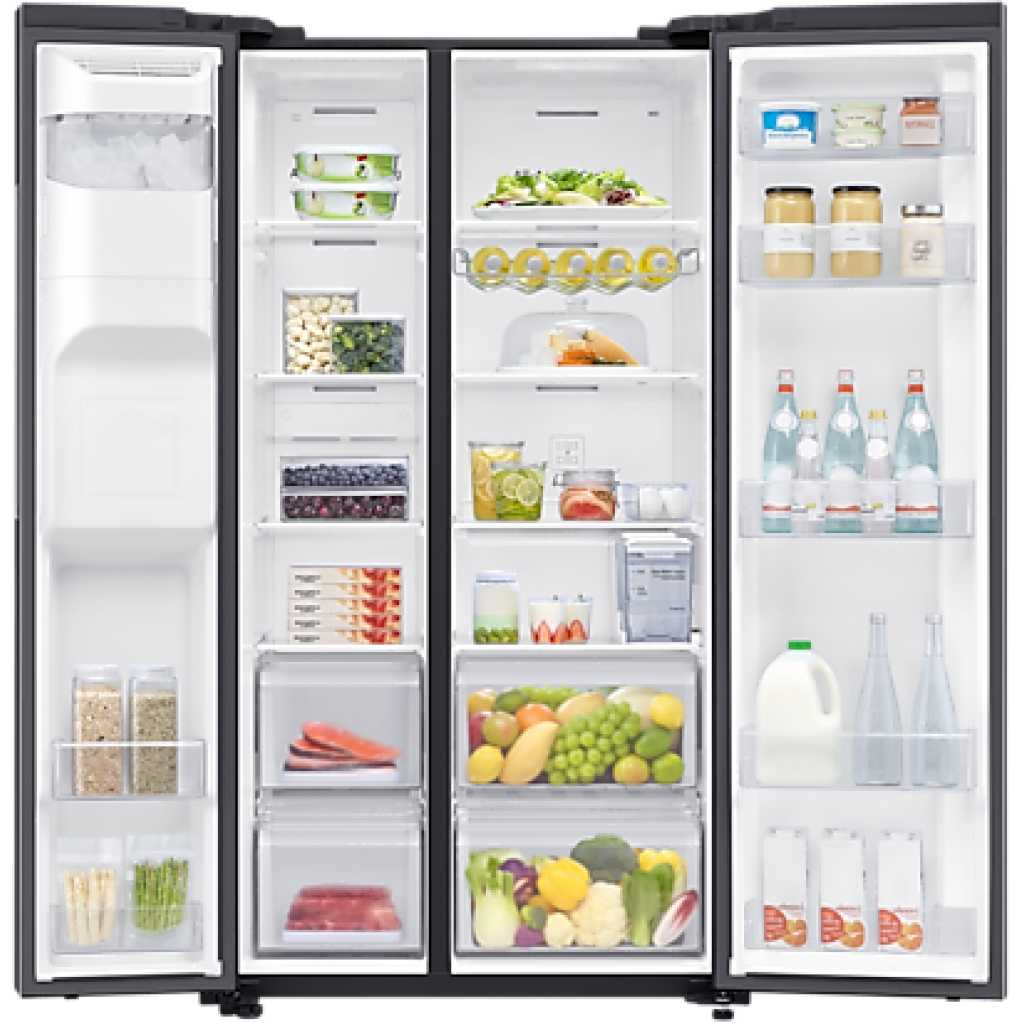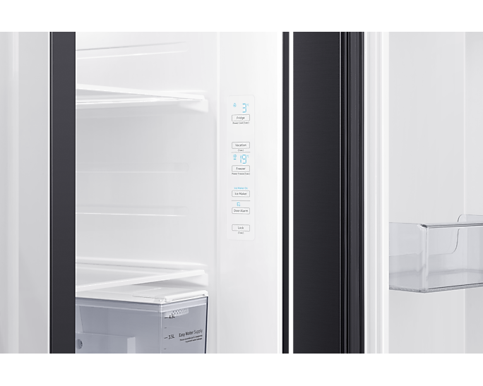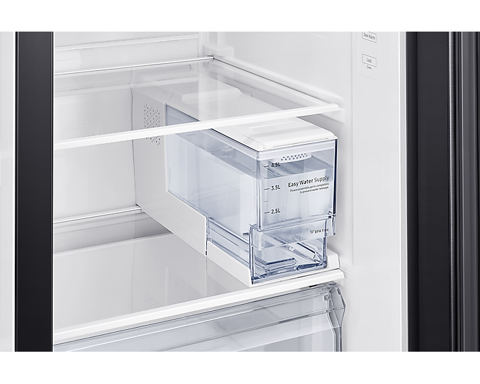 Key Features: Samsung 635-Litres Fridge RS64R5311B4 |Side by Side Fridge, Non-plumbed Water & Ice dispenser, SpaceMax Technology – Gentle Black. SpaceMax™ Technology Auto Icemaker Digital Inverter More fresh space inside, More seamless style outside Always fresh food, wherever it is Last longer with up to 50% energy saving Perfectly harmonious and stylish design Fast cooling and freezing on demand Easily install anywhere without plumbing Enjoy more ice & more storage space Neatly store more of your favorite wine Odor eliminator maintains natural flavor Easily store more vegetables & fruit