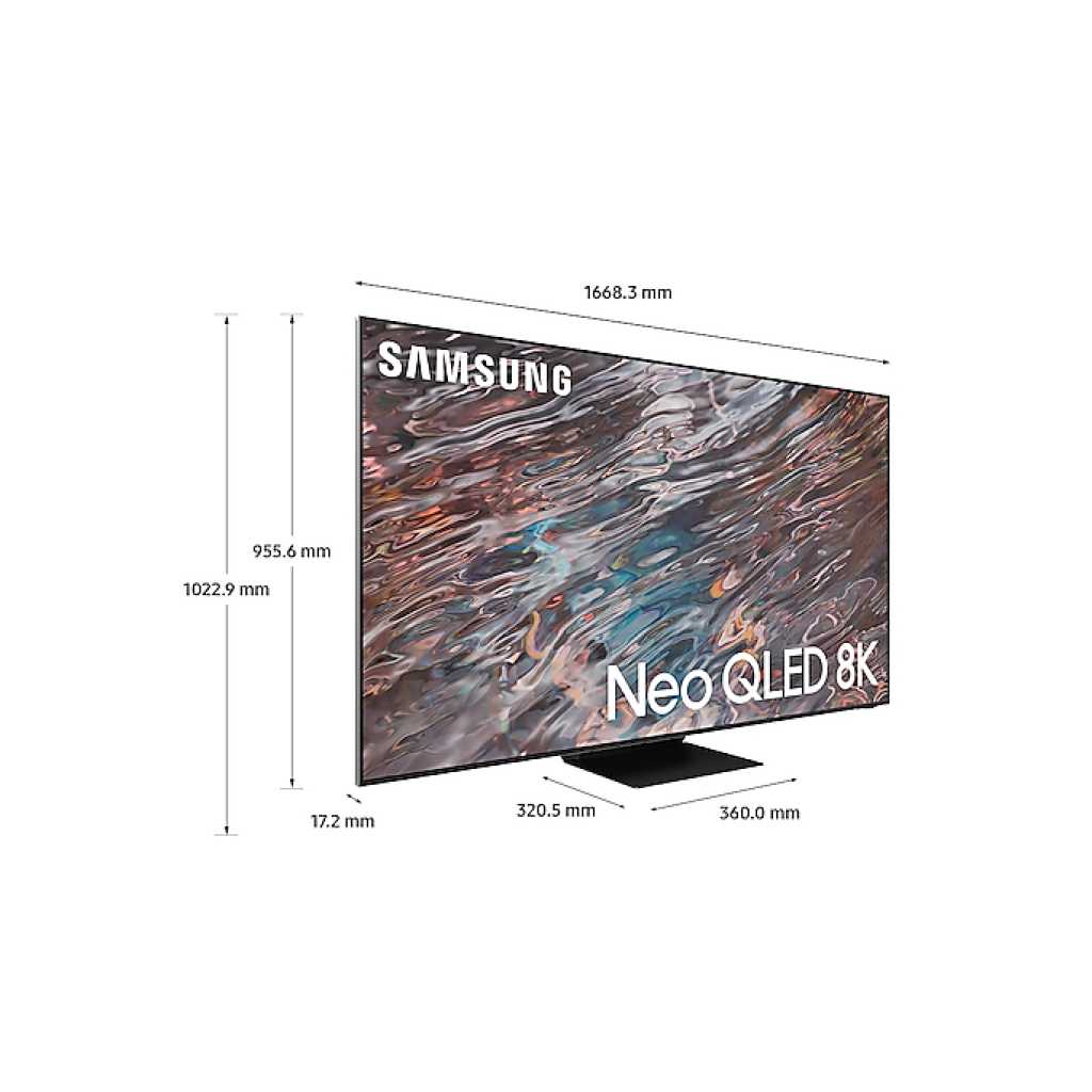 Samsung 65 Inch Neo QLED 8K Smart TV QA65QN800A, AI Upscaling, Infinity One Design, Dolby Atmos experience With inbuilt Digital Reciever – Black. Get one step closer to reality with Real 8K Resolution & AI Upscaling*. Picture quality in a league of its own with Quantum Matrix Technology Pro. Impossibly slim profile with Infinity One Design. Unleash vivid colour with Quantum Dot. EXTRAORDINARY CONTRAST: See how deep blacks and bright whites make the difference with Mini LEDS & Quantum Matrix Technology Pro 8K UPSCALING: Whatever you watch, the Neo Quantum Processor 8K automatically converts your content to stunning 8K* INFINITY ONE DESIGN: Complement your décor with a Smart TV that features elegant, modern lines and an ultra-slim profile SOUND THAT MOVES YOU: Discover TV audio that follows the action on screen with Object Tracking Sound+ BREATHTAKING COLORS: Enjoy a mesmerizing, realistic picture with spectacular clarity with Quantum HDR 32X ALEXA BUILT-IN: Just ask Alexa, Google Assistant or Bixby to open your apps, change channels, control smart home devices and more SMART TV POWERED BY TIZEN: Access your favorite apps, streaming services and smart home devices right from your TV 1-year manufacturer warranty. Experience the world like you’ve never seen it before with a revolutionary Samsung Neo QLED 8K Smart TV. Get fully immersed and take in the beauty of every frame with 33 million pixels that provide an incredible sense of depth and clarity, all with four times the resolution of 4K.* You’ll enjoy all you watch in crisp 8K, no matter how the source was created. AI as machine-based deep-learning completely analyzes every picture scene by scene, always adapting to optimize the image for you in real time.* You’ll see unimaginable details in the deep darks and brilliant whites delivered by an expansive array of Quantum Mini LEDs that dim and brighten, all precisely controlled by Quantum Matrix Technology Pro—equipped with 1.5X more lighting zones than standard Quantum Matrix Technology. With HDR 32X, those details come to life with ultra rich color and contrast. And whatever you enjoy on this Samsung television 75 inch, the anti-glare TV screen gives you the best view from any seat. Plus, you can conveniently access apps and streaming services like Netflix, Prime Video and Google TV, as well connect to your smart home and SmartThings, right on your TV. And it’s all easy to get to with Bixby, Alexa and Google Assistant built in. With its ultra-slim and minimalistic Infinity One design, the QN800A was made to complement any room of your home. The QN75QN800AFXZA Samsung TV 75 inch model measures 12.6 x 65.7 x 40.3 inches. It includes an Attachable Slim One Connect that connects all your devices to the thin TV with one simple box, along with a power cable, SolarCell remote controller and Samsung smart control. Add the Q Series sound bar for deep, immersive surround sound. *Upscales to 8K Resolution. Resulting picture may vary based on source content.
