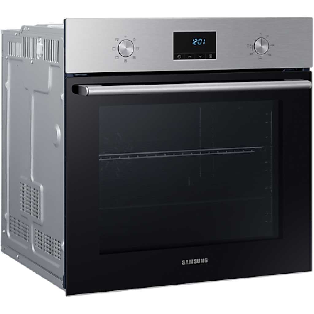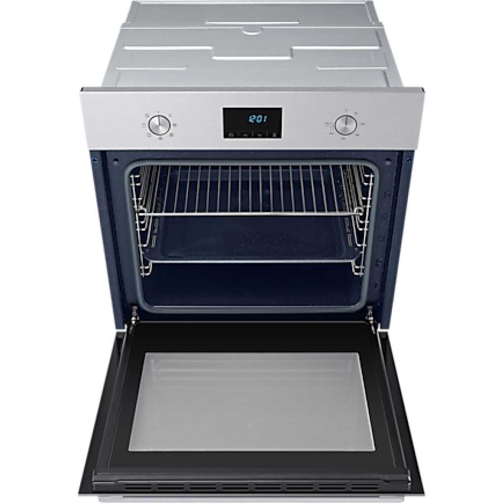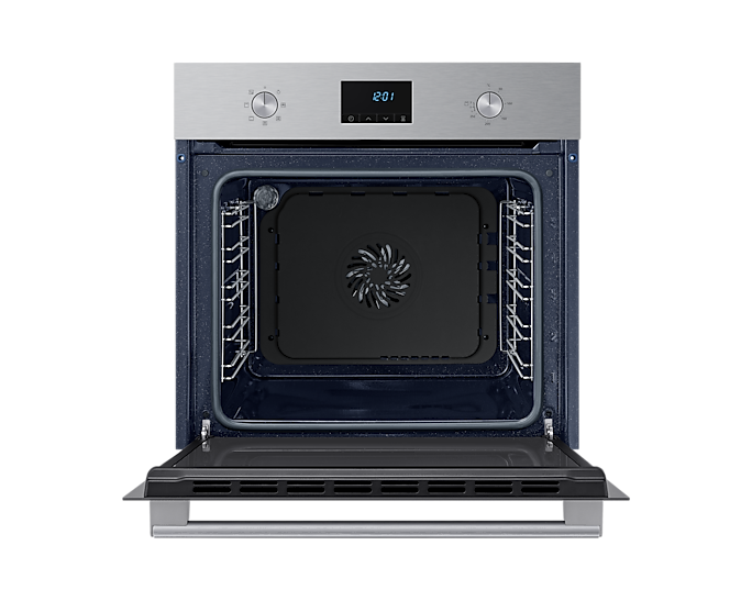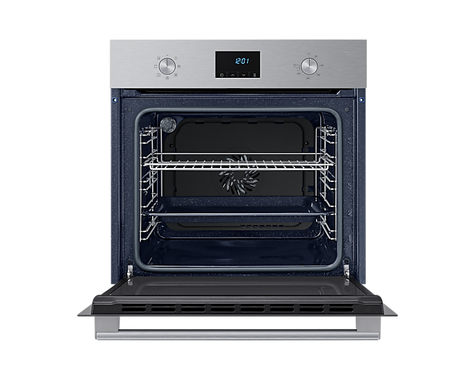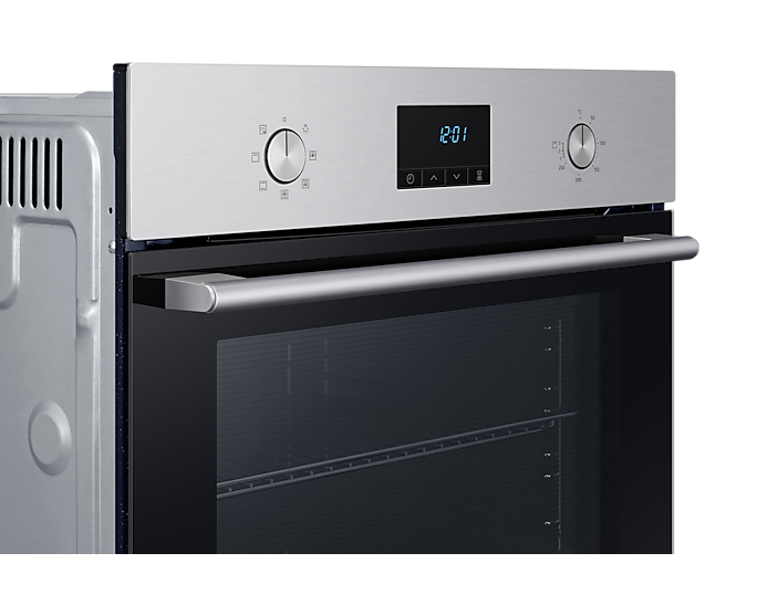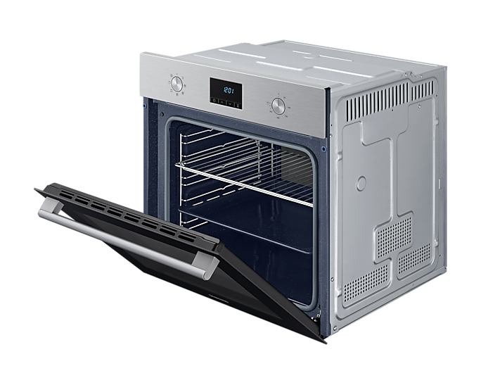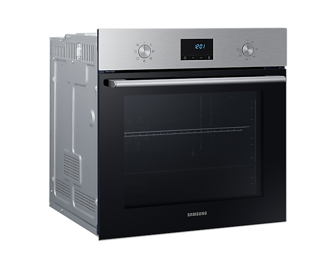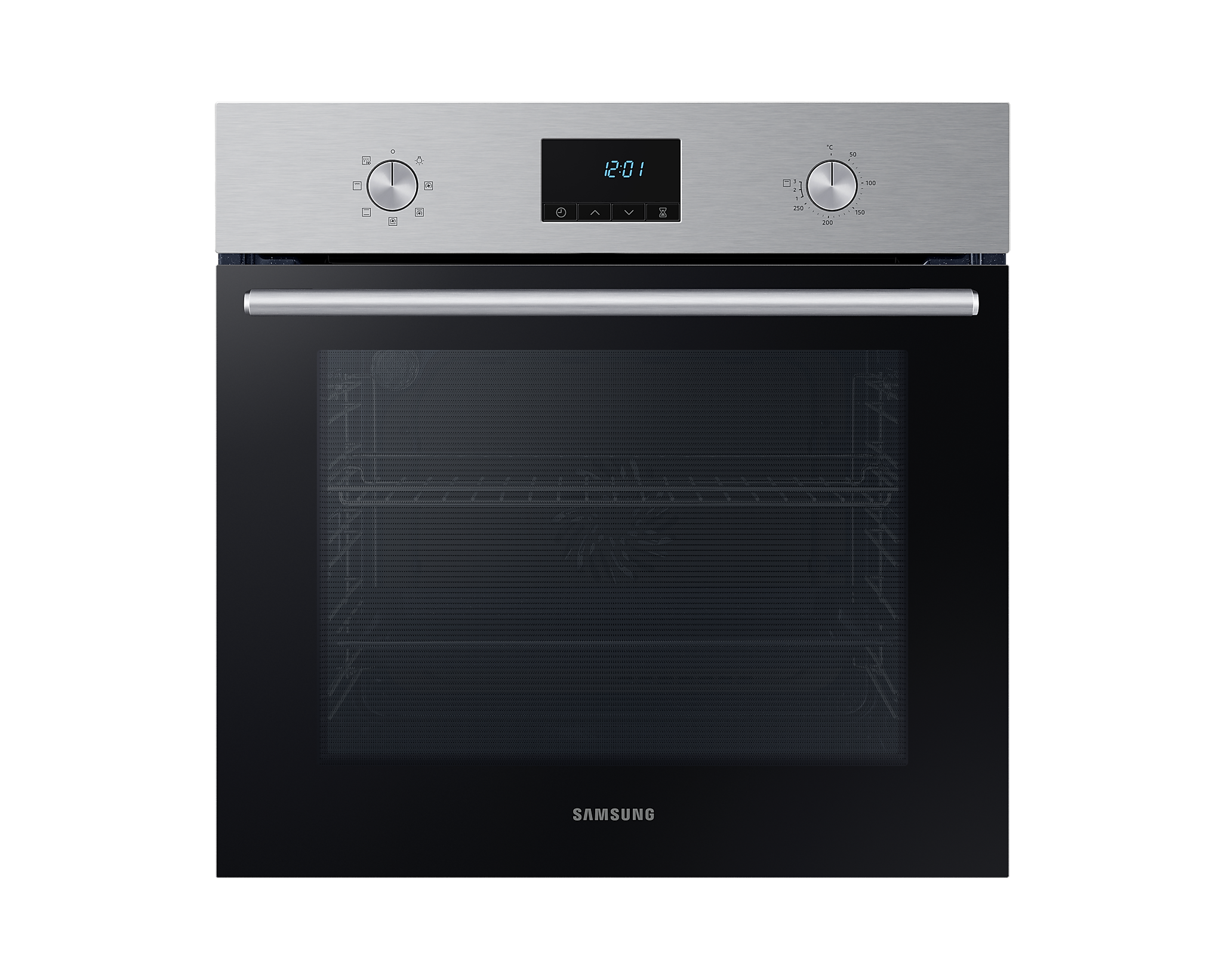 Samsung 68 Litres Built-In Electric Oven 60cm NV68A1140BK; Catalytic Cleaning, Oven Fan & Grill – Black Introducing the Samsung NV68A1140BK Built-In Electric Catalytic Oven in Black Glass, a versatile and stylish addition to your kitchen. With a spacious 68-litre capacity, you’ll have ample room to cook your favourite dishes. True convection technology ensures even and efficient cooking results every time. Stay in control with the ice blue LED display and electronic programmable timer, allowing you to set precise cooking times for your convenience. The rotary oven and touch controls make operation effortless and intuitive. Cleaning up after cooking is a breeze, thanks to the catalytic cleaning system that absorbs and breaks down grease and residue. The triple-glazed door not only adds an extra layer of insulation but also ensures safety and energy efficiency. This product includes a 2 Year Warranty via redemption* to give you the reassurance you need when buying a new appliance. Features Colour: Black glass True convection Ice blue LED display Electronic programmable timer Rotary oven and touch Catalytic cleaning system Triple glazed door Surge protection Technical Specifications Installation type: built-in or built under Temperature range (°C): 50-250 Power (kW): 2.5 Net capacity (L): 68 Energy class: A Net/gross weight (kg): 28.5 / 32.5 Product dimensions (mm): W595 x D570 x H595 Number of grills: 1 Enjoy even more choiceof delicious food Cook more evenly and flexibly, and clean with less hassle. True Convection ensures a constant heat in every corner, so everything is cooked effectively. A self-cleaning system* keeps the inside of the oven neat and clean. And you can cook many more or much larger dishes with a massive 68L oven. Key Features: Samsung 68 Litres Built-In Electric Oven 60cm NV68A1140BK; Catalytic Cleaning, Oven Fan & Grill – Black. The Samsung Single Fan Oven is a versatile and efficient appliance that offers a range of cooking functions to meet your culinary needs. Its unique Single Fan technology ensures even heat distribution throughout the oven cavity, resulting in consistent and delicious cooking results. Cleaning the oven is made easier with its catalytic cleaning feature. The catalytic liners absorb and break down grease and food residues, minimizing the need for manual scrubbing. With safety in mind, the Samsung NV68A1140BS Single Fan Oven features triple-glazed doors to keep the exterior cool to touch, a child lock function to prevent accidental operation, and an auto shut-off feature for added peace of mind. What’s in the box: Samsung Single Fan Oven with Catalytic Cleaning, Built-in Oven, Dimensions: 59.5 x 59.5 x 57 cm, Weight: 31.4 kg, Colour: Stainless Steel, NV68A1140BS