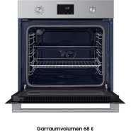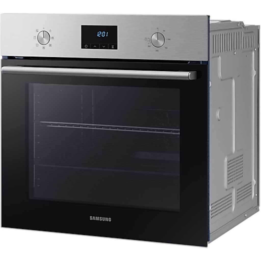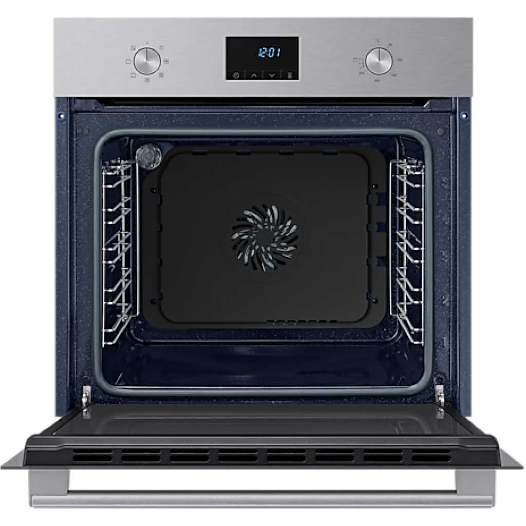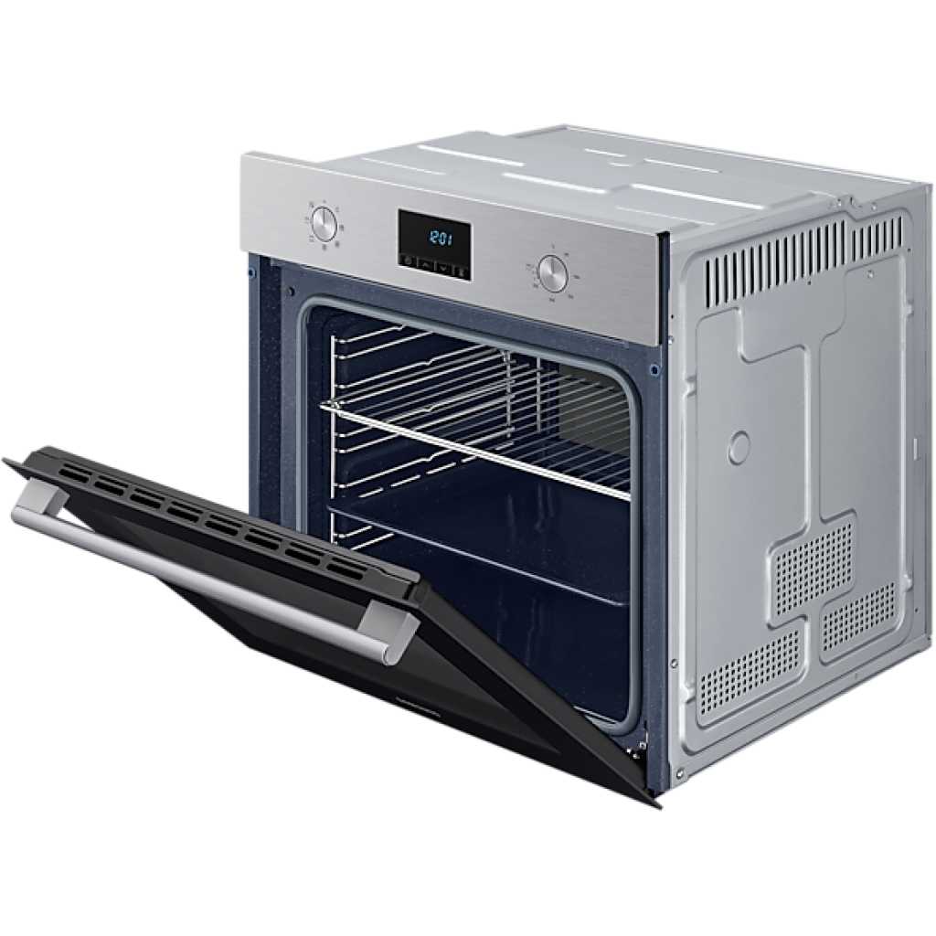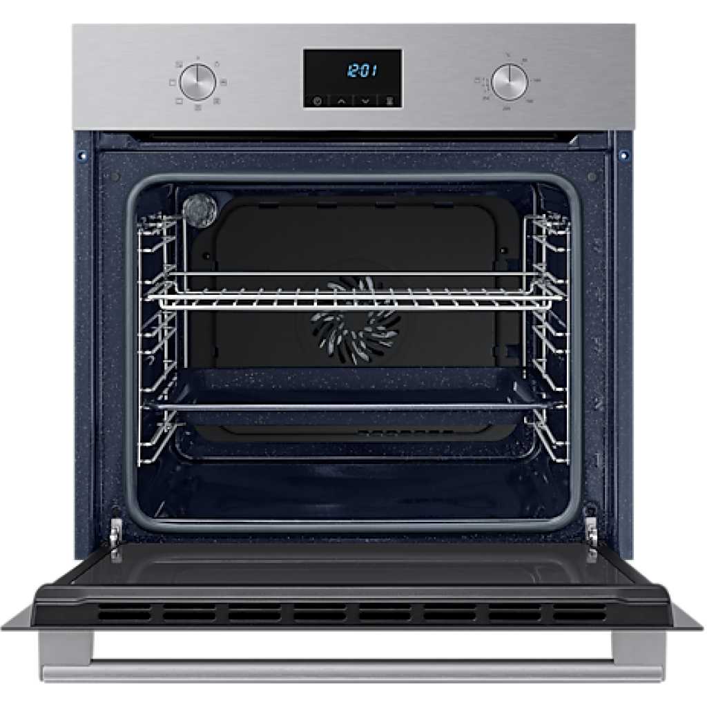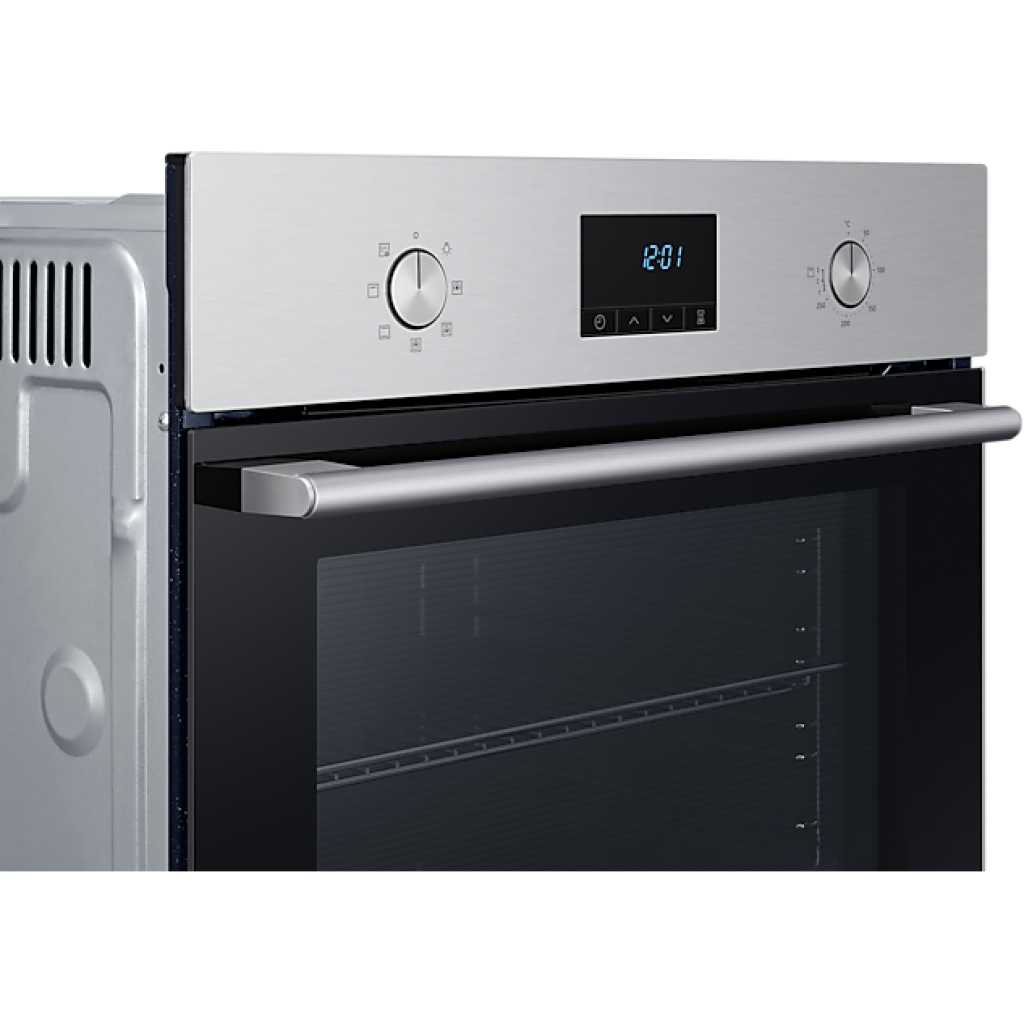 Samsung 68 Litres Built-In Electric Oven 60cm NV68A1140BK; Catalytic Cleaning, Oven Fan & Grill – Black Introducing the Samsung NV68A1140BK Built-In Electric Catalytic Oven in Black Glass, a versatile and stylish addition to your kitchen. With a spacious 68-litre capacity, you’ll have ample room to cook your favourite dishes. True convection technology ensures even and efficient cooking results every time. Stay in control with the ice blue LED display and electronic programmable timer, allowing you to set precise cooking times for your convenience. The rotary oven and touch controls make operation effortless and intuitive. Cleaning up after cooking is a breeze, thanks to the catalytic cleaning system that absorbs and breaks down grease and residue. The triple-glazed door not only adds an extra layer of insulation but also ensures safety and energy efficiency. This product includes a 2 Year Warranty via redemption* to give you the reassurance you need when buying a new appliance. Features Colour: Black glass True convection Ice blue LED display Electronic programmable timer Rotary oven and touch Catalytic cleaning system Triple glazed door Surge protection Technical Specifications Installation type: built-in or built under Temperature range (°C): 50-250 Power (kW): 2.5 Net capacity (L): 68 Energy class: A Net/gross weight (kg): 28.5 / 32.5 Product dimensions (mm): W595 x D570 x H595 Number of grills: 1 Enjoy even more choiceof delicious food Cook more evenly and flexibly, and clean with less hassle. True Convection ensures a constant heat in every corner, so everything is cooked effectively. A self-cleaning system* keeps the inside of the oven neat and clean. And you can cook many more or much larger dishes with a massive 68L oven. Key Features: Samsung 68 Litres Built-In Electric Oven 60cm NV68A1140BK; Catalytic Cleaning, Oven Fan & Grill – Black. The Samsung Single Fan Oven is a versatile and efficient appliance that offers a range of cooking functions to meet your culinary needs. Its unique Single Fan technology ensures even heat distribution throughout the oven cavity, resulting in consistent and delicious cooking results. Cleaning the oven is made easier with its catalytic cleaning feature. The catalytic liners absorb and break down grease and food residues, minimizing the need for manual scrubbing. With safety in mind, the Samsung NV68A1140BS Single Fan Oven features triple-glazed doors to keep the exterior cool to touch, a child lock function to prevent accidental operation, and an auto shut-off feature for added peace of mind. What’s in the box: Samsung Single Fan Oven with Catalytic Cleaning, Built-in Oven, Dimensions: 59.5 x 59.5 x 57 cm, Weight: 31.4 kg, Colour: Stainless Steel, NV68A1140BS