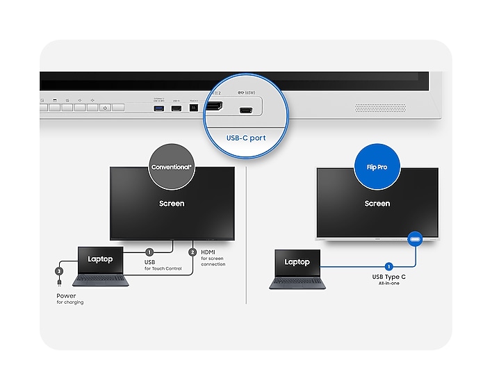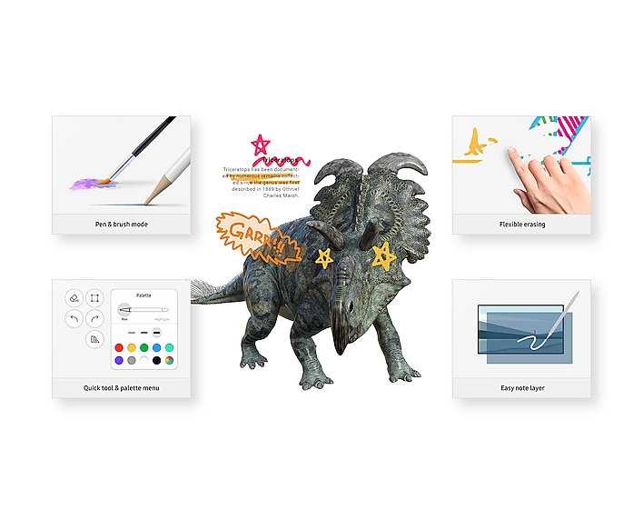 Key Features: Samsung WMB Series 4K UHD Flip Pro Interactive Display | LED Touchscreen. Drawing experience with 2,048 points of pressure with industry-best latency at just 26ms. A real-world writing experience with pen and brush mode, quick tool and palette. Multiple connectivity including HDMI, USB, USB Type-C, DP and easy screen sharing via wireless. Engaging learning experience with MimioConnect or Video call applications. 4K UHD 3840 x 2160 LED Panel 2 x HDMI, 4 x USB (3 x Front) 2048 Pressure Points & 26 ms Latency 20-Person Multi-Touch Adjustable Pen & Brush Modes Workspace Secured by Knox MagicINFO Remote Management Front Control Panel & Device Inputs Video Call Support with Optional Webcam Antimicrobial & Shatterproof Screen