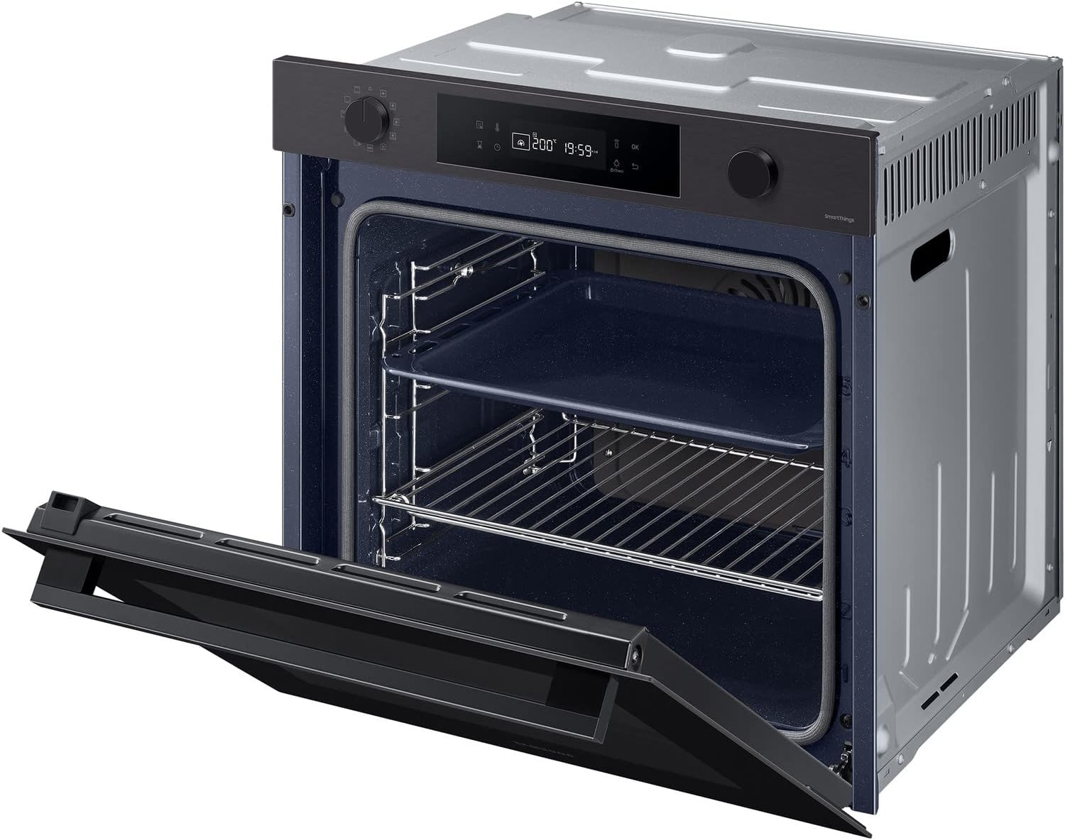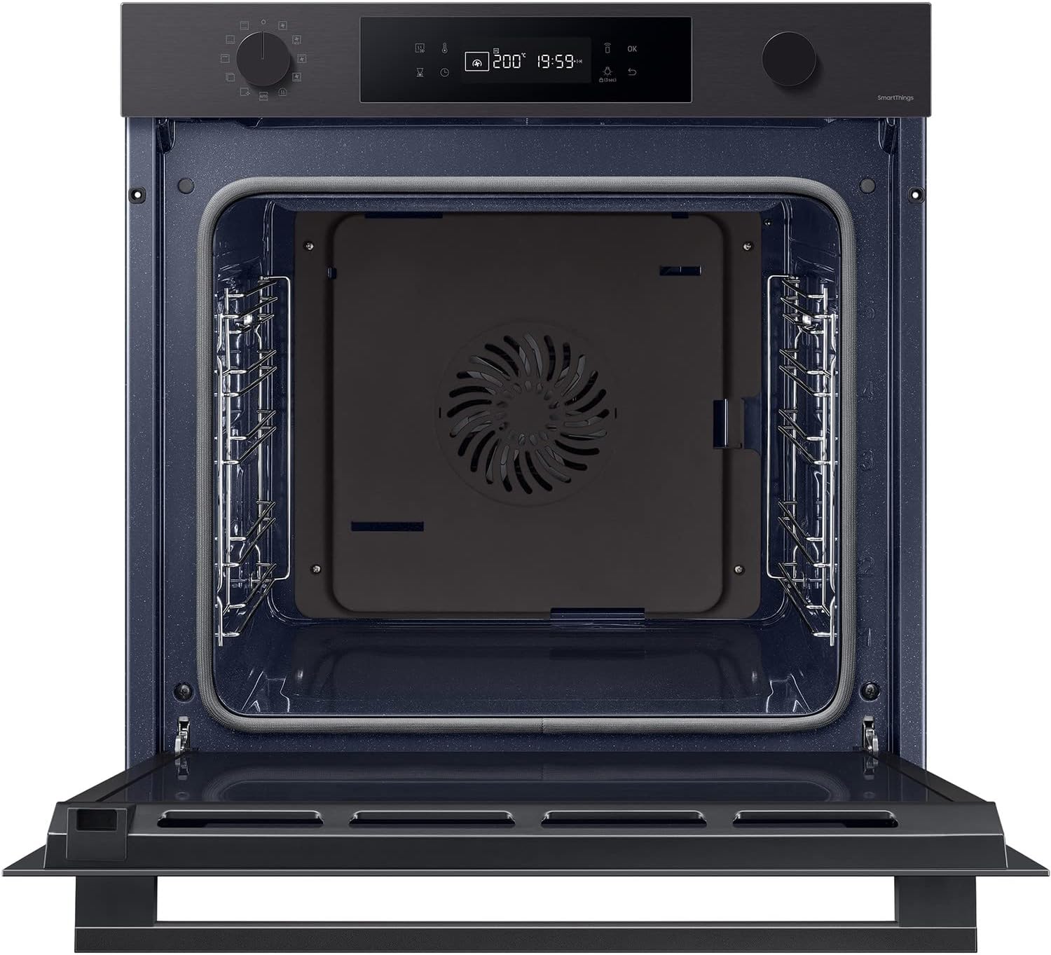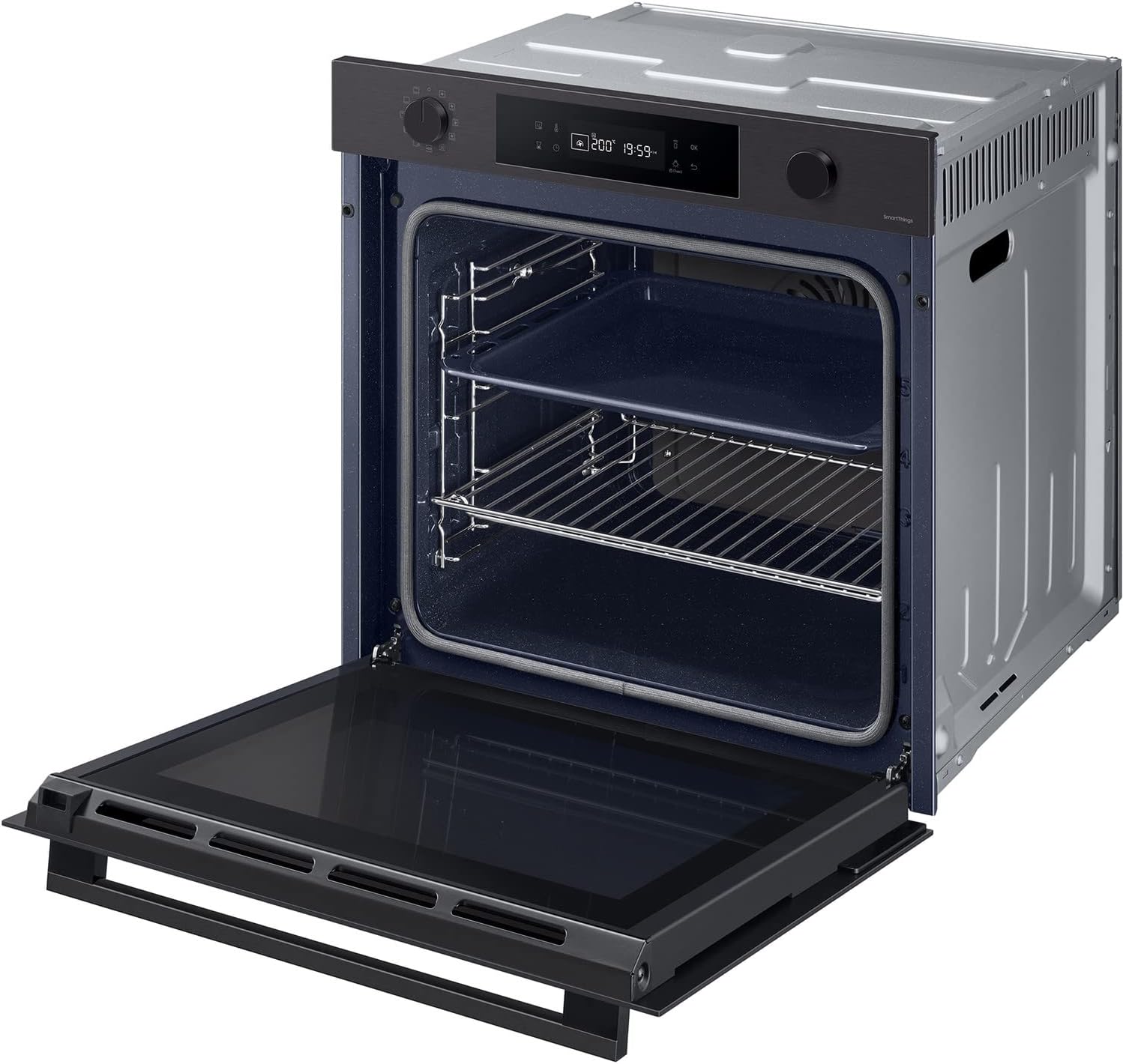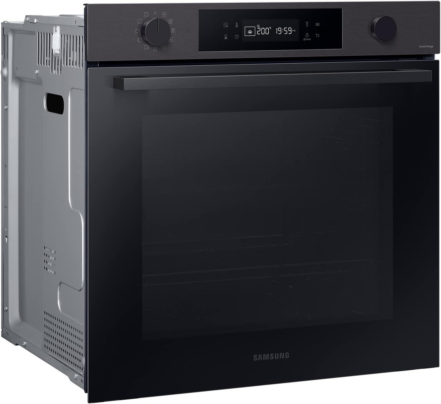 Key Features: SmartThings cooking – Samsung’s app guides you through the cooking process, creates weekly meal plans and gives you effortless grocery shopping NaturalSteam – use the water tray in this oven to create steam while cooking for food that juicy on the inside and crispy on the outside Catalytic cleaning uses a special coating that turns fat spits to dust for easier cleaning Very large 76 litre capacity Touch control LED display 20 Automatic programmes that can take the guesswork out of deciding which temperatures and settings you’ll need to use A+ energy efficiency while cooking in Eco Mode