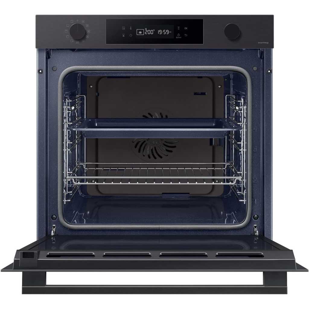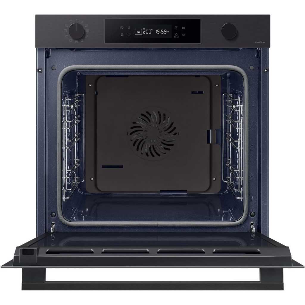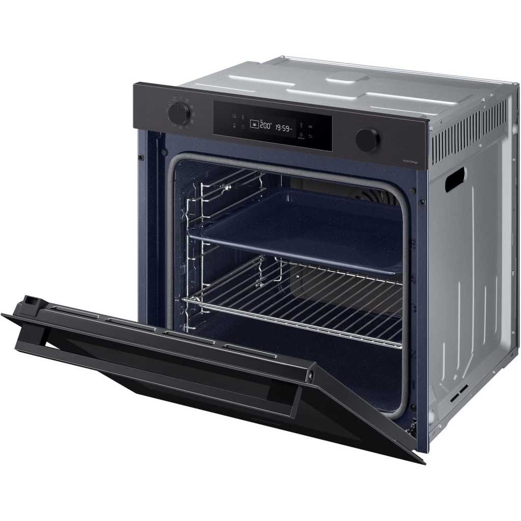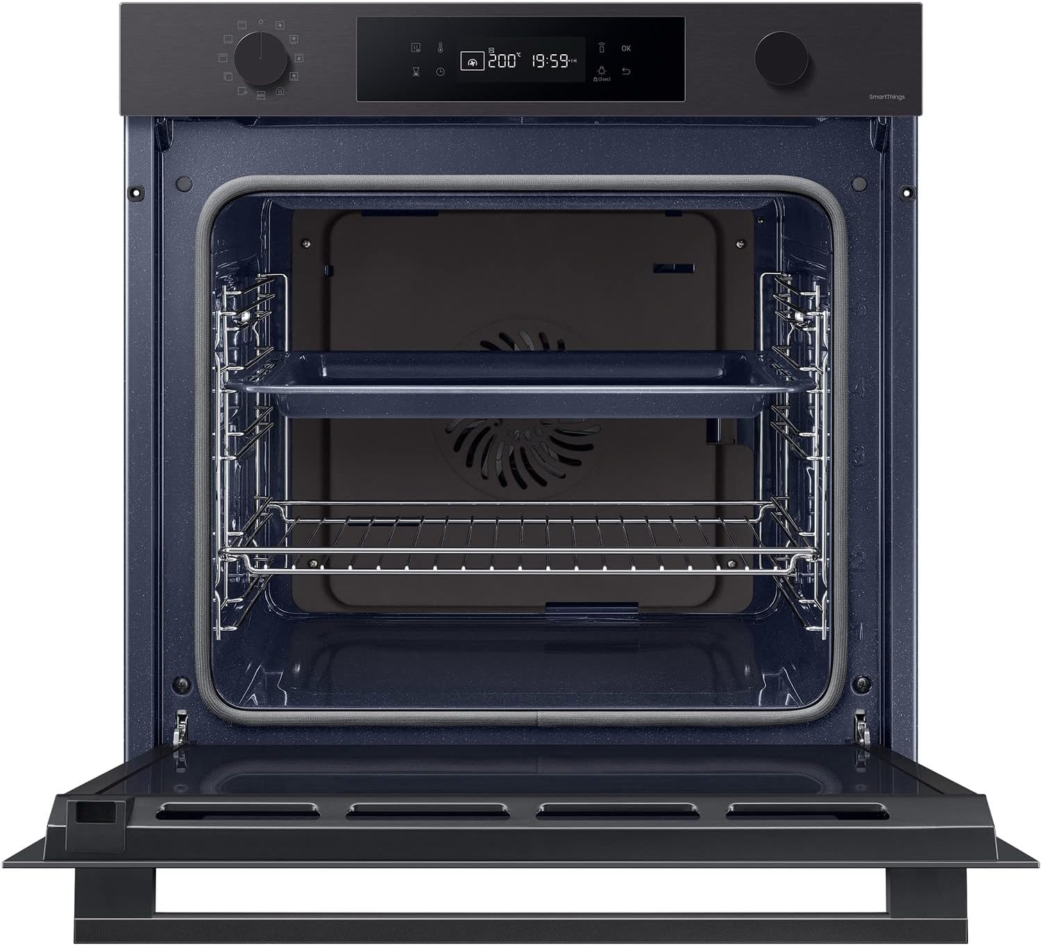 Key Features: SmartThings cooking – Samsung’s app guides you through the cooking process, creates weekly meal plans and gives you effortless grocery shopping NaturalSteam – use the water tray in this oven to create steam while cooking for food that juicy on the inside and crispy on the outside Catalytic cleaning uses a special coating that turns fat spits to dust for easier cleaning Very large 76 litre capacity Touch control LED display 20 Automatic programmes that can take the guesswork out of deciding which temperatures and settings you’ll need to use A+ energy efficiency while cooking in Eco Mode