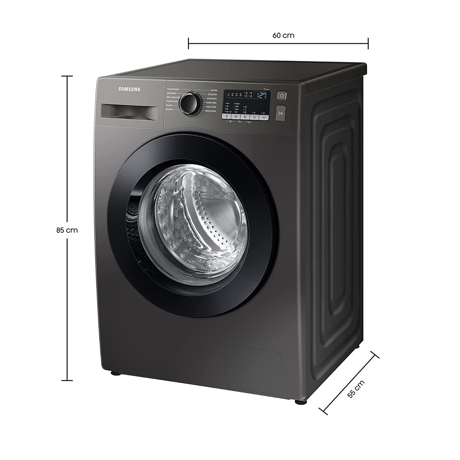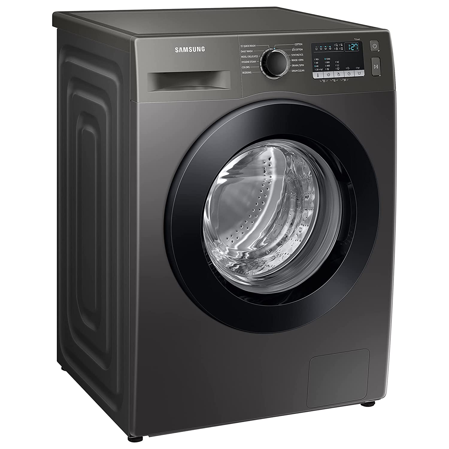 Key Features: Samsung 7.0Kg Fully-Automatic Front Loading Washing Machine WW70T4020CX; 1200 RPM, Steam Wash – Inox. Fully-automatic front load washing machine: Best Wash Quality, Energy and Water efficient Capacity 7.0 KG: Suitable for families with 3 to 4 members Warranty-3 Years on Product and 10 Years on Motor 1200 RPM Higher spin speeds help in faster drying Number of wash programs -12 Capacity 7 Kilograms Colour grey Brand Samsung Special Feature Child lock, Digital Inverter Technology, Super Speed, 15′ Quick Wash, 2nd Diamond Drum Cycle Options Tub Clean, Quick Wash Maximum Rotational Speed 1200 RPM Access Location Front Load Item Weight 65000 Grams Annual Energy Consumption 200 Kilowatt Hours Per Year Included Components 1 machine, 1 outlet pipe, clamps& bolts, installation guide