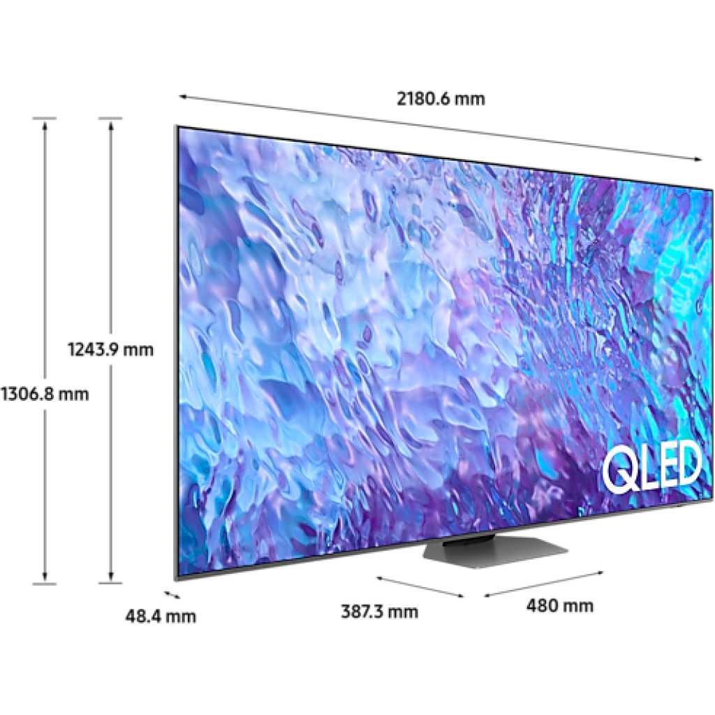Samsung 98-inch Ultra HD 4K Smart QLED TV, Q80C (QA98Q80C). Direct Full Array Neural Quantum Processor 4K Real Depth Enhancer Smart Hub Supersize Picture Enhancer SuperSlim Design Quantum HDR+ Pantone Validated Eye Comfort Mode 100% Color Volume with Quantum Dot Dolby Atmos® OTS Lite Q-symphony Motion Xcelerator Turbo+ Free Sync Premium Pro Hue Sync SmartThings Samsung 98-inch Q80C QLED UHD Smart 4K TV QA98Q80C: The Ultimate Home Entertainment Experience The Samsung 98-inch Q80C QLED Smart 4K TV (QA98Q80C) is the perfect addition to any home entertainment setup, providing a cinematic experience in the comfort of your living room. With its massive 98-inch screen and cutting-edge technology, this TV is designed to immerse you in stunning visuals and crystal-clear sound. And, all while offering smart features that make your TV experience seamless and intuitive. Whether you’re watching movies, gaming, or browsing your favorite apps. the Samsung Q80C delivers unmatched performance, making it a top choice for anyone looking for a high quality, large screen television. A Supersized Display for a Supersized Experience The Samsung 98″ Q80C has a great feature: Supersize Picture Enhancer. It makes viewing super immersive. The huge 98″ screen puts you in the action. You’ll see everything clearly. Perfect for: Watching sports Action movies Gaming You won’t miss a thing!” Crystal Clear Picture with Quantum Dot Technology Thanks to Samsung’s advanced Quantum Dot Technology , the Q80C offers 100% Color Volume , providing vivid, life-like colors that pop off the screen. With Quantum HDR+ , you’ll experience deeper blacks, brighter whites, and incredible contrast that brings every scene to life. Whether you’re watching during the day or at night, the Real Depth Enhancer ensures that the images on the screen appear more realistic and three-dimensional. Powered by the Neural Quantum Processor 4K The Samsung QA98Q80C has a powerful brain: Neural Quantum Processor 4K. It makes all content look amazing: Upscales non-4K to near 4K Everything looks stunning on the big screen From older TV shows to the latest blockbuster movies, the Neural Quantum Processor delivers sharp, detailed images with incredible clarity. Designed for Comfort and Convenience The Samsung 98-inch Q80C QLED Smart 4K TV not only delivers breathtaking visuals but also prioritizes your comfort. With Eye Comfort Mode , the TV automatically adjusts brightness and color based on the time of day, reducing strain on your eyes during long viewing sessions. This feature is perfect for late-night movie marathons or binge-watching your favorite shows. In addition to eye comfort, the Super Slim Design of the Q80C ensures that it fits seamlessly into any living space. Its sleek, minimalistic look complements any room, whether you mount it on the wall or place it on a TV stand. Despite its massive size, the TV’s design is elegant and modern, making it a beautiful addition to your home. Immersive Sound with Dolby Atmos and OTS Lite Visuals are only part of the experience, and the Samsung 98-inch Q80C doesn’t disappoint when it comes to sound. With Dolby Atmos® and OTS Lite (Object Tracking Sound Lite) , the TV delivers immersive, cinematic sound that flows around you. You’ll hear every detail, from the softest whispers to the loudest explosions, with audio that tracks the movement on the screen, making you feel as though you’re part of the action. Additionally, the Q-Symphony feature allows the TV to sync seamlessly with compatible Samsung soundbars, providing an even more powerful and immersive audio experience. This feature ensures that the sound from your TV and soundbar is perfectly synchronized for rich, dynamic sound. Smart Features for a Smarter Experience The Samsung 98-inch Q80C QLED Smart TV is packed with smart features, that make your viewing experience more convenient and enjoyable. With Smart Hub , you can easily access all your favorite streaming services, apps, and content in one place. Whether you’re watching Netflix, browsing YouTube, or streaming music, everything is just a click away. The TV also features MultiView , allowing you to watch up to two videos at once. This is perfect for multitasking, such as keeping up with a sports game while browsing the web or watching a movie and checking social media simultaneously. Built-in Voice Assistant and SmartThings Integration Control your TV with ease using the Built-in Voice Assistant . Whether you prefer Bixby, Alexa, or Google Assistant, the Samsung Q80C gives you hands-free control over your entertainment. Change channels, search for content, or control other smart devices in your home with simple voice commands. Moreover, with SmartThings integration , your TV becomes the hub for your smart home. Control lights, cameras, and other smart devices directly from your TV screen, making your home smarter and more connected than ever before. Design for Gamers For gaming enthusiasts, the Samsung Q80C comes equipped with Motion Xcelerator Turbo+ and Free Sync Premium Pro . These features ensure that fast-paced action is displayed smoothly, with minimal lag or tearing, making it ideal for gamers who demand the best performance. Whether you’re playing the latest AAA titles or competing online. the Q80C provides a responsive, immersive gaming experience with stunning visuals. Sustainable and Energy-Efficient The Samsung QA98Q80C is not only powerful but also eco-friendly. , With AI Energy Mode , the TV optimizes energy consumption without compromising performance. It also includes a Solar Cell Remote , which charges using both sunlight and indoor lighting, reducing the need for disposable batteries and contributing to a greener environment. Enhanced Security with Samsung Knox Your privacy and security are also a priority with the Q80C . The TV is equipped with Samsung Knox , offering enhanced protection for your personal data and devices. You can enjoy your smart TV e