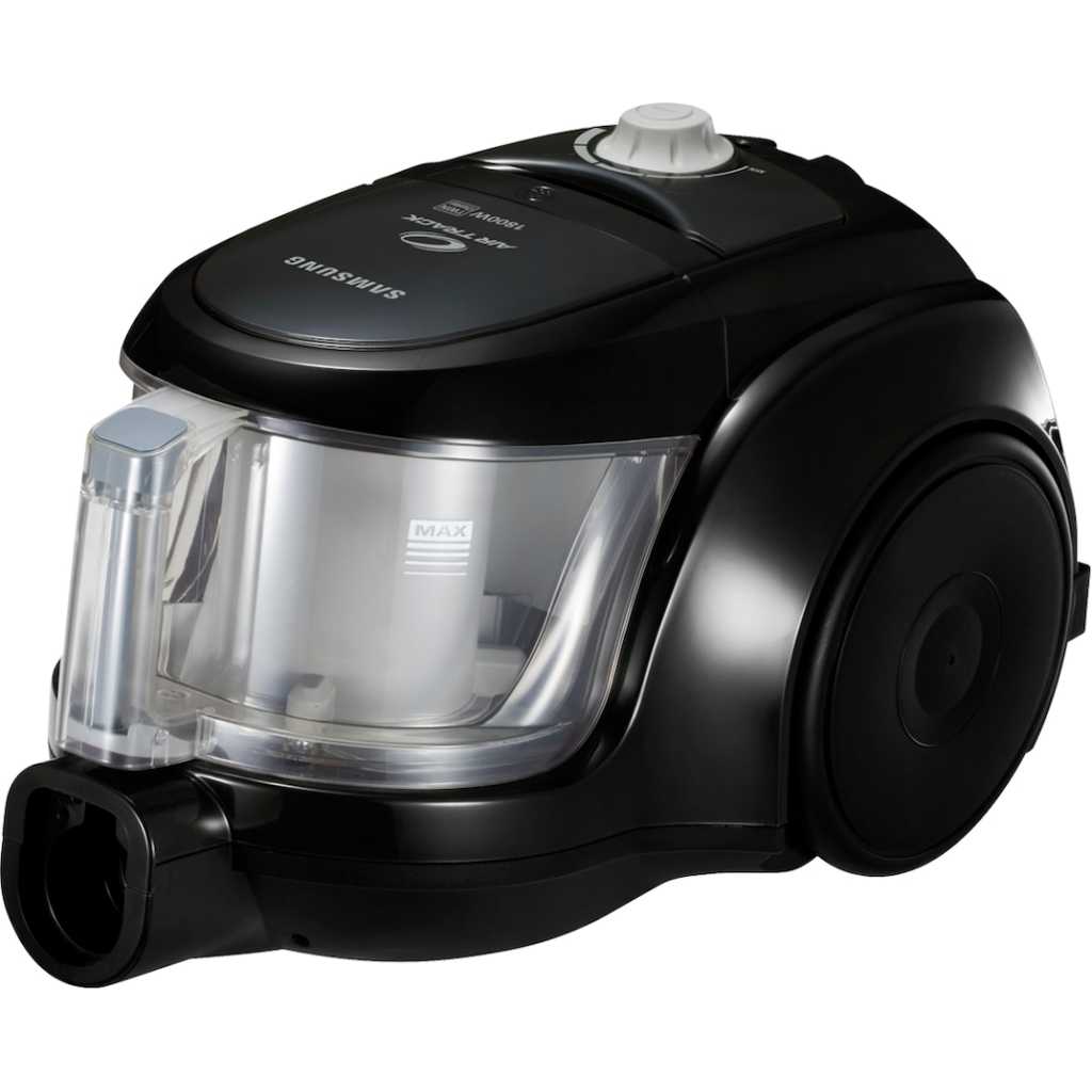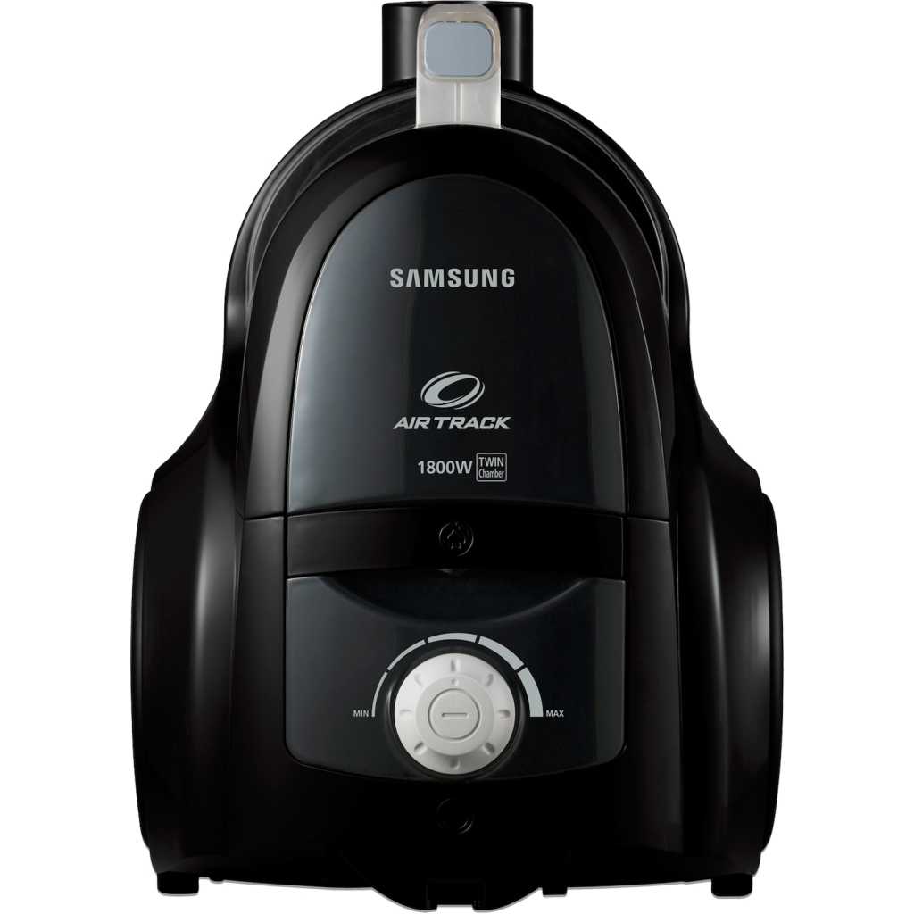 Key Features: Breathe easy. Literally. Samsung uses HEPA filtration to ensure the cleanest exhaust when you vacuum. By catching micro particles such as dust and other allergens like pollen and mold, HEPA filters deliver a much cleaner and healthier environment. In fact, the exhaust air quality and emission ability of our HEPA filters has been certified by the SLG, the Germany’s highly respected testing and certification institute. And some of our house mite and allergen filtration has been certified. Three simple steps are all you need. Emptying the bin after vacuuming can be the least pleasant part of your cleanup. Not with Samsung’s Easy-to-Empty dust bins. Three simple steps are all it take to finish the job. Just press a button, pull out the dust bin, and pour with a simple flick of your wrist. No hassle, no spills, just a cleaner room made easy. Two Chambers, Double the Clean. Samsung’s unique Twin Chamber System TM divides the normal dust chamber into two compartments, As the powerful suction circulates dust particles through the cyclonic air path of the inner chamber, the dirt and debris are separated from the air. As a result, the larger dust particles are filtered into the outer chamber until you’re ready to dispose of them