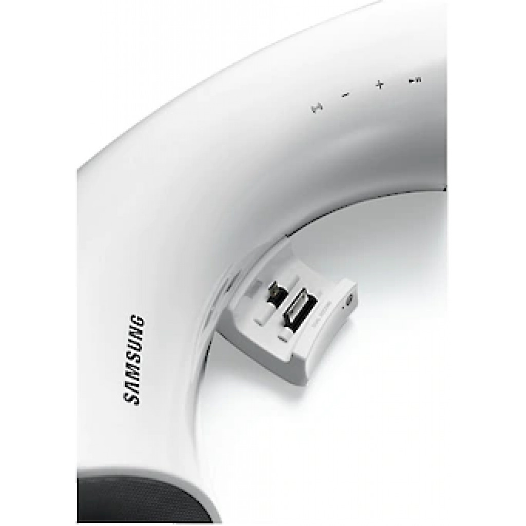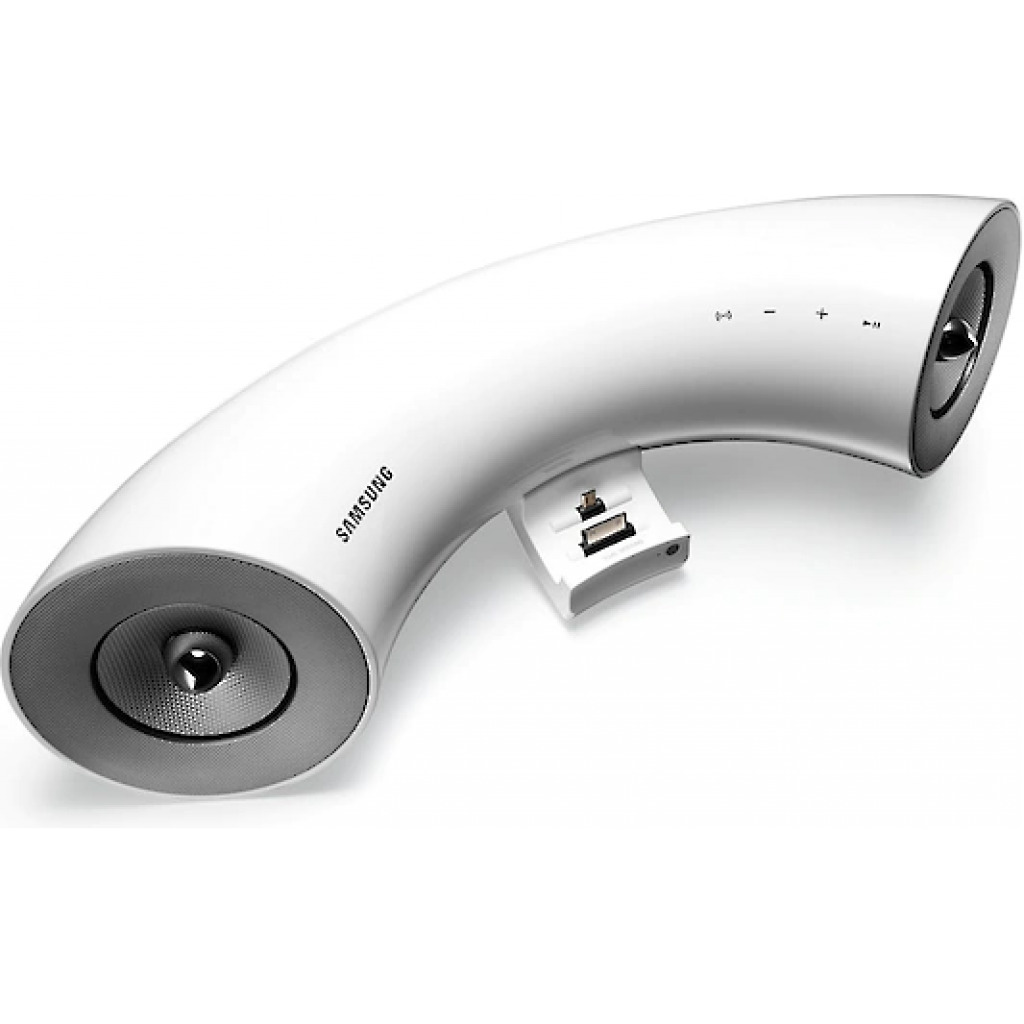 Key Features: Enjoy superior audio thanks to stylish horn design Get a streamlined and tidier look with hidden dock Play music wirelessly using Bluetooth connectivity Connect Samsung devices as well as Apple products