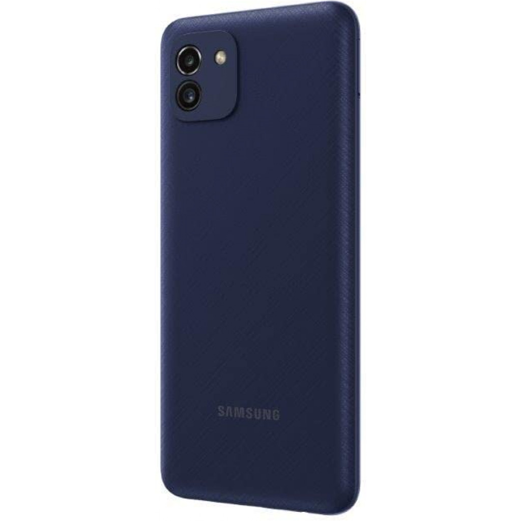 More display means more room to play Expand your view to the 6.5-inch Infinity-V Display of Galaxy A03 and see what you’ve been missing. And with HD+ technology, your everyday content looks sharp, crisp and clear. Looks as good as it feels Galaxy A03 combines streamlined design aesthetics with a cross-hatched light pattern and soft matte finish on the back. Refined curves make it comfortable to hold and provide easy screen navigation. Choose from Black, Blue or Red colors. Capture your world in all different ways with Dual Camera Galaxy A03 features a 48MP Main Camera for amazing everyday photos. You can even adjust the background and foreground focus with the 2MP Depth Camera’s Live Focus effects. Bring the focus to the front with Depth Camera The 2MP Depth Camera lets you adjust the depth of field in your photos. With a simple touch, you can easily fine-tune the background blur behind your subject for high-quality portrait shots that truly stand out. Share selfies that stand out with Front Camera With Live Focus effect added to the 5MP Front Camera, you can snap stunning selfies that feature more you and less background. Go beyond the ordinary listening experience with Dolby Atmos Simply plug in your earphones to be transported to the middle of your music and movies. With Dolby Atmos, you’ll hear sound that’s full, loud, and seems to surround you in the scene. Storage and speed you can count on The Galaxy A03 combines Octa-core processing power with up to 3GB/4GB of RAM for fast and efficient performance for the task at hand. Enjoy 32GB/64GB/128GB of internal storage or add even more space with up to 1TB microSD card. Keep going with a powerful battery Stay ahead of the day with a battery that won’t slow you down. The 5,000mAh (typical)¹ battery lets you keep doing what you do, for hours on end.