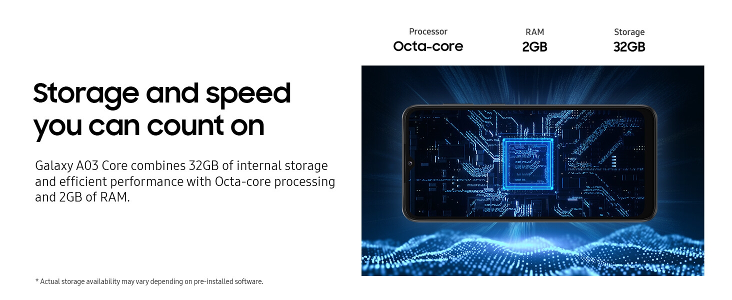 Galaxy A03 Core 6.5″ 2GB RAM 32GB ROM 8MP 5000mAh – Blue
