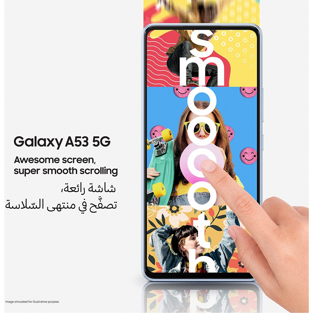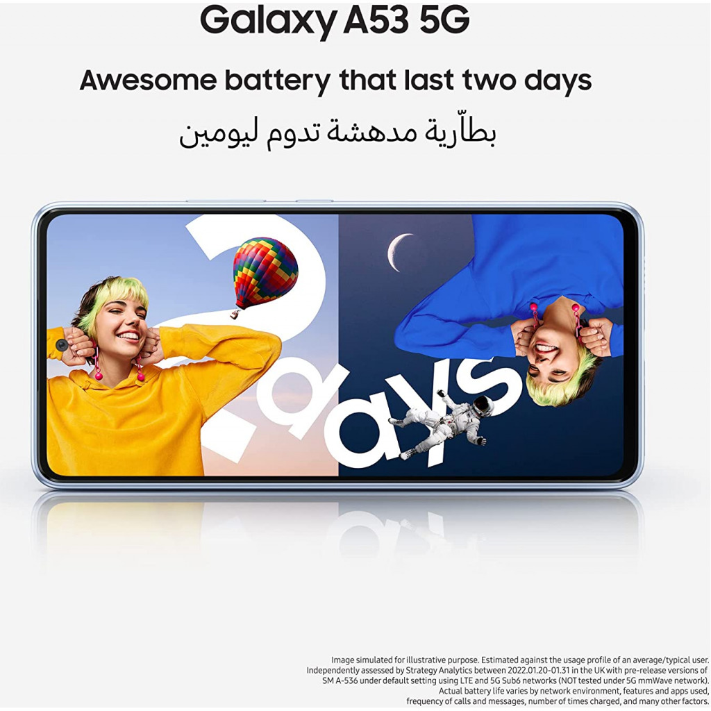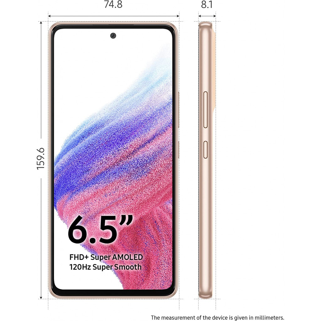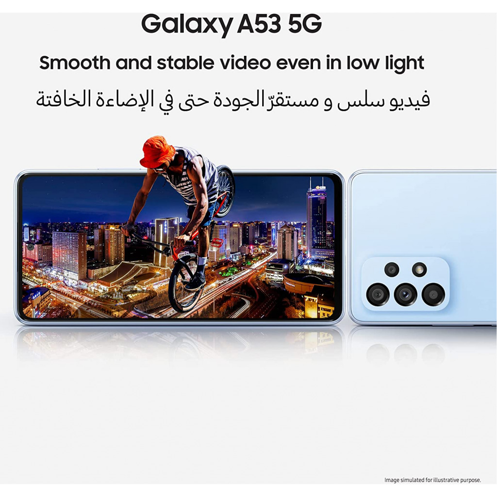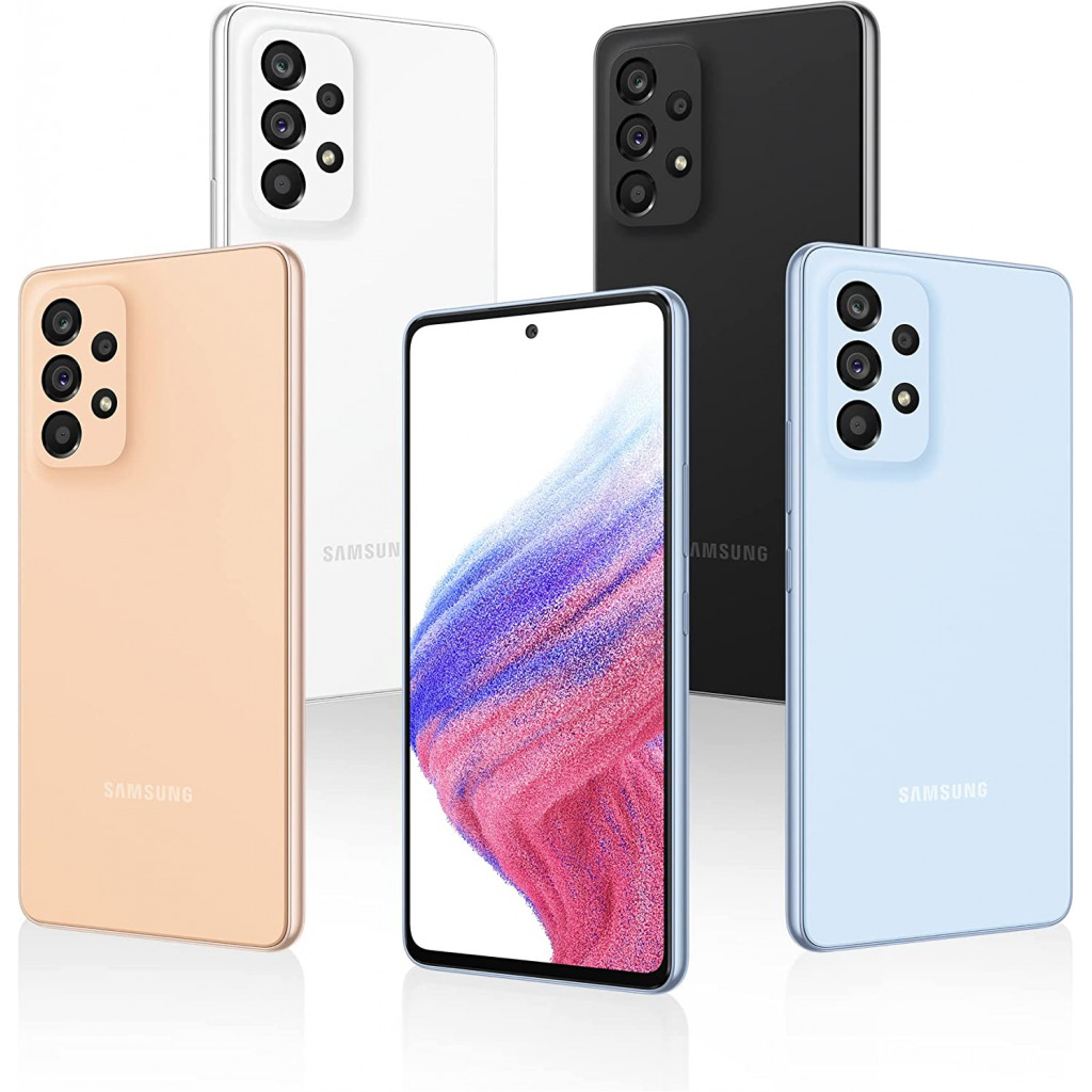 Our most awesome Galaxy A Series device yet, with a multi-lens camera for brilliant photos and video, smooth scrolling 120Hz display, and a fast-charging battery that just keeps going. Sharp, always-awesome camera Get crisper, clearer shots with the 64MP OIS Camera, expand your viewing angle with the Ultra-Wide Camera, customize focus with the Depth Camera and get closer to details with the Macro Camera. Super smooth scrolling Scroll, watch, and share with Galaxy’s 120Hz Super AMOLED display for a silky-smooth viewing experience. Outlast the competition A 5,000mAh (typical) battery gives you more time for streaming, sharing gaming on the go. Quickly revive your Galaxy with up to 25W Super Fast Charging and enable adaptive power saving to enhance the overall battery performance. Samsung Galaxy A53 Specifications BASIC INFO Brand Samsung Model Galaxy A53 Status Coming soon Release Date 2022, April BODY Dimensions – Weight – Colors Prism, Crush Black, White, Blue, Pink Body Material Front glass, plastic body SIMs Single SIM (Nano-SIM) or Dual SIM (Nano-SIM, dual stand-by) Water & Dust – DISPLAY Size 6.52 inches (87.4% screen-to-body ratio) Type AMOLED capacitive touchscreen, 16M colors Resolutions 1080 x 2400 pixels, 20:9 ratio PPI 405 ppi density Multi touch Yes NETWORKS 2G GSM 850 / 900 / 1800 / 1900 – SIM 1 & SIM 2 (dual-SIM model only) 3G HSDPA 850 / 900 / 1900 / 2100 HSDPA 850 / 900 / 1700(AWS) / 1900 / 2100 4G LTE 5G No Speed HSPA, LTE-A GPRS Yes EDGE Yes CAMERA Rear Triple 64 MP, f/2.0, (wide), 1/2″, 0.8µm, PDAF 12 MP, f/2.2, 13mm (ultrawide) 5 MP, f/2.4, (macro) 5 MP, f/2.2, depth sensor Features LED flash, panorama, HDR Videos 1080p@30/240fps Front 32 MP, f/2.2, 25mm (wide), 1/2.8″, 0.8µm HARDWARE OS Android 11 Chipset Exynos 1200 CPU Octa-core (4×2.3 GHz Cortex-A73 & 4×1.7 GHz Cortex-A53) GPU Mali-G72 MP3 RAM 6GB / 8GB Storage 128GB Card Slot microSD, up to 1TB BATTERY Type Li-Po Capacity 5000 mAh Removable Non-Removable Talk Time N/A Stand By N/A Fast Charging Fast battery charging 15W WirelessCharging – COMMONS Sound 3.5mm Audio Jeck, MP3, Cancelled Noice Sensors Fingerprint (Under-Display), accelerometer, gyro, proximity, barometer, compass Bluetooth 5.0, A2DP, LE GPS Yes, with dual-band A-GPS, GLONASS, BDS, GALILEO, QZSS USB 2.0, Type-C 1.0 reversible connector Wi Fi Wi-Fi 802.11 a/b/g/n/ac, dual-band, Wi-Fi Direct, hotspot NFC Yes