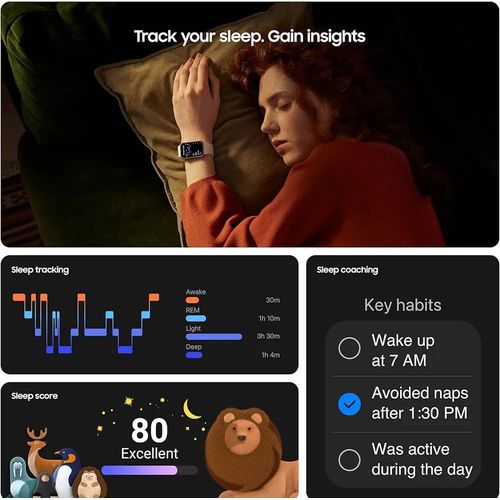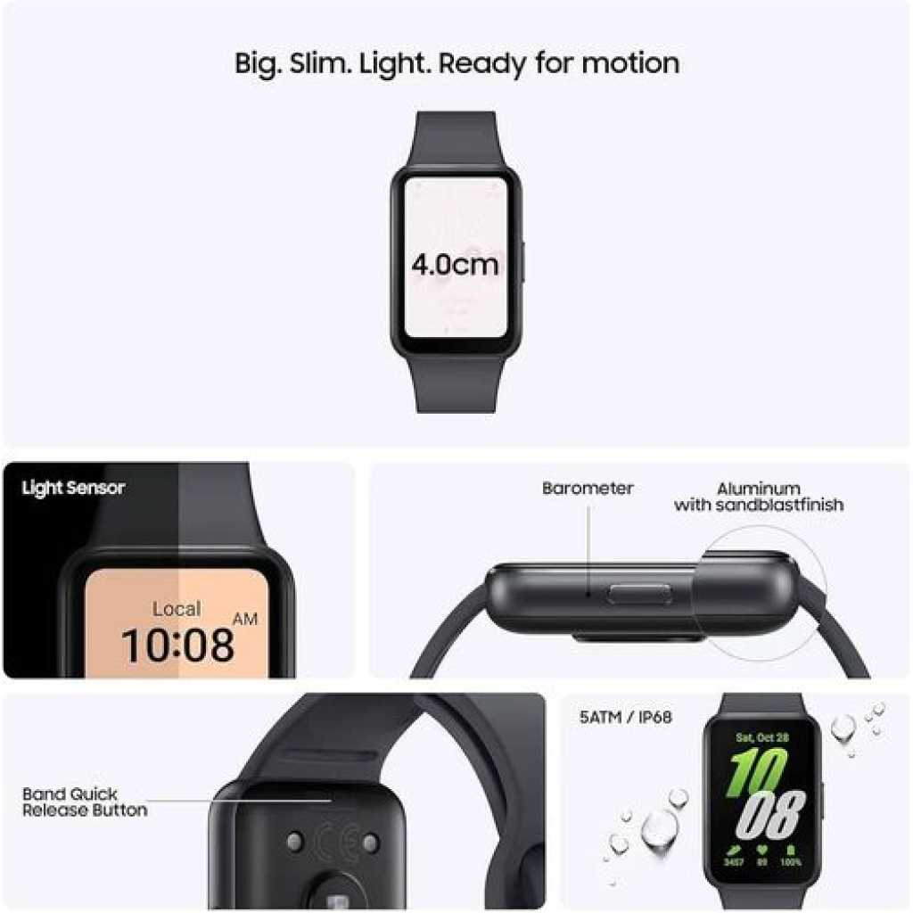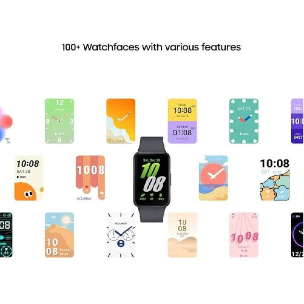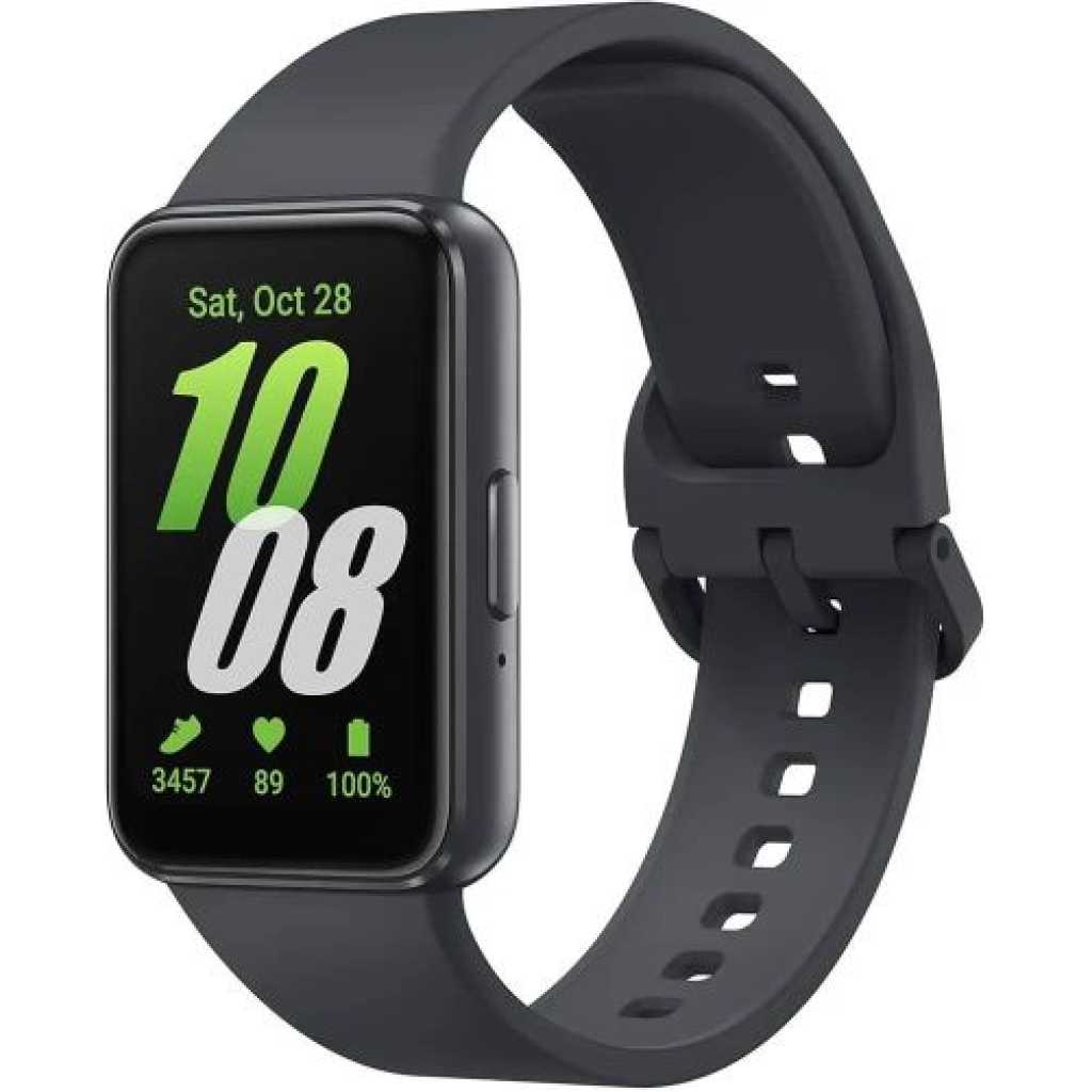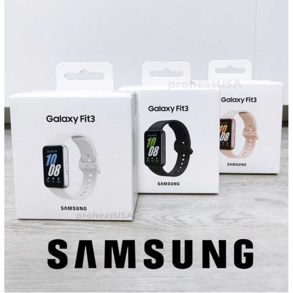 The Fit3 comes with a 1.6″ AMOLED display, which is 45% bigger than the predecessor. It has a single button on the right side and a one-click quick-release mechanism for the band. Sadly, the band does not have wireless charging, its proprietary charger using two pogo pins at its base. The Fit3 is the first device in the series that supports Fall Detection and Emergency SOS, as the latter is triggered after five rapid presses on the button. Once you do that your location will be shared with emergency contacts that you’ve set beforehand. Samsung Galaxy Fit3 Samsung claims the Galaxy Fit3 can go 13 days on a single charge with its 208 mAh cell. It helps that the wearable has no Wear OS or any other heavy interface, just some simple mini apps, Calendar, Weather, World Clock, and sports tracking. The Fit3 supports over 100 types of workouts, but the device lacks GPS, so any activity involving movement in the open would require a paired smartphone for better tracking. The wearable also tracks sleep patterns, steps, and stress levels; all that info is visible in the Samsung Health app. Samsung Galaxy Fit3 Package Contents: – 1 x Samsung Galaxy Fit3 – 1 x Travel Charger – 1 x USB Cable
