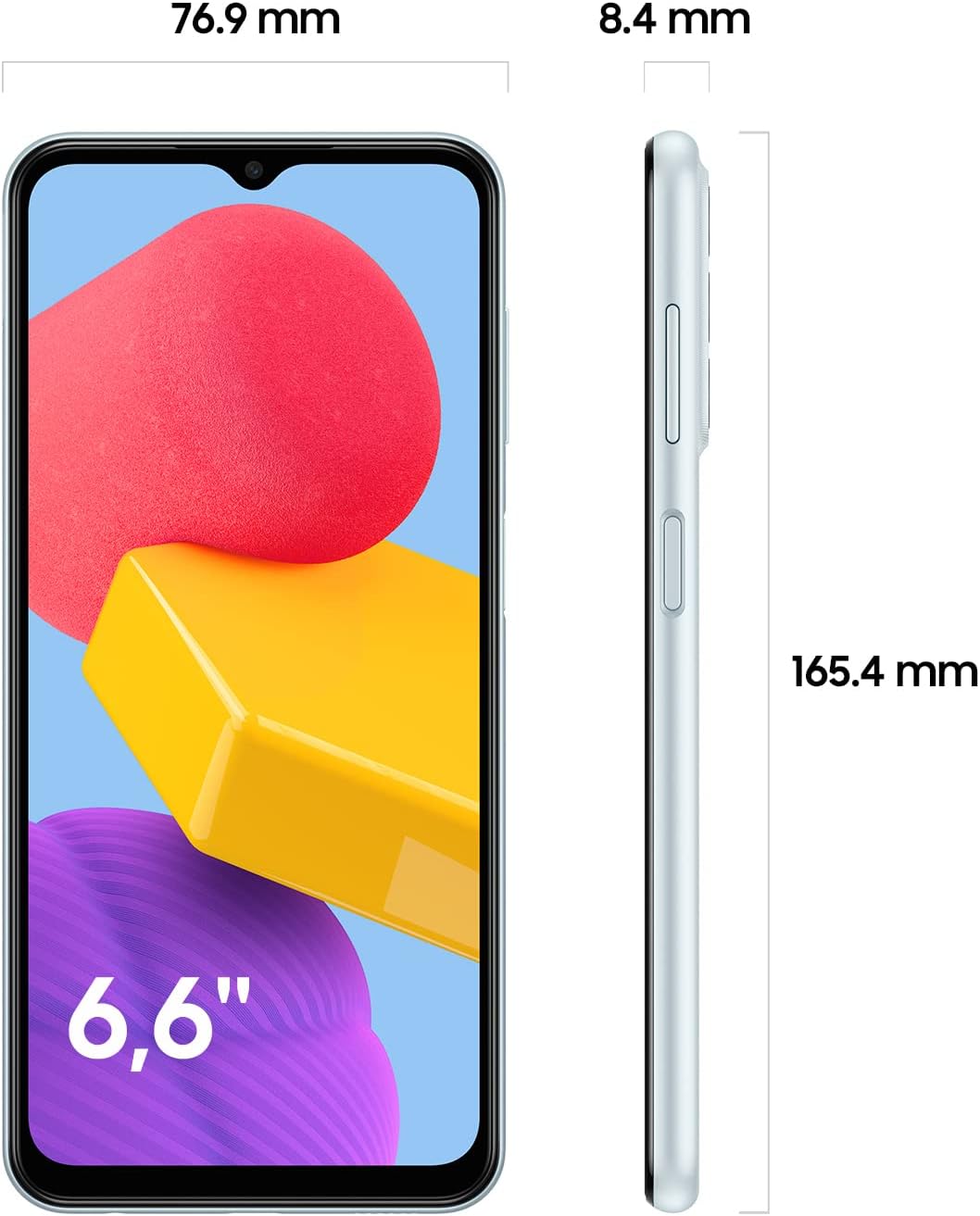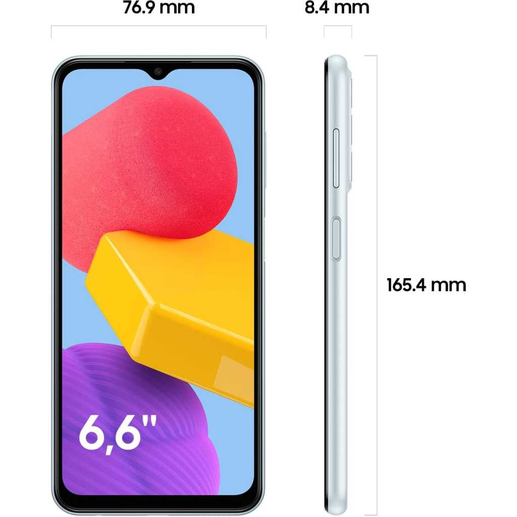 Samsung Galaxy M13 – 6.6″ 6GB RAM 128GB ROM 50MP 6000mAh – Light Blue. More than a Monster. 6000mAh Battery. A Super-powered battery that lasts for long hours, day and night. More than a Monster. Seamless connectivity. Always stay connected with Auto Data Switching, even when your SIM1 has no network. More than a Monster. FHD+ Display. Watch your favourite stories come alive on the stunning 16.72cm (6.6”) FHD+ Display. More than a Monster. Knox Security. Multi-layered security that protects your phone’s information all the time. More than a Monster. Exynos 850 Processor. Enjoy smooth surfing all day long with unmatched power and efficiency of the Exynos 850 processor. More than a Monster. Design. Make a statement with super stylish design and 3 trendy colours to match your cool quotient. Key Features: Samsung Galaxy M13 – 6.6″ 6GB RAM 128GB ROM 50MP 6000mAh – Light Blue. Network Technology: GSM / HSPA / LTE SIM: Dual SIM (Nano-SIM, dual stand-by) Size: 6.6 inches Platform: OS Android 12, One UI Core 4.1 Internal: 128GB 6GB RAM Main Camera: Triple 50 MP Comms: WLAN Wi-Fi 802.11 a/b/g/n/ac, dual-band, hotspot Bluetooth: 5.0, A2DP, LE USB: USB Type-C 2.0 Battery: Type Li-Po 6000 mAh, non-removable