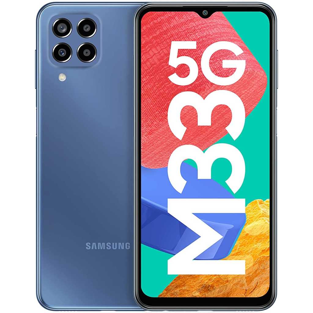 Galaxy M33 5G Up for every game 5nm Octa-core processor Galaxy M33 5G features a mighty 5nm Octa-Core processor. Power up and enjoy impeccable speed and performance with a device that’s up for it all. Up for every game Image simulated and for representational purposes only. Basis the publicly available information, Segment Best amongst devices in the same price band. Up for multitasking RAM Plus Galaxy M33 5G intelligently reads your usage pattern to provide up to 16GB virtual RAM, whenever you need it, ensuring your phone is up for it all, be it multi-tasking or gaming. Up for multitasking *8GB RAM model will support up to 8GB of internal storage and 6GB AM model will support up to 6GB of internal storage that can be used as virtual memory to improve app performance. Image simulated. For representational purposes only. Up for everlasting entertainment 6000mAh Battery Be it gaming or binge-watching or charging other smartphones, the whopping 6000mAh battery with reverse charging is up for it all. Enjoy 25W* fast charging that gives you more power in less time. Up for everlasting entertainment *As per Samsung effort to minimize environmental effect, charger is not included in the box. Image simulated. For representational purposes only. Up for crystal clear conversations Voice Focus Say goodbye to unclear conversations even in the noisiest of environments. The Voice Focus on the Galaxy M33 is up for it all, be it cutting out loud ambient noise or amplifying the receiver’s voice, so that you hear every little detail. Up for crystal clear conversations Up for crystal clear conversations Voice Focus Say goodbye to unclear conversations even in the noisiest of environments. The Voice Focus on the Galaxy M33 is up for it all, be it cutting out loud ambient noise or amplifying the receiver’s voice, so that you hear every little detail. Up for crystal clear conversations Next Up for crystal clear conversationsUp for crystal clear conversations Image simulated. For representational purposes only. Up for keeping it cool Power Cool Technology Whether you’re hooked on to your favourite game or switching between apps, the Power Cool Technology keeps your Galaxy M33 from getting heated so it’s always up for it all. Up for keeping it cool Image simulated. For representational purposes only. Up for smooth experiences 120Hz Refresh Rate The 120Hz refresh rate along with a 16.72cm* FHD + Infinity-V display makes your everyday content look sharp while giving you an immersive and super smooth viewing experience. Plus, Gorilla Glass 5 keeps your screen protected so it stays up for it all. Up for smooth experiences Up for immersive viewing 16.73cm* FHD+ Display Up for immersive viewing Up for drop & scratch resistance Gorilla Glass 5 protection Up for drop & scratch resistance Next Up for smooth experiencesUp for immersive viewingUp for drop & scratch resistance *Screen size measured diagonally as a full rectangle without accounting for the rounded corners. Image simulated. For representational purposes only. Up for seamless connection Auto Data Switching Galaxy M33 is up for letting you make and receive calls or use data from your secondary SIM, even when your primary SIM is in a no network area so that your loved ones can stay in touch with you wherever you go. Up for seamless connection Image simulated. For representational purposes only. Up for perfect moments 50MP Camera The 50MP Quad camera lets you capture all the drama your social feed needs. Galaxy M33 stays up for it all by letting you click perfect shots to savour the moment or get creative with Fun Mode. Up for perfect moments Up for flawless selfies 8MP Front Camera Capture the best of you with the 8MP Front Camera Up for flawless selfies Up for picture perfect memories Perfect any shot with a single tap using the Object eraser. It’s up for giving you the perfect memories by editing out everything that you don’t want in your pictures. Up for picture perfect memories Up for bright captures Temporal Noise Reduction enhances your videos to make them look noise free, allowing you to shoot clear videos even in low light. Up for bright captures Next Up for perfect momentsUp for flawless selfiesUp for picture perfect memoriesUp for bright captures Image simulated. For representational purposes only. Up for safety Knox Security Built into the phone’s hardware and software from the start, Samsung Knox protects your phone from the minute it is turned on. Offering multi-layered security, it ensures your phone is totally up for defending your most sensitive information from malware and malicious threats. Up for safety Up for privacy Alt Z Keep your data secure by seamlessly switching between public and private mode using Alt Z. Up for privacy Next Up for safetyUp for privacy Image simulated. For representational purposes only. Up for personalization One UI 4 Optimized for every screen size, One UI 4 is up for enhancing your smartphone experience. It lets you express yourself in a comfortable and intuitive way by allowing you to customize your phone to suit your taste. Up for personalization Up for heartfelt chats Vertical Keyboard Type up to 27 Indian languages easily with matra combination assistance. Up for heartfelt chats Up for every banter Grammarly Keep your grammar and spelling game on point with your new writing assistant. Up for every banter Up for the future Software Upgrades Galaxy M33 comes with 2 years of OS updates and 4 years of security updates, ensuring it’s up for the times ahead. Up for the future Next Up for personalizationUp for heartfelt chatsUp for every banterUp for the future Image simulated. For representational purposes only. Up for seamless face unlock Face Unlock Unlock your Galaxy M33 seamlessly with Face Unlock by simply turning it on and looking into the front camera. Up for seamless face unlock Up for seamless unlock Fingerprint The fingerprint sensor lets you unlock your phone with just a touch. Up for seam