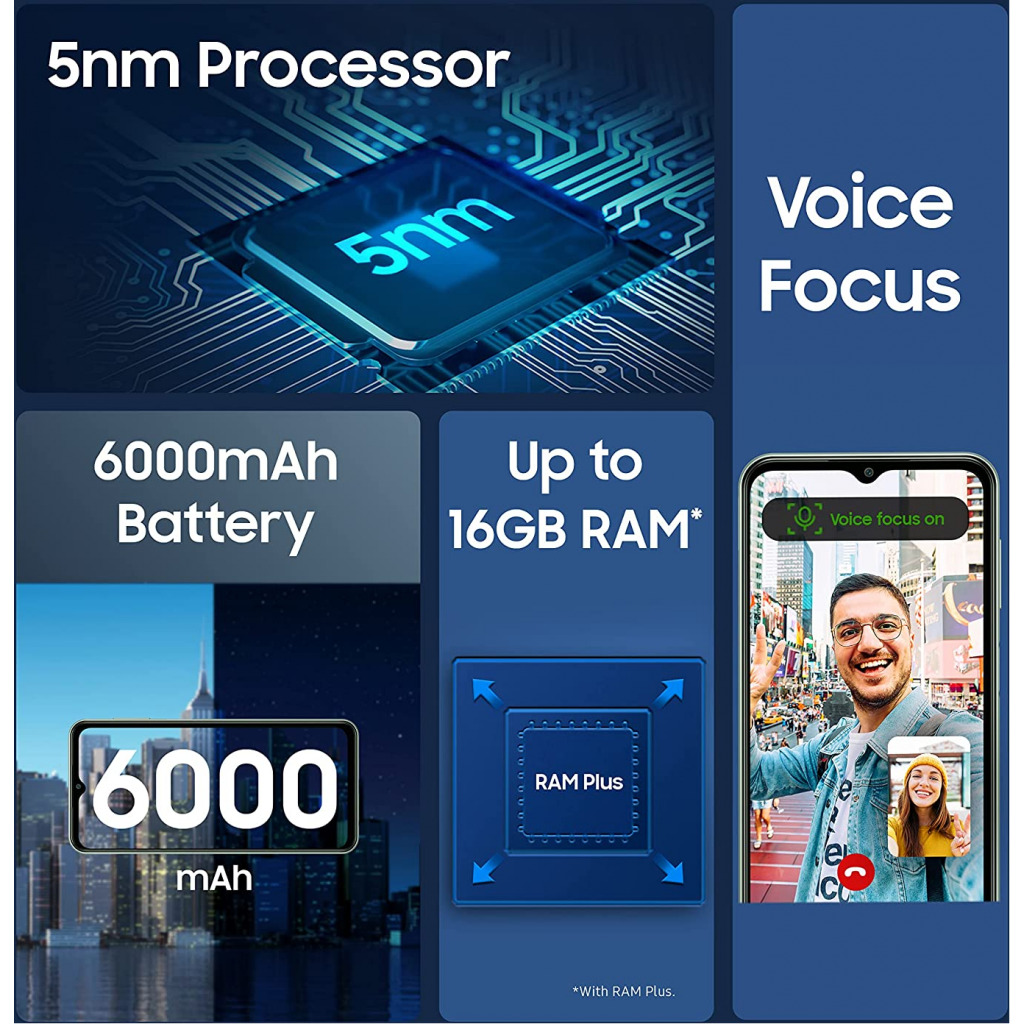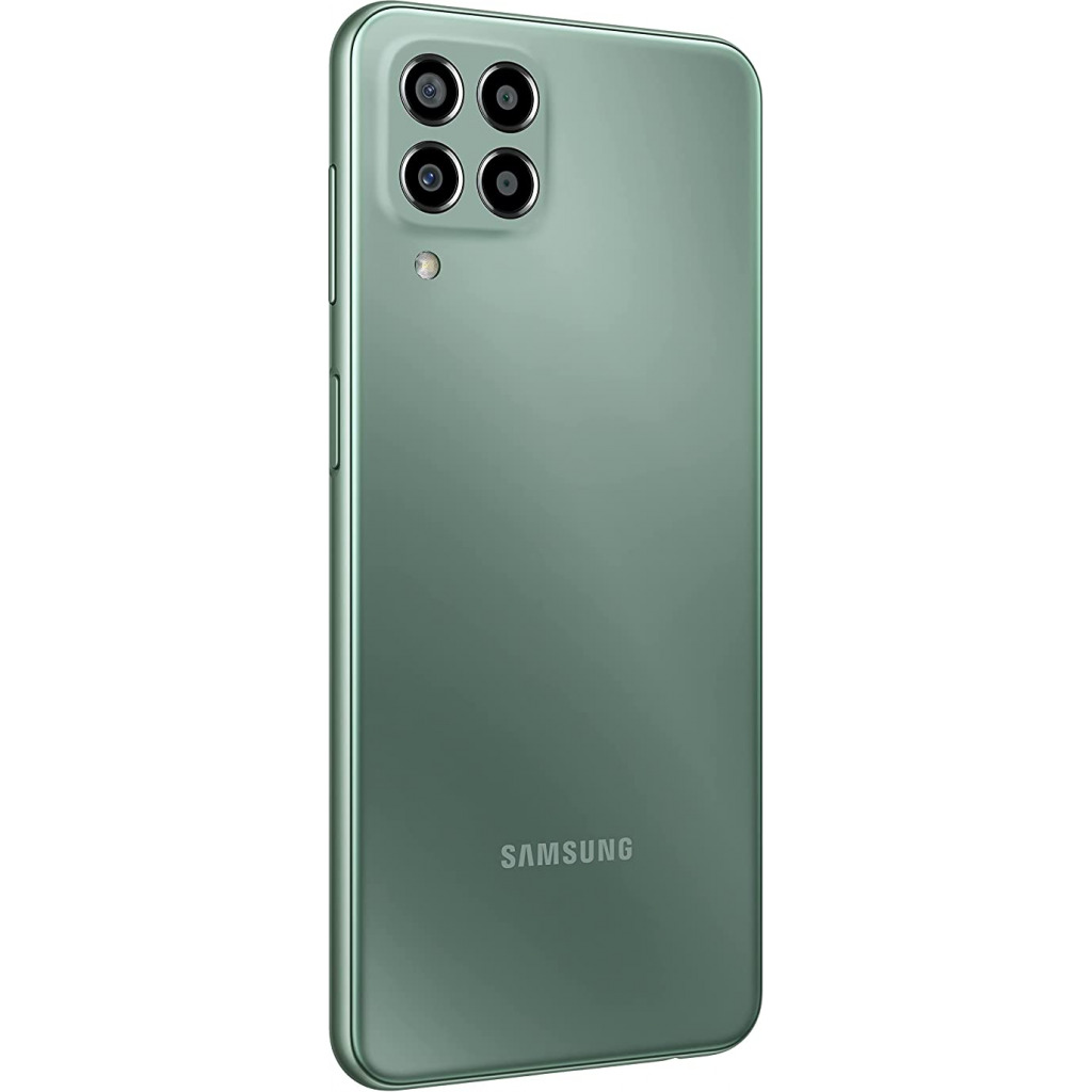 Brand Samsung Category Smartphones Announced 2022, March 04 Status Coming soon (Exp. release 2022, March) Price (Approx) Coming soon Color Green, Blue, Brown Network Technology GSM / HSPA / LTE / 5G 2G Bands GSM 850 / 900 / 1800 / 1900 – SIM 1 & SIM 2 (dual-SIM only) 3G Bands HSDPA 850 / 900 / 1900 / 2100 4G Bands LTE 5G Bands SA/NSA Speed HSPA 42.2/5.76 Mbps, LTE-A, 5G GPRS Yes EDGE Yes Body Dimensions 165.4 x 76.9 x 9.4 mm (6.51 x 3.03 x 0.37 in) Weight 215 g (7.58 oz) SIM Single SIM (Nano-SIM) or Dual SIM (Nano-SIM, dual stand-by) Display Type TFT capacitive touchscreen, 16M colors Size 6.6 inches, 104.9 cm2 (~82.5% screen-to-body ratio) Resolution 1080 x 2408 pixels, 20:9 ratio (~400 ppi density) Multitouch Yes Key Features: Samsung Galaxy M33 5G (Mystique Green, 6GB, 128GB Storage) | 5nm Processor | 6000mAh Battery | Voice Focus | Upto 12GB RAM with RAM Plus. Exynos 1280 Octa Core 2.4GHz 5nm Processor with the 12 band support for a True 5G experience 16.72 centimeters (6.6-inch) LCD Display, FHD+ resolution, 1080×2400 pixels protected by Gorilla Glass 5 Versatile Quad camera setup-50MP (F1.8)+ 5MP (F2.2/UW- 123 FOV) + 2MP (F2.4/Depth) + 2MP (F2.4/Macro) QuadCamera| 8MP (F1.8) Front Camera Massive 6000 mAh Battery | Memory, Storage & SIM: 6GB RAM | 128GB internal memory expandable up to 1TB| SIM 1 + SIM 2+ Micro SD Latest Android v12.0, One UI 4 operating system. Intelligent Voice Focus | Power Cool Technology | Auto Data Switching Connector type: 3.5mm jack