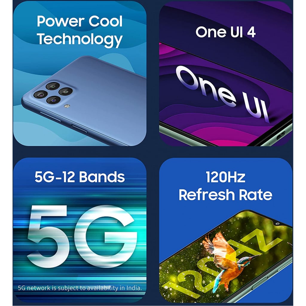 Galaxy M33 5G Up for every game 5nm Octa-core processor Galaxy M33 5G features a mighty 5nm Octa-Core processor. Power up and enjoy impeccable speed and performance with a device that’s up for it all. Up for every game Image simulated and for representational purposes only. Basis the publicly available information, Segment Best amongst devices in the same price band. Up for multitasking RAM Plus Galaxy M33 5G intelligently reads your usage pattern to provide up to 16GB virtual RAM, whenever you need it, ensuring your phone is up for it all, be it multi-tasking or gaming. Up for multitasking *8GB RAM model will support up to 8GB of internal storage and 6GB AM model will support up to 6GB of internal storage that can be used as virtual memory to improve app performance. Image simulated. For representational purposes only. Up for everlasting entertainment 6000mAh Battery Be it gaming or binge-watching or charging other smartphones, the whopping 6000mAh battery with reverse charging is up for it all. Enjoy 25W* fast charging that gives you more power in less time. Up for everlasting entertainment *As per Samsung effort to minimize environmental effect, charger is not included in the box. Image simulated. For representational purposes only. Up for crystal clear conversations Voice Focus Say goodbye to unclear conversations even in the noisiest of environments. The Voice Focus on the Galaxy M33 is up for it all, be it cutting out loud ambient noise or amplifying the receiver’s voice, so that you hear every little detail. Up for crystal clear conversations Up for crystal clear conversations Voice Focus Say goodbye to unclear conversations even in the noisiest of environments. The Voice Focus on the Galaxy M33 is up for it all, be it cutting out loud ambient noise or amplifying the receiver’s voice, so that you hear every little detail. Up for crystal clear conversations Next Up for crystal clear conversationsUp for crystal clear conversations Image simulated. For representational purposes only. Up for keeping it cool Power Cool Technology Whether you’re hooked on to your favourite game or switching between apps, the Power Cool Technology keeps your Galaxy M33 from getting heated so it’s always up for it all. Up for keeping it cool Image simulated. For representational purposes only. Up for smooth experiences 120Hz Refresh Rate The 120Hz refresh rate along with a 16.72cm* FHD + Infinity-V display makes your everyday content look sharp while giving you an immersive and super smooth viewing experience. Plus, Gorilla Glass 5 keeps your screen protected so it stays up for it all. Up for smooth experiences Up for immersive viewing 16.73cm* FHD+ Display Up for immersive viewing Up for drop & scratch resistance Gorilla Glass 5 protection Up for drop & scratch resistance Next Up for smooth experiencesUp for immersive viewingUp for drop & scratch resistance *Screen size measured diagonally as a full rectangle without accounting for the rounded corners. Image simulated. For representational purposes only. Up for seamless connection Auto Data Switching Galaxy M33 is up for letting you make and receive calls or use data from your secondary SIM, even when your primary SIM is in a no network area so that your loved ones can stay in touch with you wherever you go. Up for seamless connection Image simulated. For representational purposes only. Up for perfect moments 50MP Camera The 50MP Quad camera lets you capture all the drama your social feed needs. Galaxy M33 stays up for it all by letting you click perfect shots to savour the moment or get creative with Fun Mode. Up for perfect moments Up for flawless selfies 8MP Front Camera Capture the best of you with the 8MP Front Camera Up for flawless selfies Up for picture perfect memories Perfect any shot with a single tap using the Object eraser. It’s up for giving you the perfect memories by editing out everything that you don’t want in your pictures. Up for picture perfect memories Up for bright captures Temporal Noise Reduction enhances your videos to make them look noise free, allowing you to shoot clear videos even in low light. Up for bright captures Next Up for perfect momentsUp for flawless selfiesUp for picture perfect memoriesUp for bright captures Image simulated. For representational purposes only. Up for safety Knox Security Built into the phone’s hardware and software from the start, Samsung Knox protects your phone from the minute it is turned on. Offering multi-layered security, it ensures your phone is totally up for defending your most sensitive information from malware and malicious threats. Up for safety Up for privacy Alt Z Keep your data secure by seamlessly switching between public and private mode using Alt Z. Up for privacy Next Up for safetyUp for privacy Image simulated. For representational purposes only. Up for personalization One UI 4 Optimized for every screen size, One UI 4 is up for enhancing your smartphone experience. It lets you express yourself in a comfortable and intuitive way by allowing you to customize your phone to suit your taste. Up for personalization Up for heartfelt chats Vertical Keyboard Type up to 27 Indian languages easily with matra combination assistance. Up for heartfelt chats Up for every banter Grammarly Keep your grammar and spelling game on point with your new writing assistant. Up for every banter Up for the future Software Upgrades Galaxy M33 comes with 2 years of OS updates and 4 years of security updates, ensuring it’s up for the times ahead. Up for the future Next Up for personalizationUp for heartfelt chatsUp for every banterUp for the future Image simulated. For representational purposes only. Up for seamless face unlock Face Unlock Unlock your Galaxy M33 seamlessly with Face Unlock by simply turning it on and looking into the front camera. Up for seamless face unlock Up for seamless unlock Fingerprint The fingerprint sensor lets you unlock your phone with just a touch. Up for seam