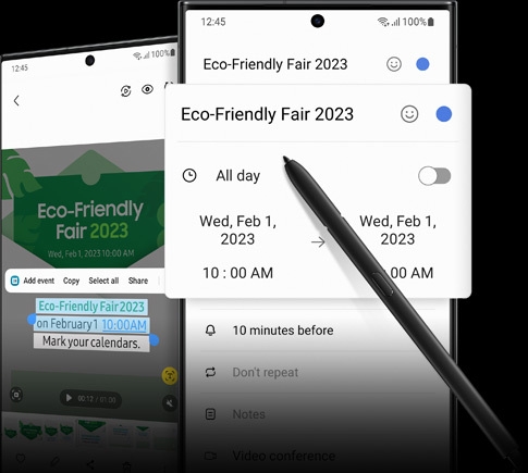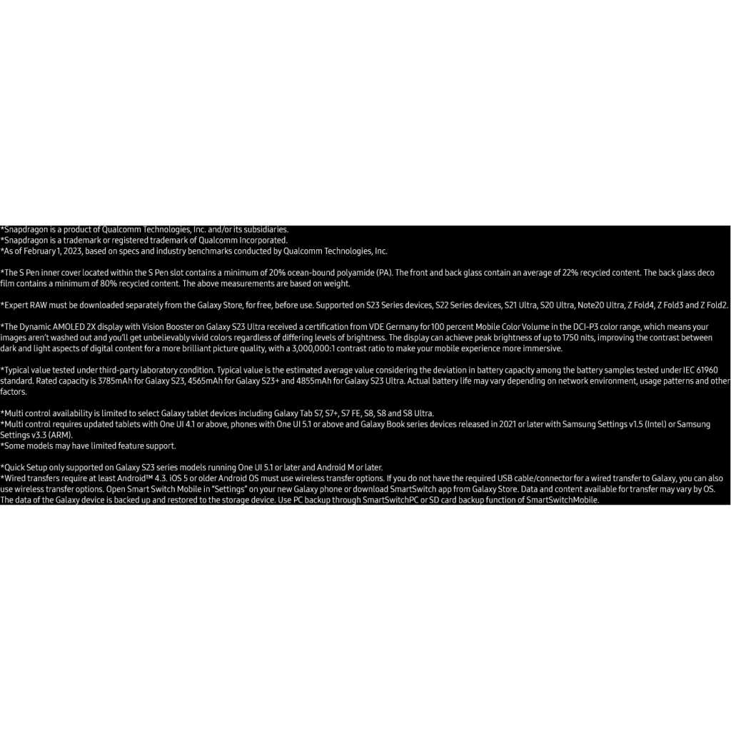 Samsung Galaxy S23 Ultra 6.8″ 12GB RAM 512GB ROM 200MP; 4K & 8K Video – Black. We’re proud to design devices that support what you support — pursuing your passions in a more sustainable world. Made in part with natural dyes, each tone is elegant and elevated, yet completely down to earth. Crafted in part with recycled glass and ocean-bound plastic, each phone comes in a recycled paper box. S Pen keeps the legacy of Galaxy Note alive. Capture scribbles, strokes of genius and everything in between with the built-in S Pen. You can even use it to snap pics without needing to set a selfie timer. Get ready to become your group’s go-to photographer. We’ve packed Galaxy’s biggest sensor, light-absorbing pixels and video stabilization technology into one epic camera for life’s most share-worthy moments. Take crisp photos and videos, no matter the lighting. Galaxy’s most advanced camera sensor and fastest processor reduce noise in low light for stunning shots. Game at full throttle and smoothly switch between apps with our fastest processor ever. Dynamic AMOLED 2X delivers clear, colorful details on screen, whether dimmed low or on full brightness. 120Hz technology intelligently optimizes the refresh rate to smooth out action and save on battery. Any pen can write words. S Pen snaps pictures as a remote camera shutter button, draws beautifully and can even convert handwriting to text.