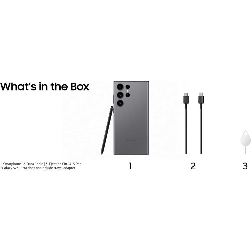 Key Features: Samsung Galaxy S23 Ultra 6.8″ 12GB RAM 512GB ROM 200MP; 4K & 8K Video – Black. Network Technology: GSM / CDMA / HSPA / EVDO / LTE / 5G SIM: Dual SIM (2 Nano-SIMs and eSIM, dual stand-by) Size: 6.8 inches Platform: OS Android 13, One UI 5.1 Internal: 512GB 12GB RAM Main Camera: Quad 200 MP Comms: WLAN Wi-Fi 802.11 a/b/g/n/ac/6e, tri-band, Wi-Fi Direct Bluetooth: 5.3, A2DP, LE USB: USB Type-C 3.2, OTG Battery: Type Li-Ion 5000 mAh, non-removable More innovation, less footprint – Galaxy S23 Ultra’s striking symmetrical design returns with one major difference: recycled and eco-conscious materials. From the metal frame to the glass finish, it’s polished with fresh new colors inspired by nature. Note’s signature tool comes built in – The built-in S Pen keeps the legacy of Note alive. Plus, it helps you ditch the dependency on notebooks, making sketches and jotting notes effortless and eco-friendly. Low light. Camera. Action – A Pro-grade Camera grabs brighter photos and video, dusk to dawn. The intelligent pixel sensor adapts to low light with Nightography and the camera lens tones down flare for clearer captures 200MP. Wow-worthy resolution – Resolution on the Wide-angle Camera has nearly doubled, delivering strikingly clear photos. Zoom and crop your shots for a whole new view —or leave it intact for brilliant detail, corner to corner. Power for those who don’t pause – Your quest for epic mobile gaming is over. Snapdragon 8 Gen 2 Mobile Platform for Galaxy optimizes and streamlines your device for silky smooth games —without draining the battery