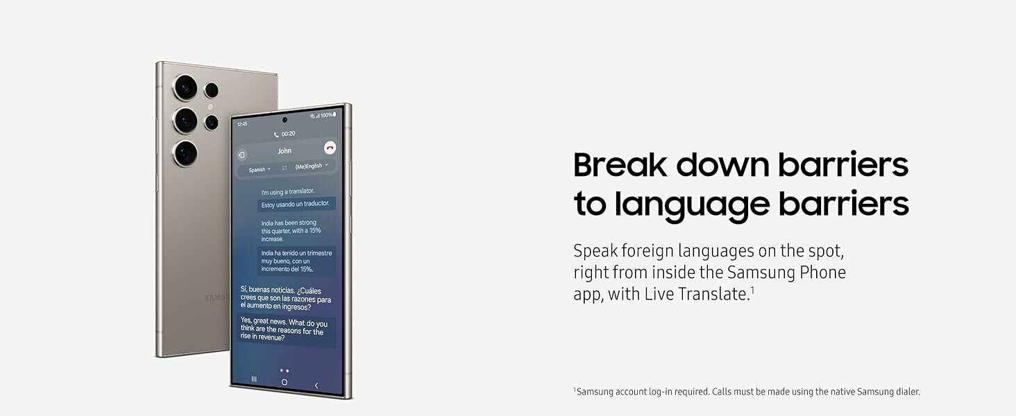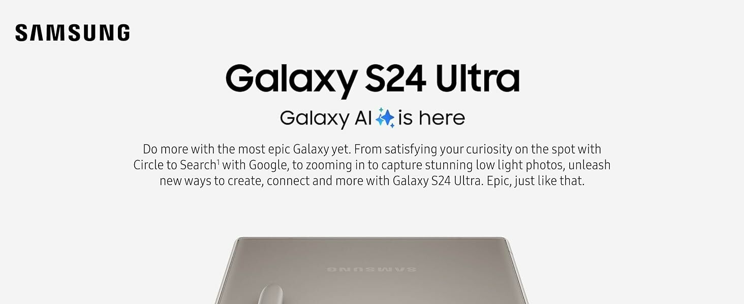 Samsung Galaxy S24 Ultra 6.8" 12GB RAM 1TB ROM 200MP 5000mAh - Titanium Grey NETWORK Technology: GSM / CDMA / HSPA / EVDO / LTE / 5G SIM: Dual SIM (2 Nano-SIMs and eSIM, dual stand-by) Stylus (Bluetooth integration, accelerometer, gyro) Size: 6.8 inches, 113.5 cm2 (~88.5% screen-to-body ratio) PLATFORM: OS Android 14, One UI 6.1 Internal: 1TB 12GB RAM MAIN CAMERA: Quad 200 MP COMMS: WLAN Wi-Fi 802.11 a/b/g/n/ac/6e/7, tri-band, Wi-Fi Direct Bluetooth: 5.3, A2DP, LE USB: USB Type-C 3.2, OTG BATTERY Type: Li-Ion 5000 mAh, non-removable